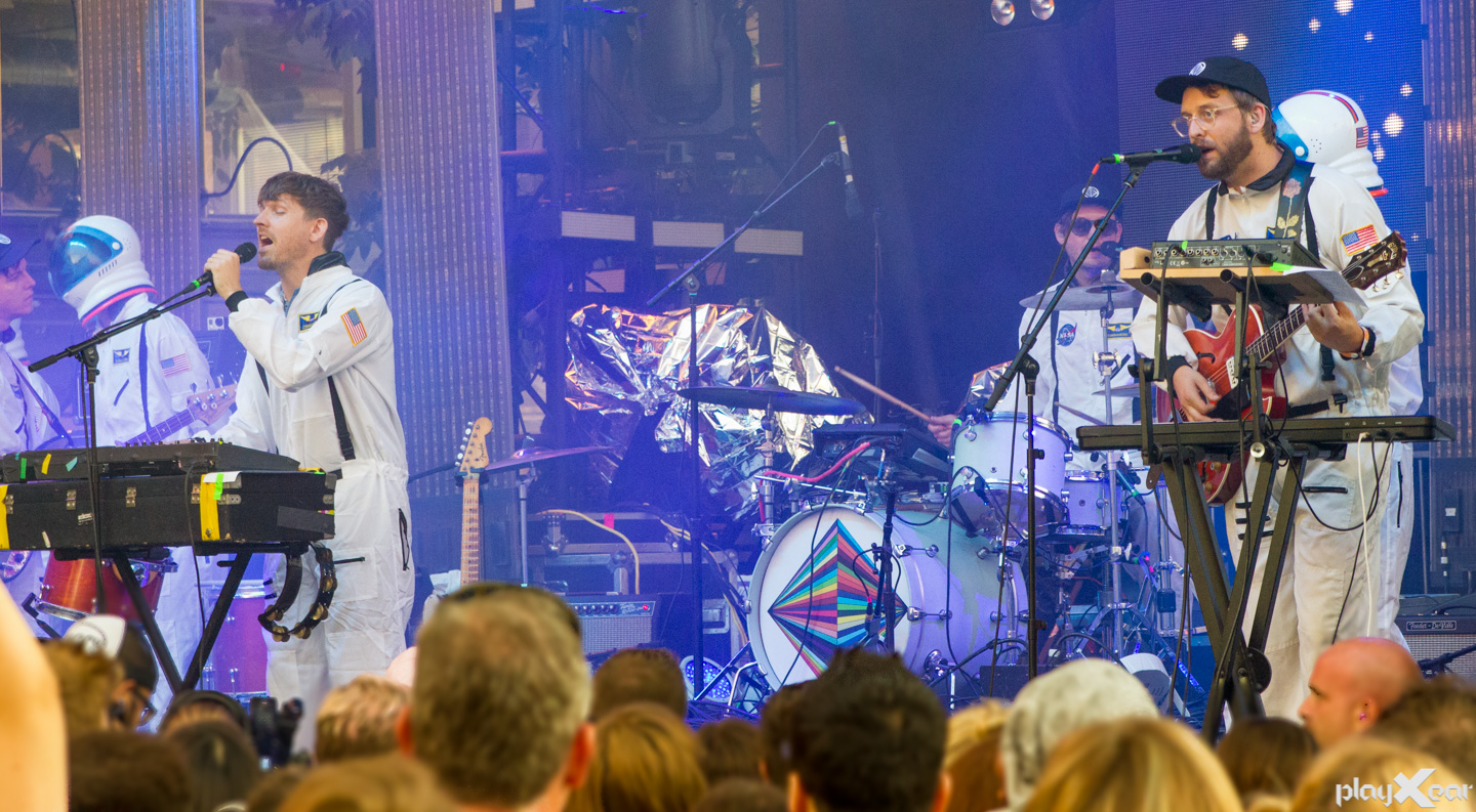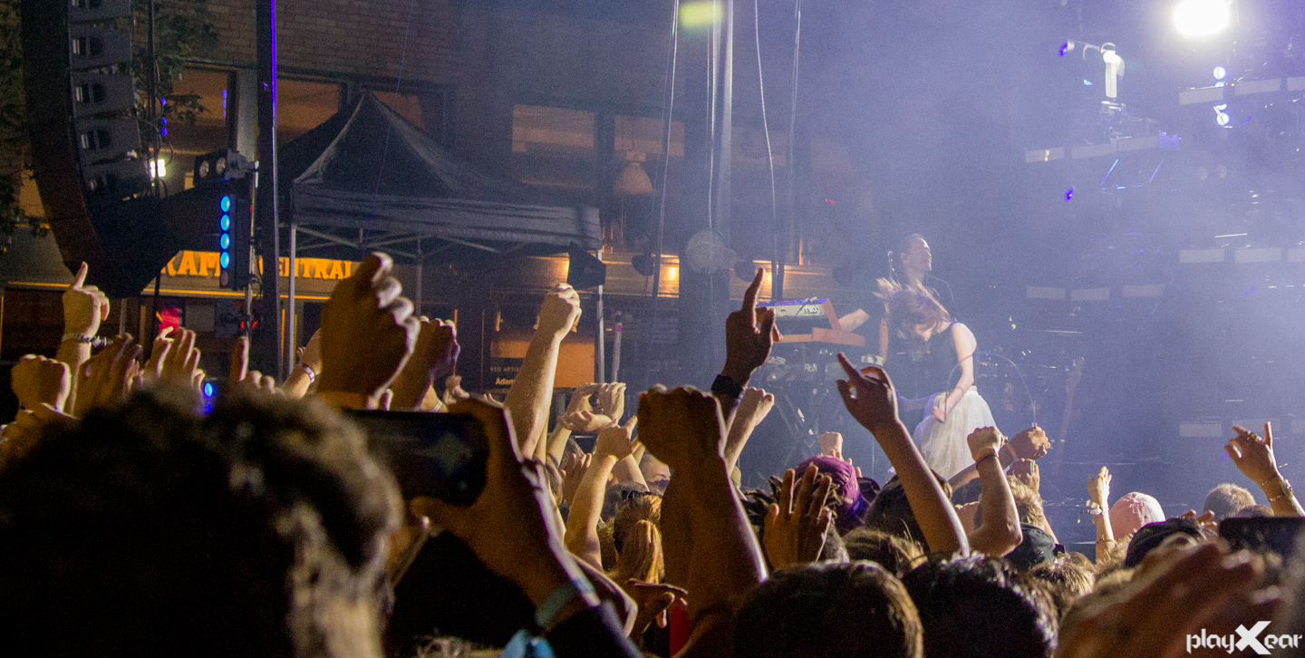 - CHVRCHES was probably my favorite act of the festival simply because I wasn’t expecting to enjoy them so much. But I did. More than I could ever imagine, the night ended and I wanted more hoping they would come back to town soon. Martin Doherty stopped for a moment to comment on the swing coming out of the loft of the first floor close to the stage. Lauren Mayberry caught herself projected on one of the apartment building walls and laughed, “I’m like Godzilla”. More like an angel who came from heaven to serenade us. I’ve never heard an artist so crystal clear at a festival, making the performance even more impressive.