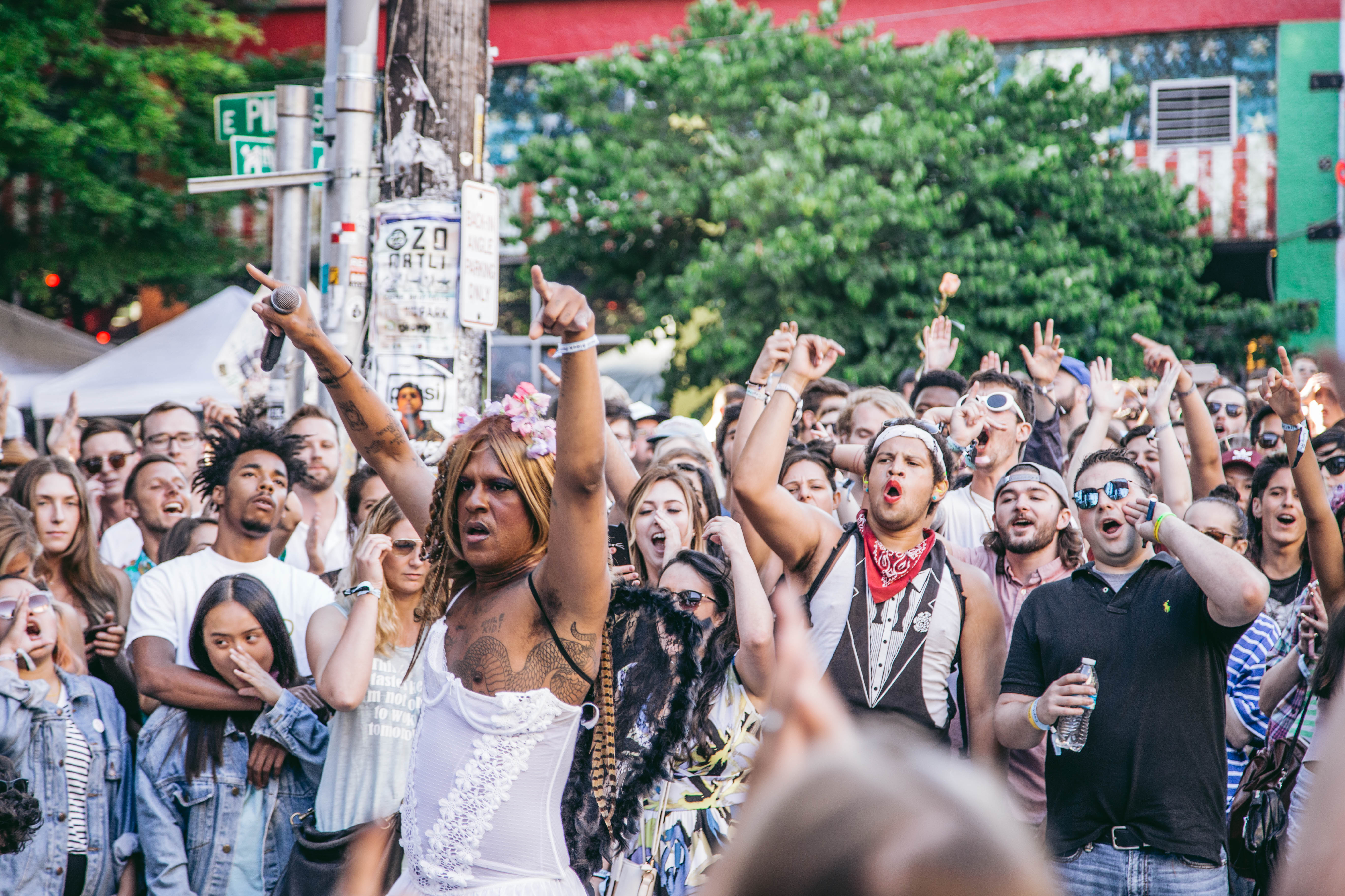 Known as the one of the pioneers of LGBT rap, Mykki started her set by forming a circle in the crowd below the stage and performing the entirety of her set there. Wearing lingerie and black fairy wings, Mykki definitely knows how to put on a fun show. And above all of this, she is a supremely talented rapper.
