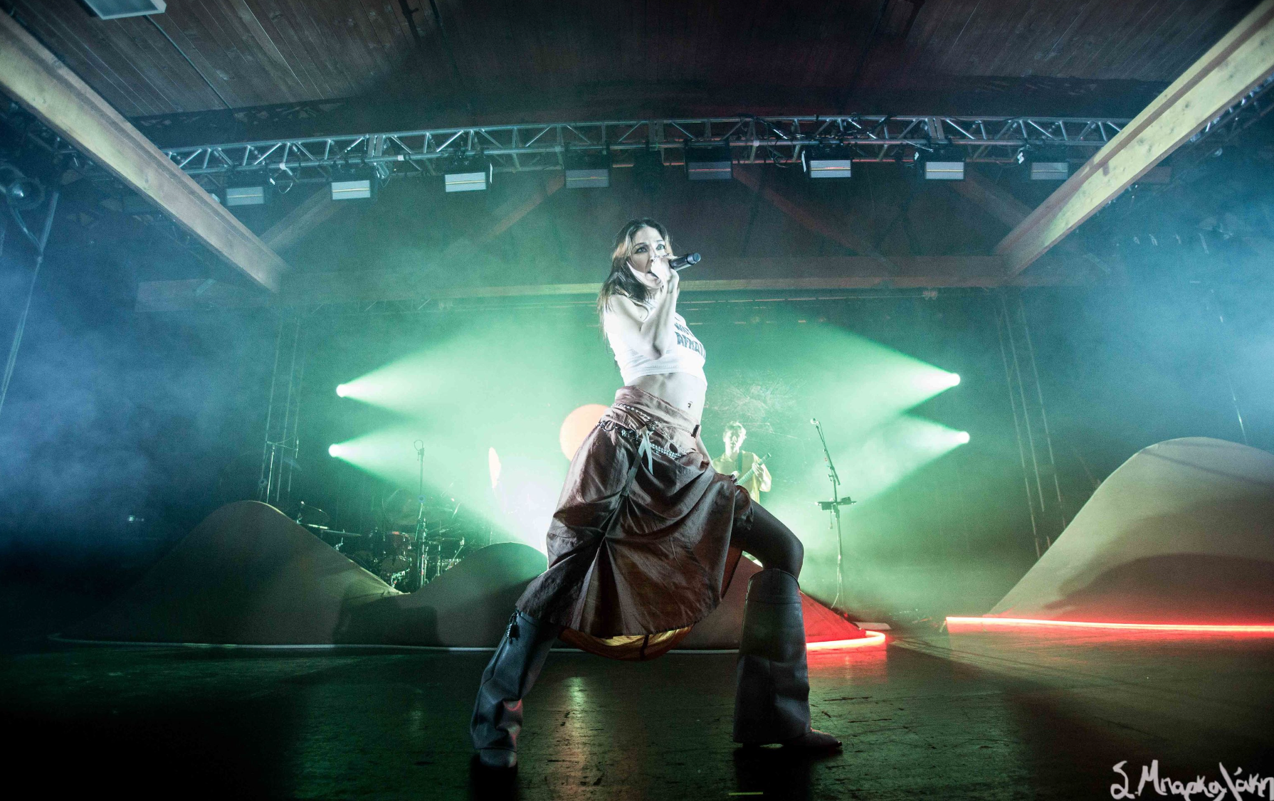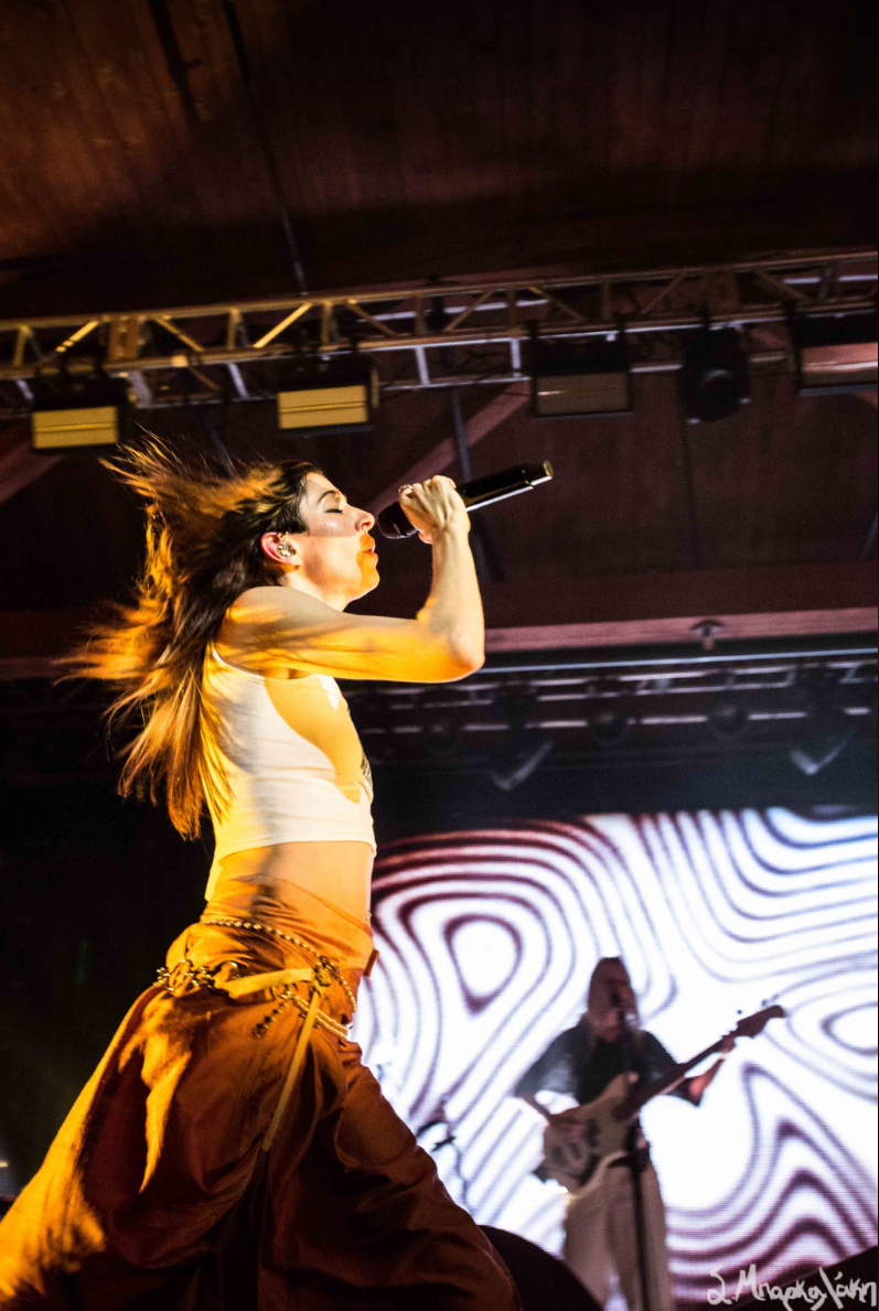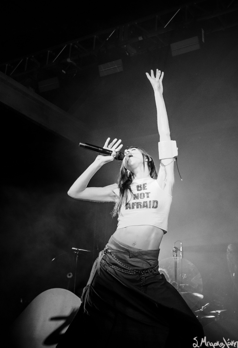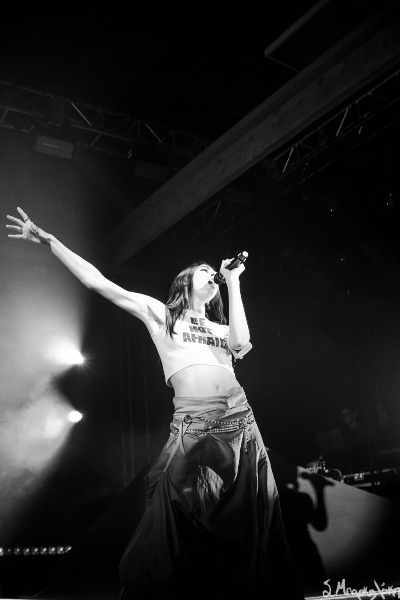 After the short wait it was time for Caroline Polachek to grace us with her presence. Her band members were set up behind some props leaving the stage mostly empty for her to move around. From the moment she appeared she engaged with the fans and made sure everyone was attentive for her music. Her white tank top had the words, Be Not Afraid, written on it and I would say there was no fear, just astonishment.