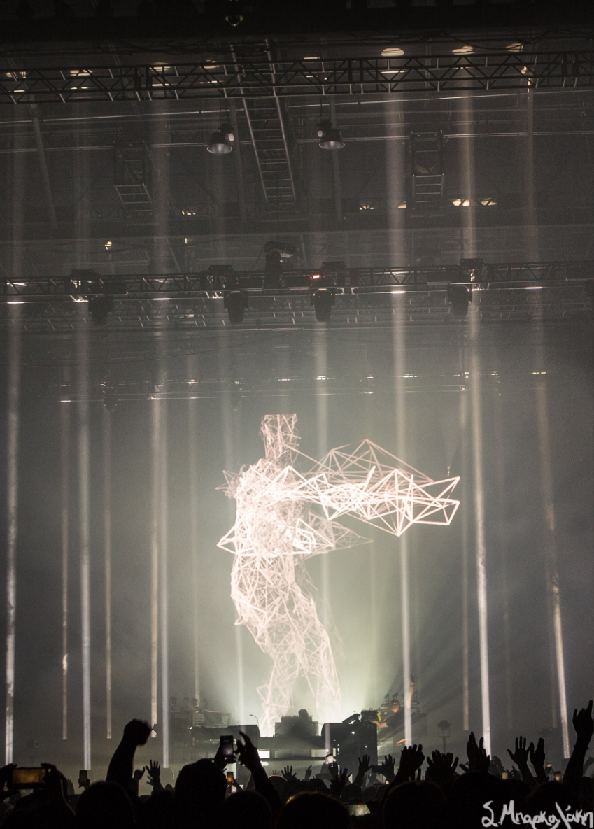 For the last track of their main set, “Galvanize,” their massive hit and Grammy winner, the lights formed what looked like a cage. The digital human inside danced around as the track progressed looking like it was trying to find a way to escape. Towards the end of the song and much trying you see them braking through and dancing free. Perfect vision for the words, ‘World, the time has come to…Galvanize.” It took some time but it was worth the wait to have the Chemical Brothers back in town.