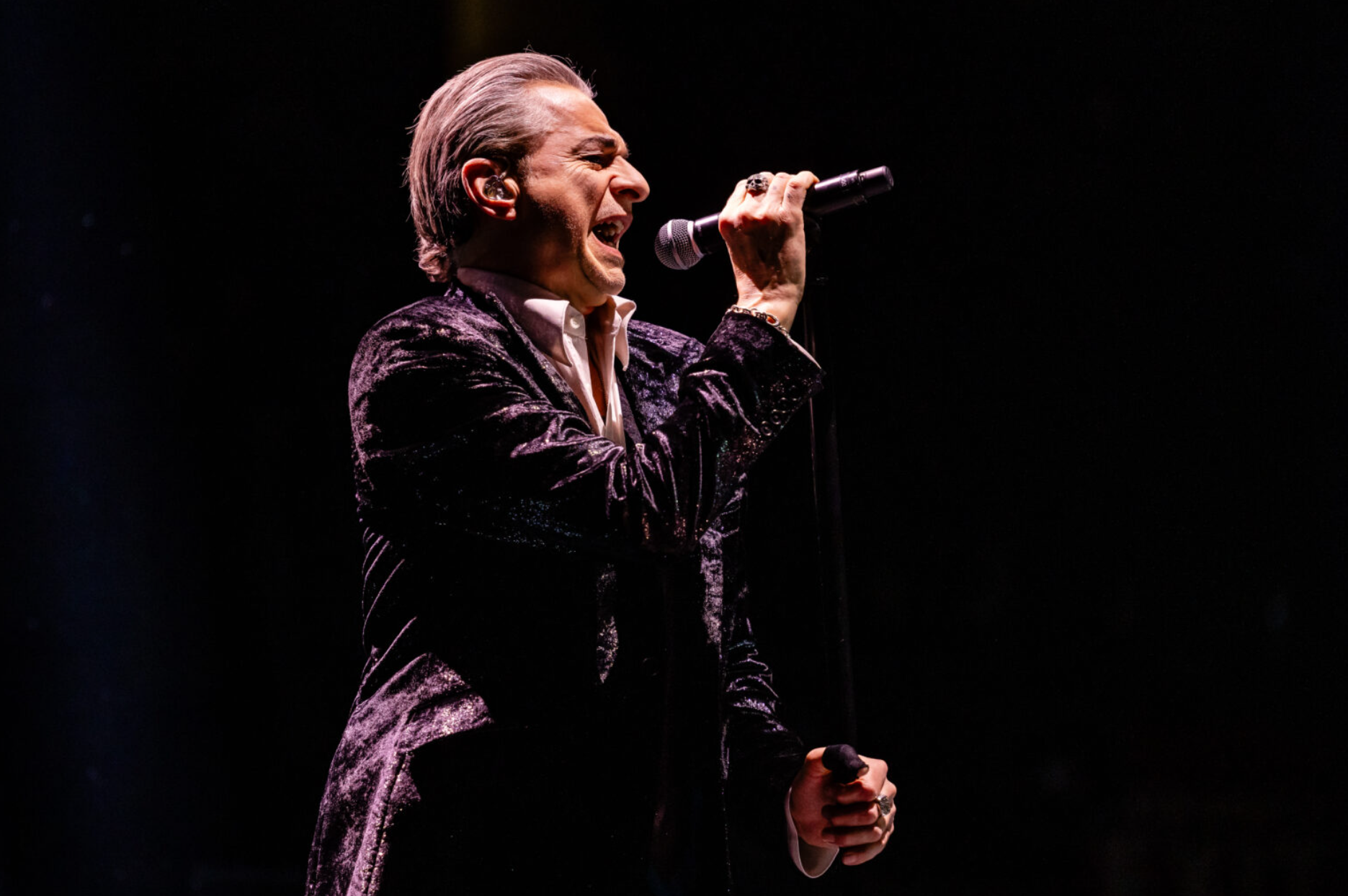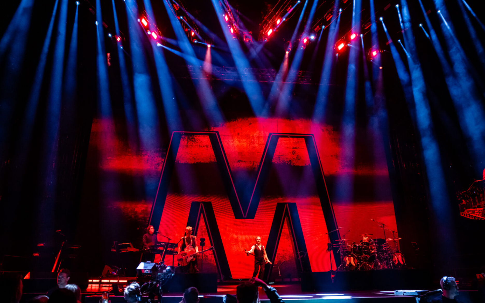 The arena stage had a huge screen display that projected visuals and in front of that stood an outline of the letter M which became a part of the production. Gahan and Gore took the stage with their touring musicians, drummer Christian Eigner, and keyboardist/bassist Peter Gordeno and kicked off the set with new songs, “My Cosmos Is Mine,” and “Wagging Tongue.”