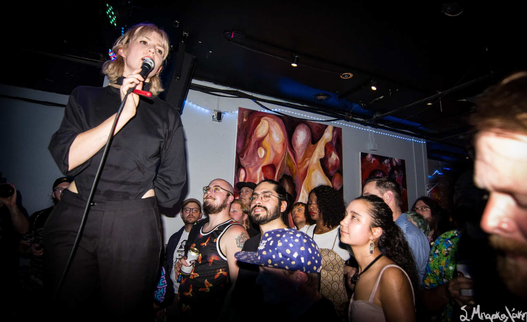 Making our way over to the larger space of King’s Hall we caught Sarah Shook and the Disarmers. The band enticed the room and people were clearly enjoying the sound. Their most recent release, Nightroamer, was out last year as they played song off that and their previous records. The room felt good with the space mirroring the art and vibe of the event.