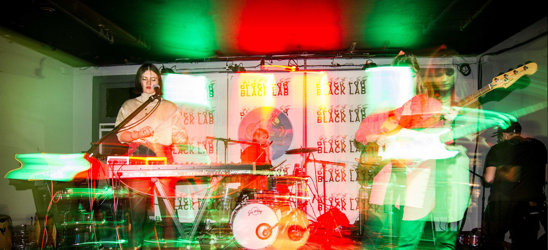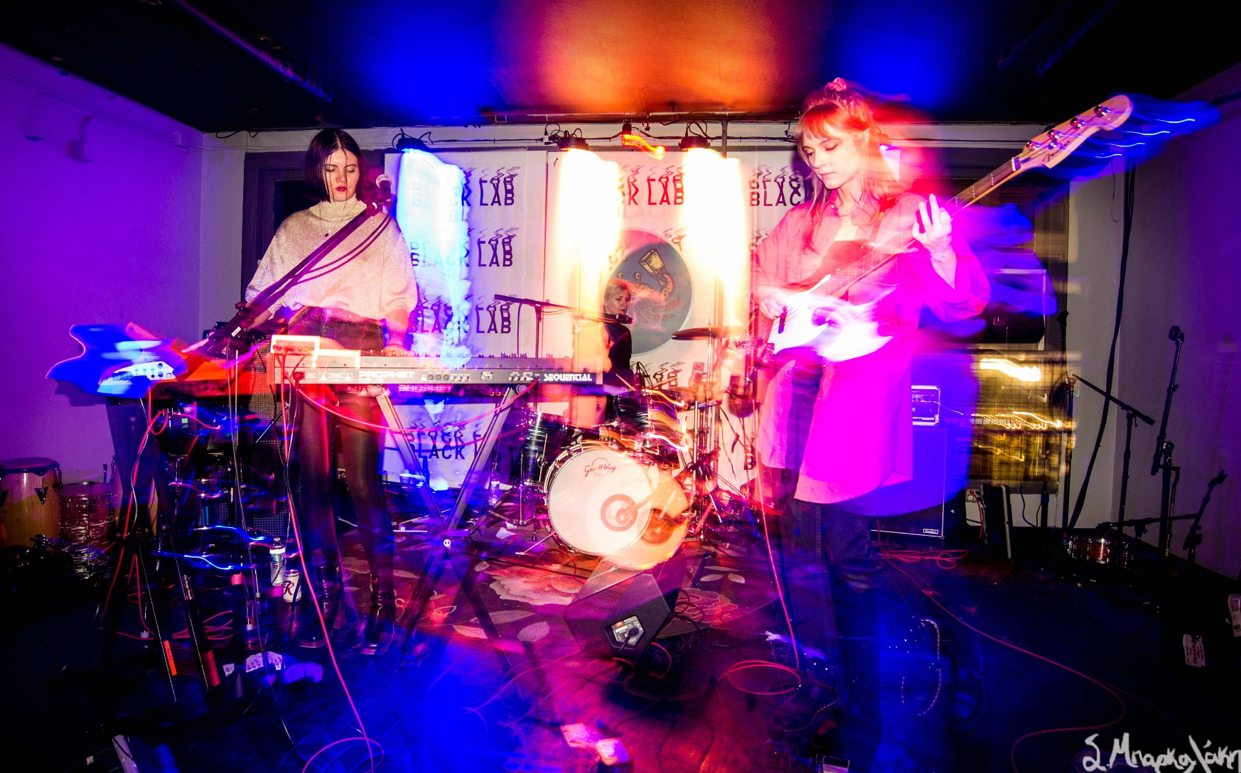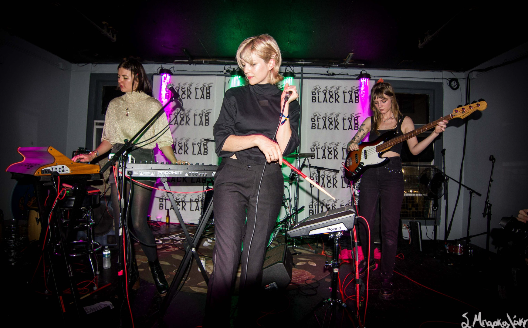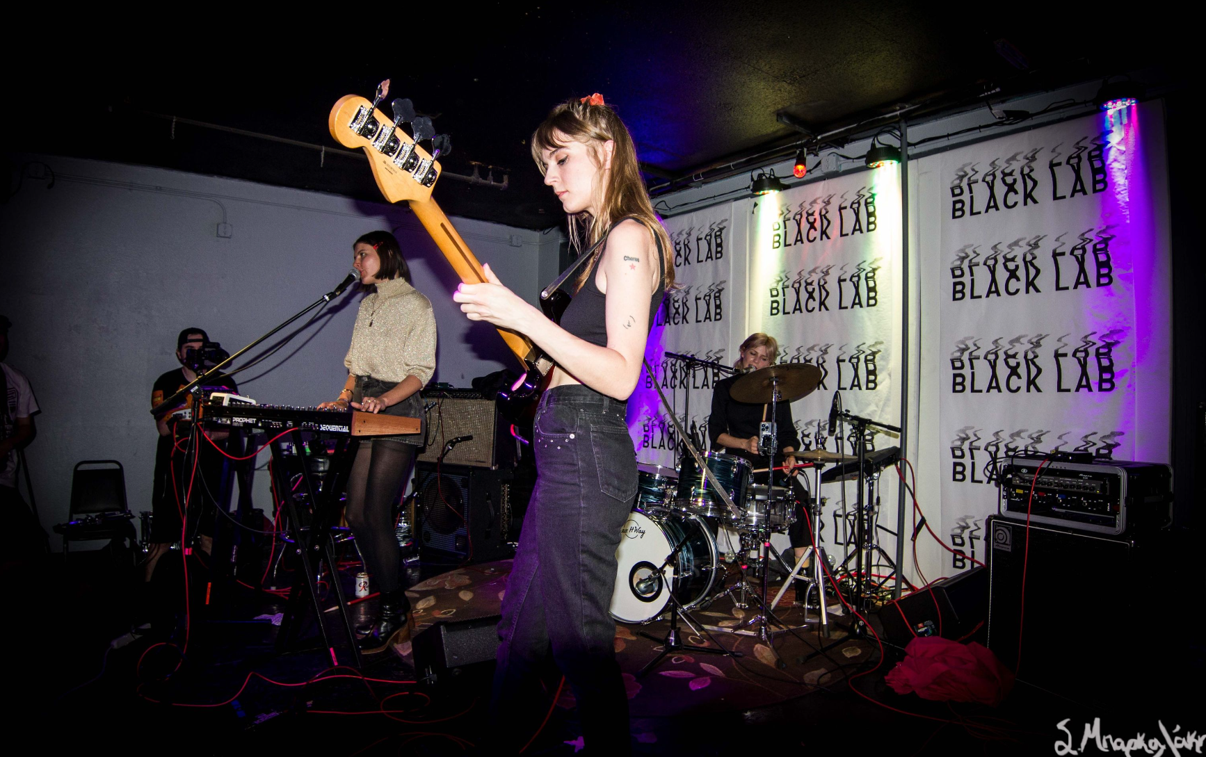 Closing out the night, femme fronted, LA born band Automatic took the Black Lab stage. Automatic plays like modern new wave with the drum machines except the drum machine is Lola Dompé. Her rhythms snap sharply and fluctuate in tempo. The basslines and synths are equally engrossing, having their own abstract progressions. Call and response songs like “Too Much Money,” sound haunting, a full of murky attitude. Initially getting on stage they seem reserved, while their sound is not.