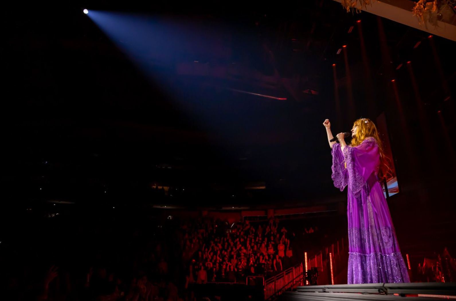 After running in the front row again for “What Kind of Man,” she jokingly thanked people in the front for letting her scream in their face. She shared that when things were cancelled in the pandemic and this all seemed like it might not happen again, in England musicians were told to retrain in other professions. She very loudly said, “As what? I can’t do anything else!” as we all laughed at the story. “I can’t tell you how much it means to be back here on this stage with all of you.” We couldn’t agree with you more, Florence.