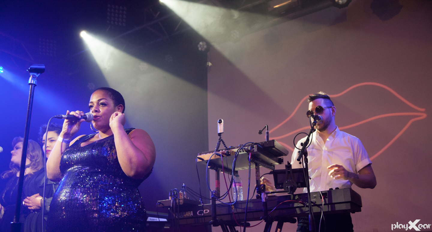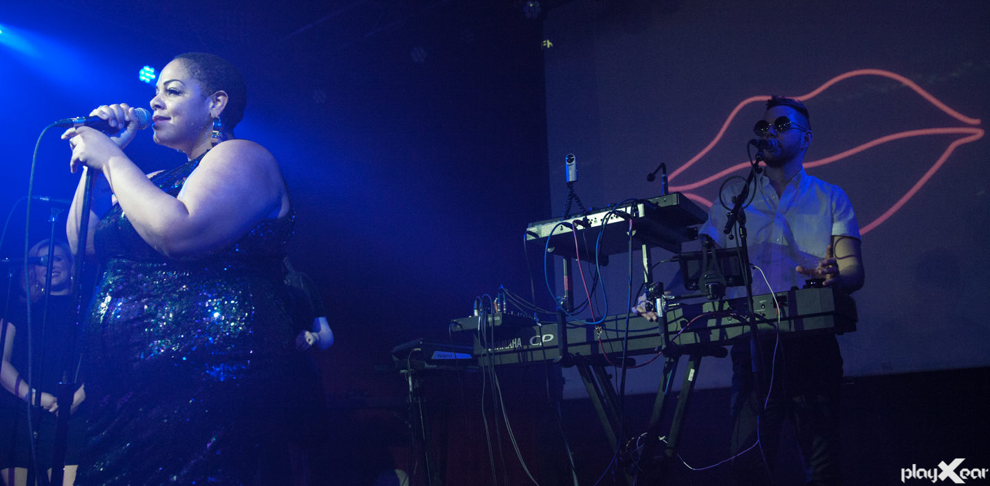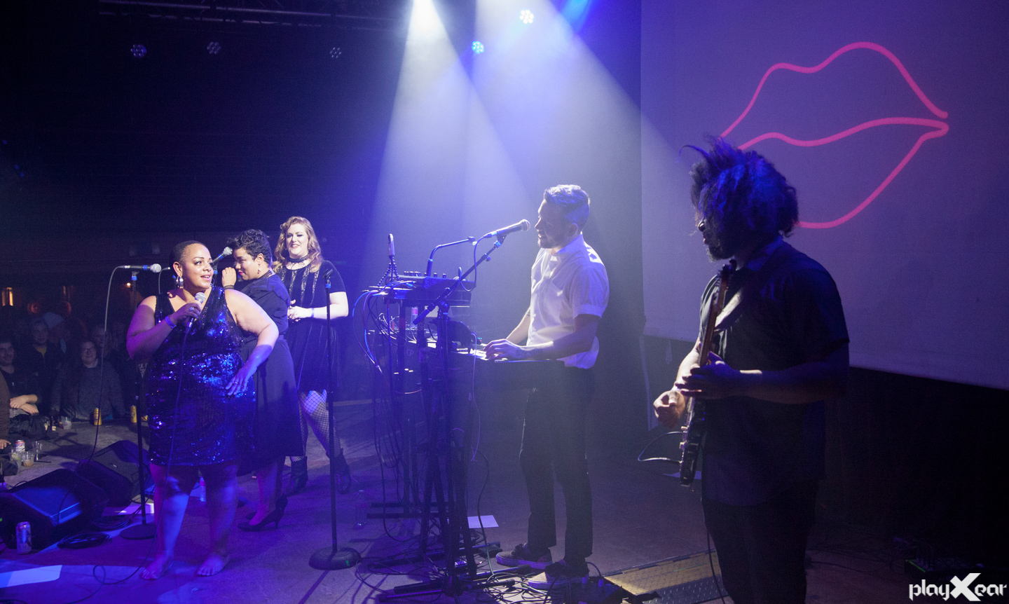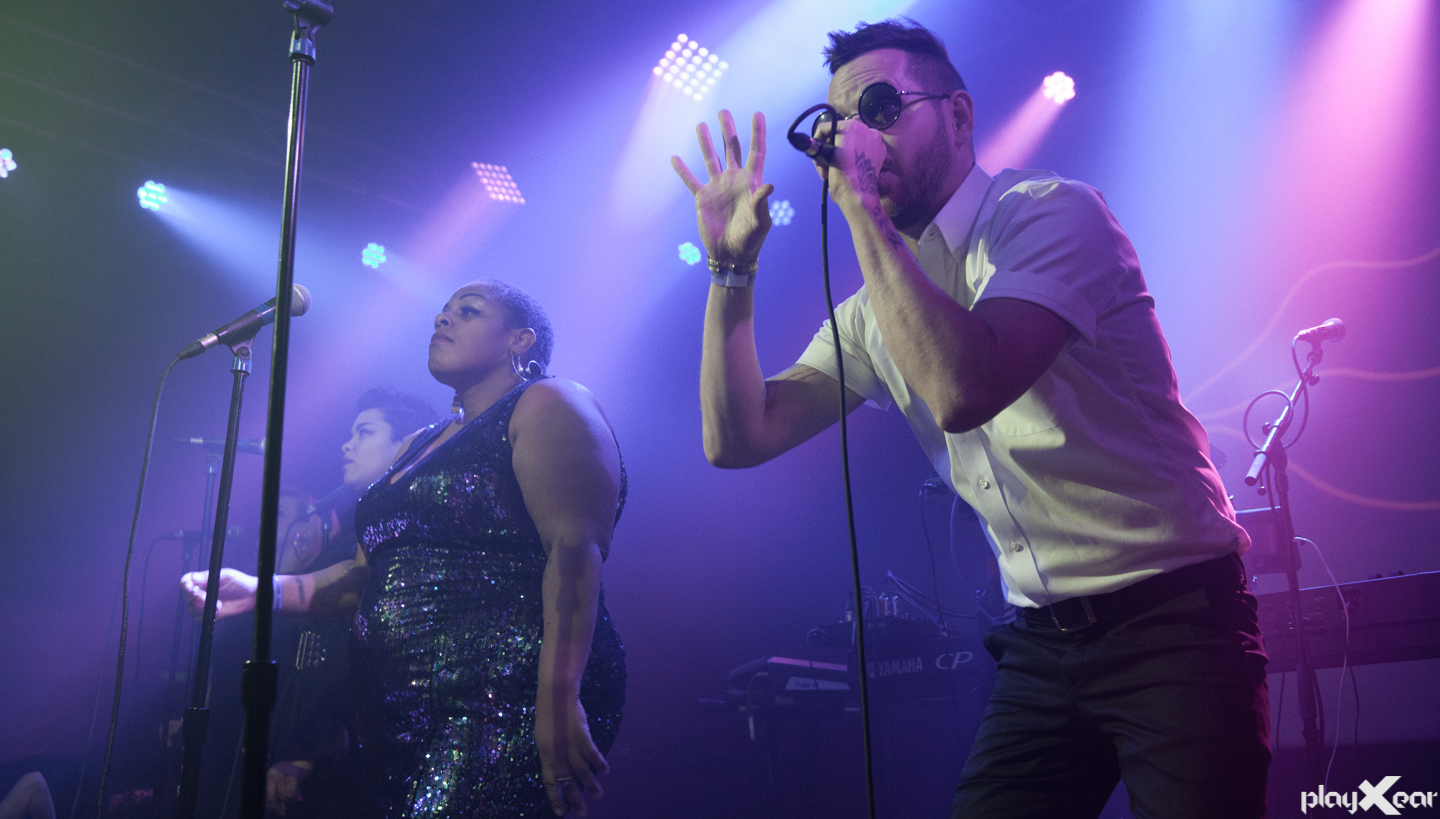 The two hour set from the electro-soul outfit included tracks from their latest album “Delicious Trouble“, as well as older tunes. They also played some unreleased tracks in which they hinted might be coming out soon as a farewell gift to us. The stage set up had Adra and her backup singers towards the front, and Action J behind her standing in front of the keyboard/mixer with a guitar player next to him. Action J stepped to the front a few times to sing some tracks, while the neon lip imprint from the latest LP cover projected on the screen the whole set.