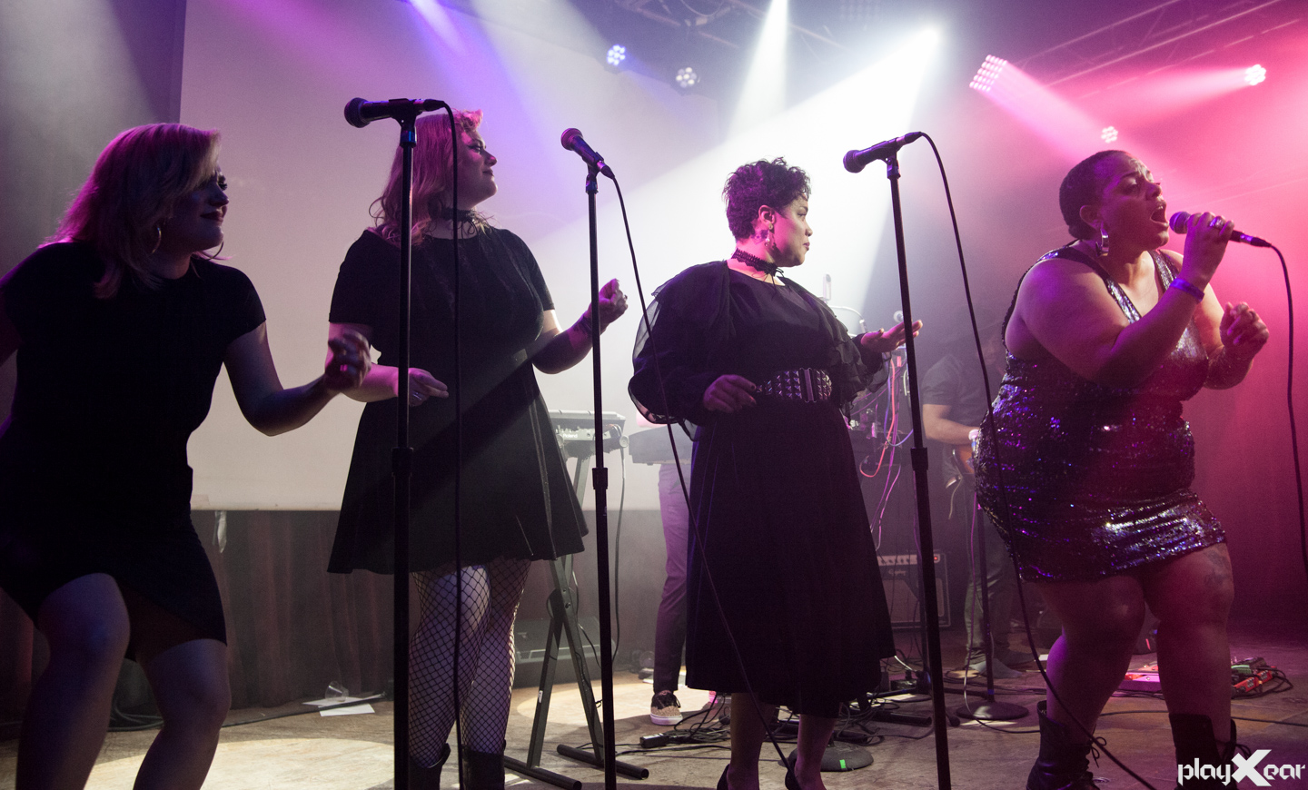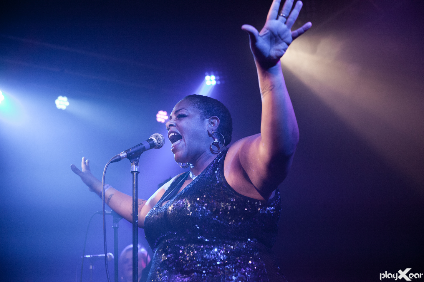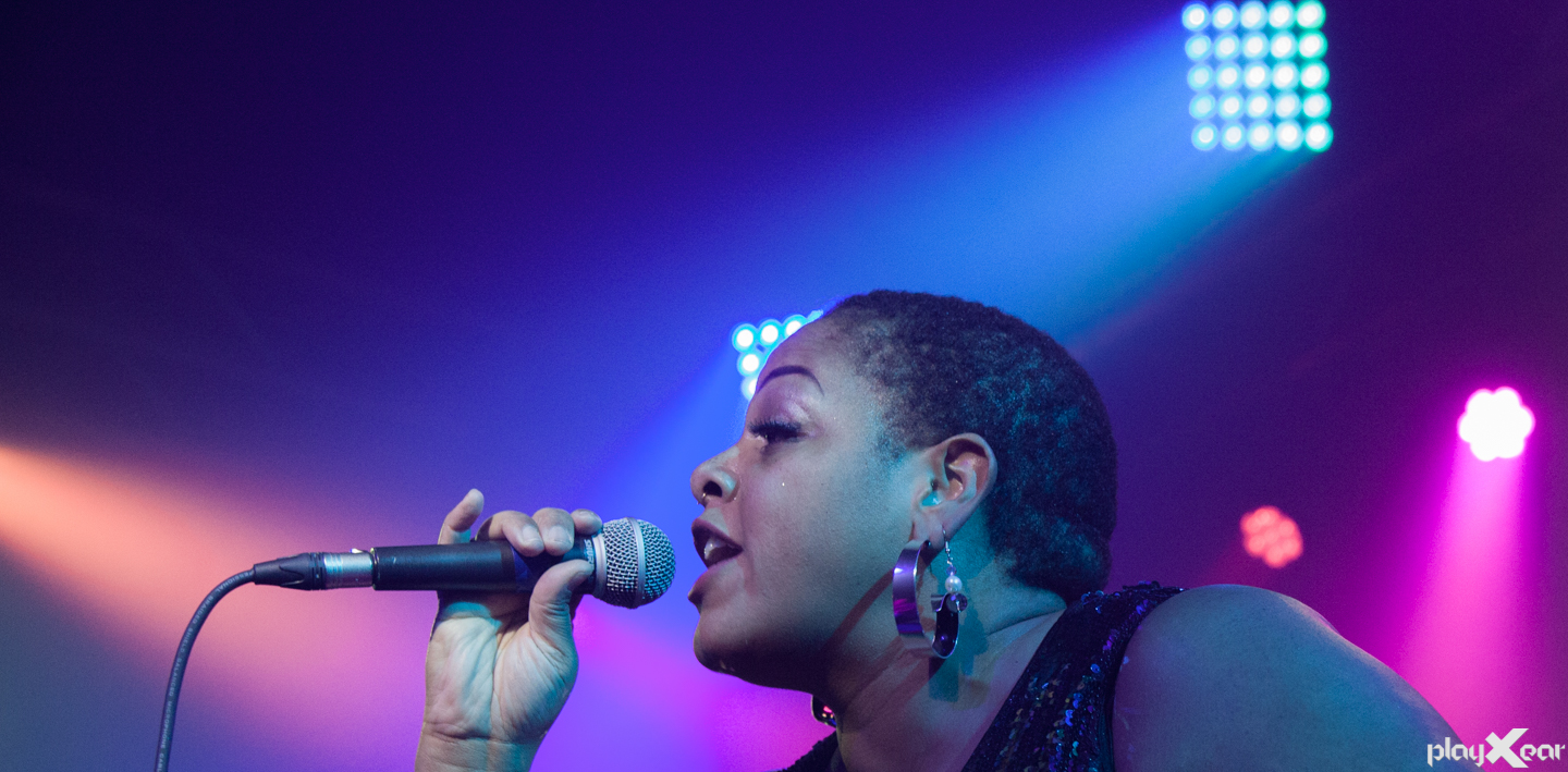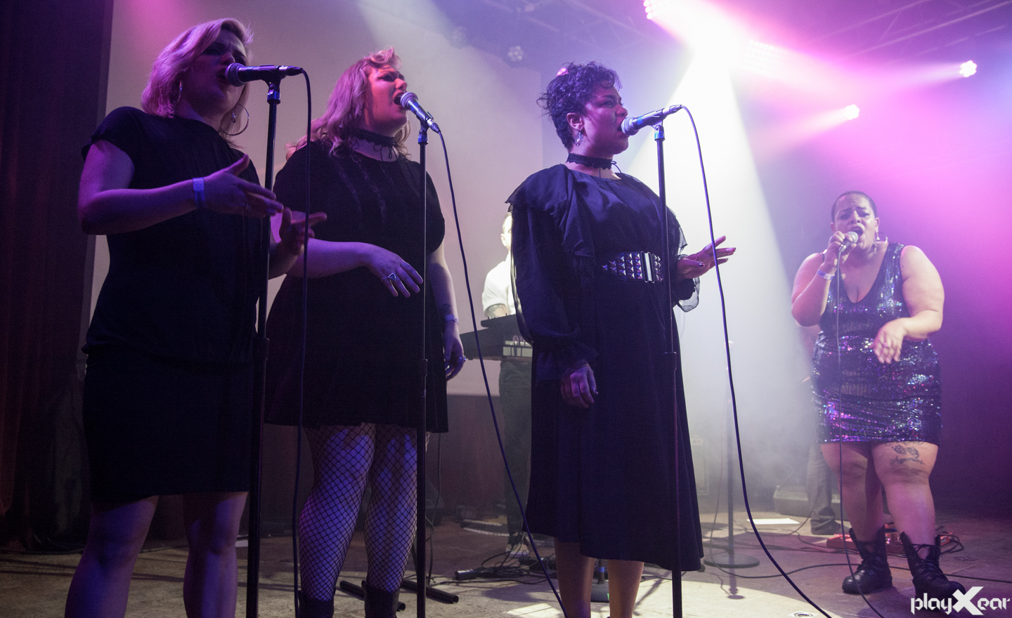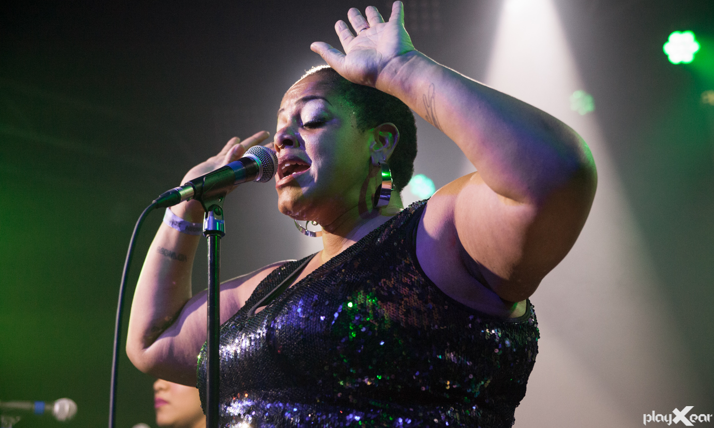The two hour set from the electro-soul outfit included tracks from their latest album “Delicious Trouble“, as well as older tunes. They also played some unreleased tracks in which they hinted might be coming out soon as a farewell gift to us. The stage set up had Adra and her backup singers towards the front, and Action J behind her standing in front of the keyboard/mixer with a guitar player next to him. Action J stepped to the front a few times to sing some tracks, while the neon lip imprint from the latest LP cover projected on the screen the whole set.