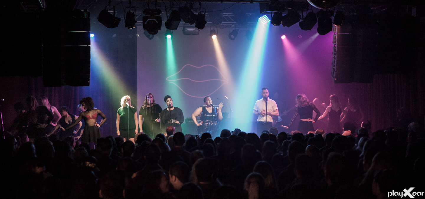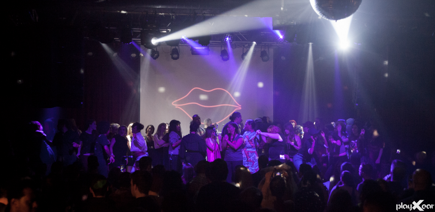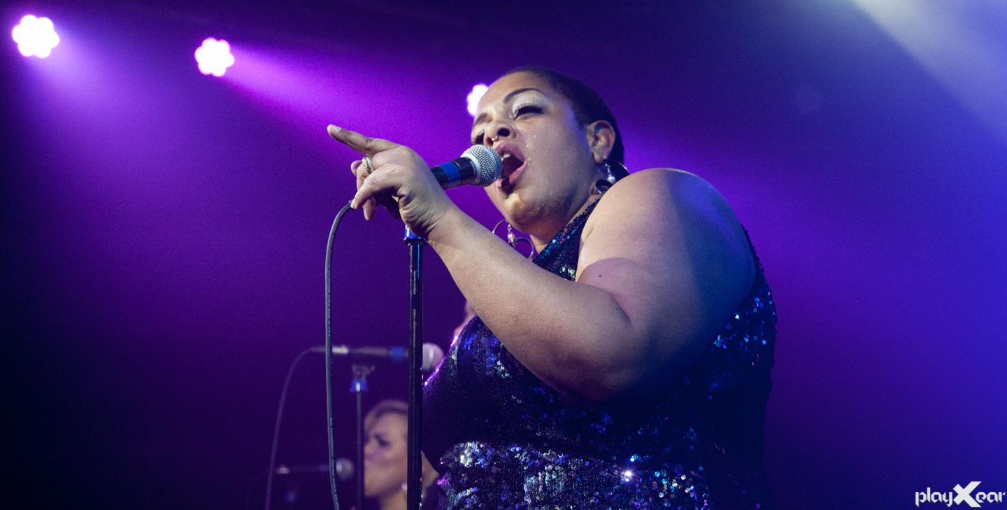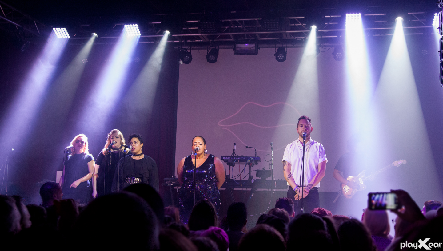 The two hour set from the electro-soul outfit included tracks from their latest album “Delicious Trouble“, as well as older tunes. They also played some unreleased tracks in which they hinted might be coming out soon as a farewell gift to us. The stage set up had Adra and her backup singers towards the front, and Action J behind her standing in front of the keyboard/mixer with a guitar player next to him. Action J stepped to the front a few times to sing some tracks, while the neon lip imprint from the latest LP cover projected on the screen the whole set.