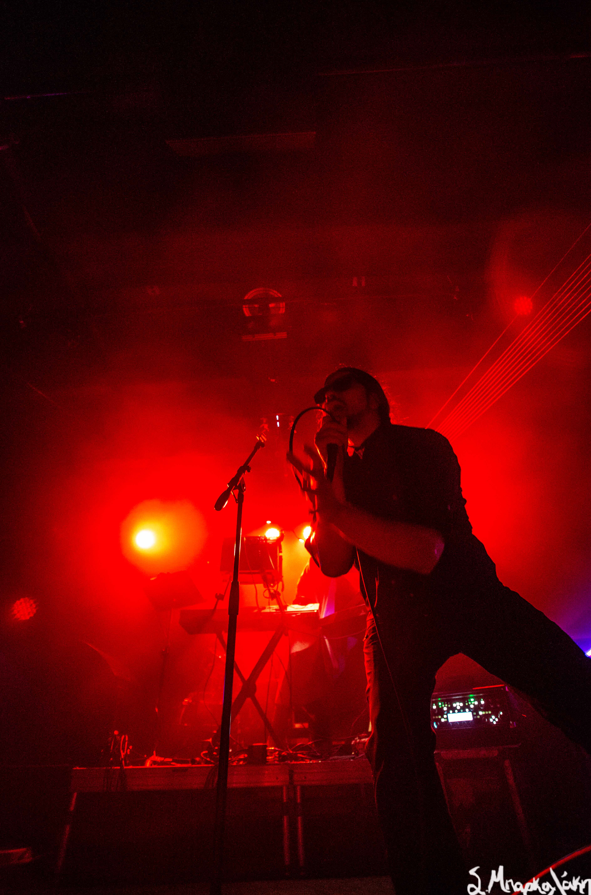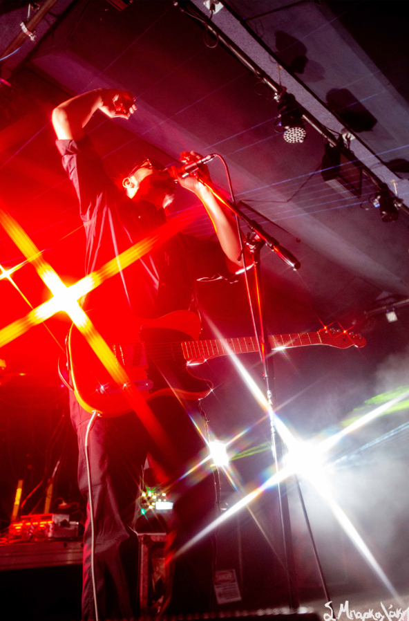 A little after nine it was time for the duo to take the floor and it was nice to see their silhouettes form on the stage. Behrens dressed in black with his signature pigtails and sunglasses and Turner in his vampire cape. Turner took his place behind the synthesizers that were placed a little higher and Behrens stood in the middle of the floor ready to make us all dance.