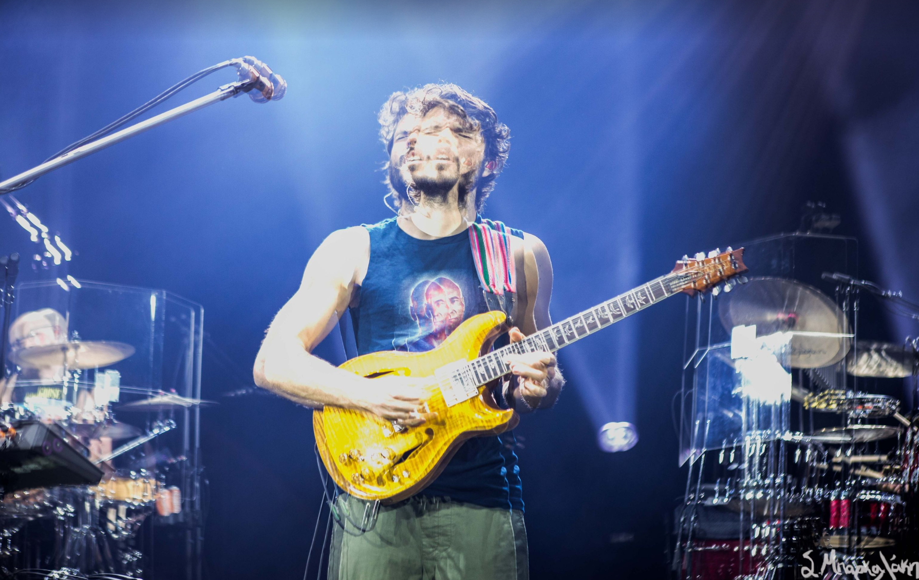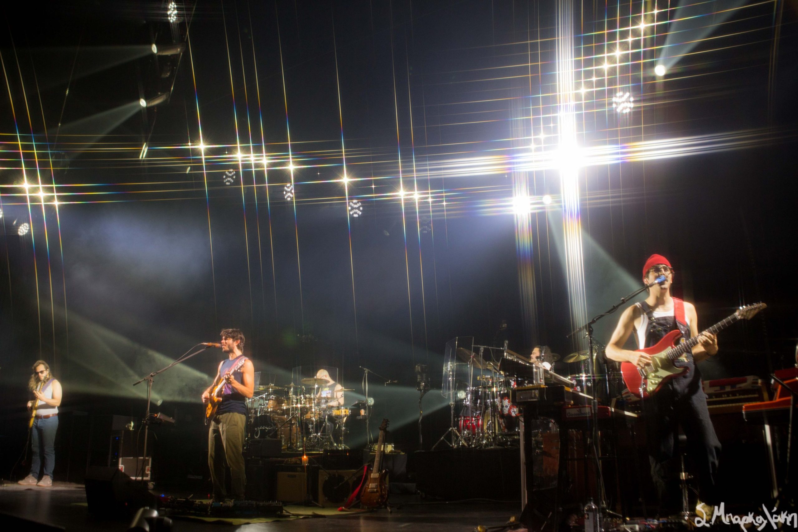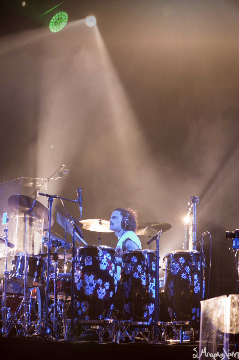 The stage was set up in five individual sections for each band member with a rug beneath their equipment. The background was left blank and there was a diamond like shape design for the lights above them. Very relaxing vibe to set the mood of the show. Fans were excited and dressed for the occasion ready to immerse themselves into the night.