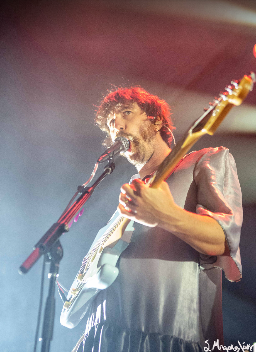 The band raged on with “Never Fight a Man With a Perm,” followed by their hit single from this record, “Dancer,” which was accompanied by vocals from James Murphy and Nancy Whang of LCD Soundsystem. Talbot stopped to speak and to say that the world is not exactly how we want it and until it is we have this and each other. To remember that freedom of speech is the ability to listen first. He thanked the crowd for being there and dedicated the next song “Danny Nedelko,” to the immigrants that make our countries better and to all the Palestinians who are dying.