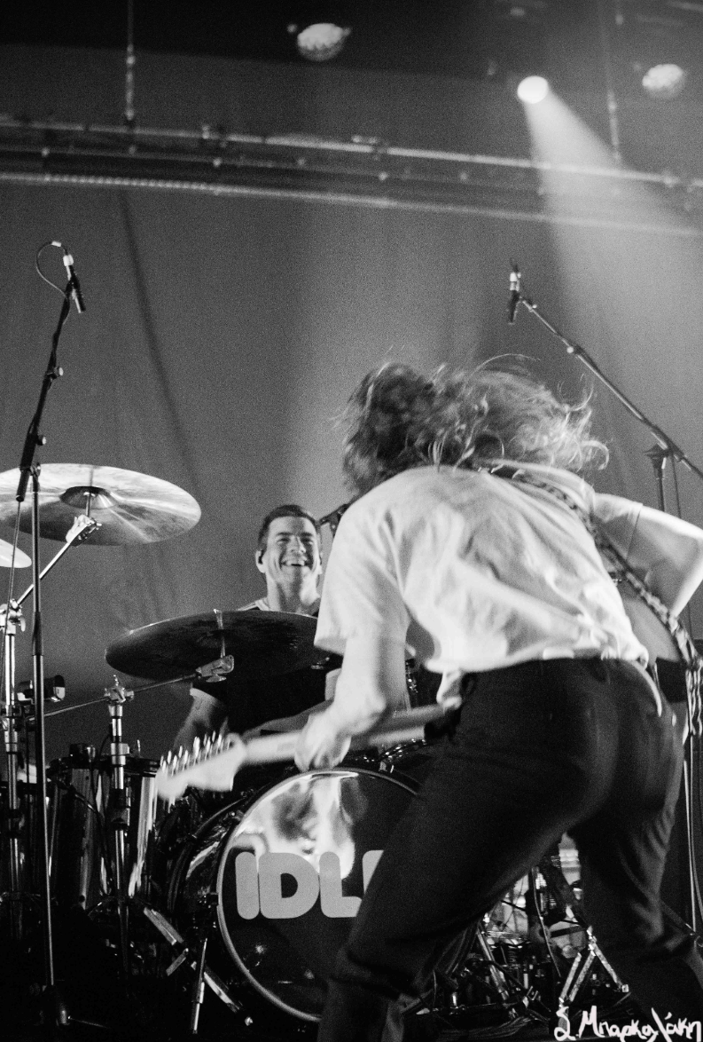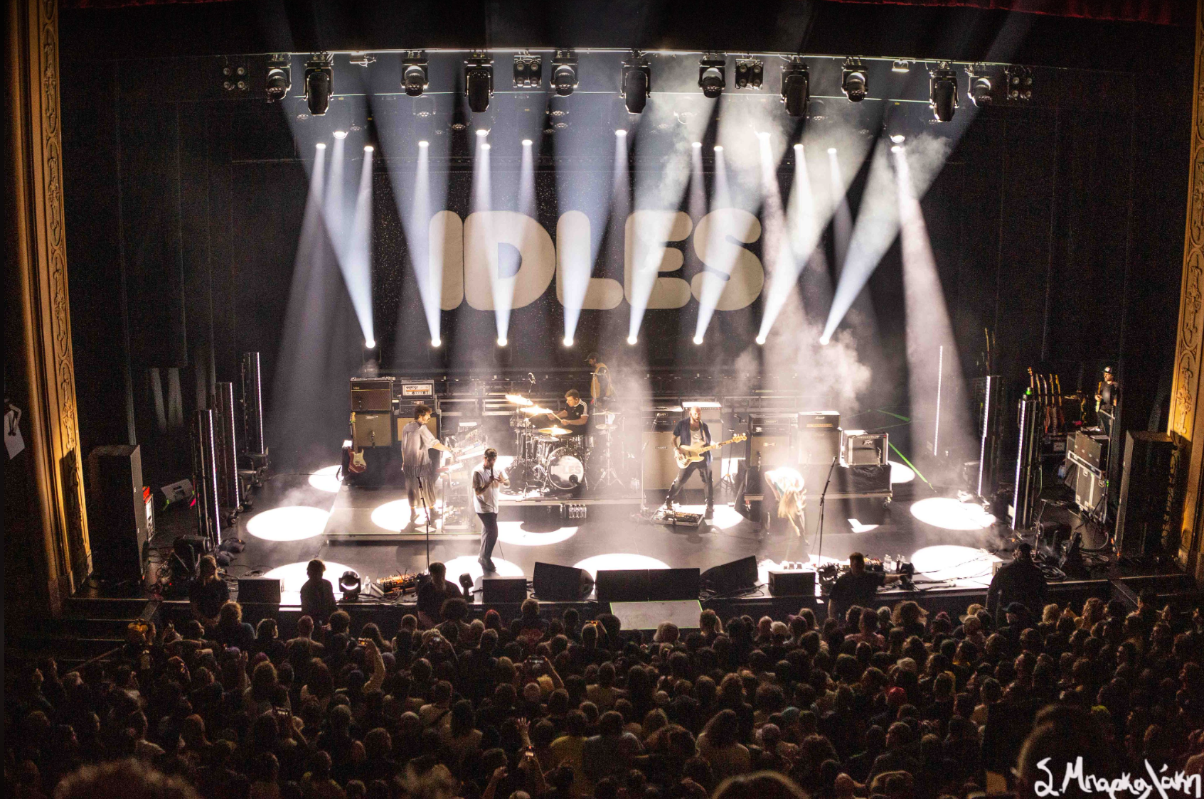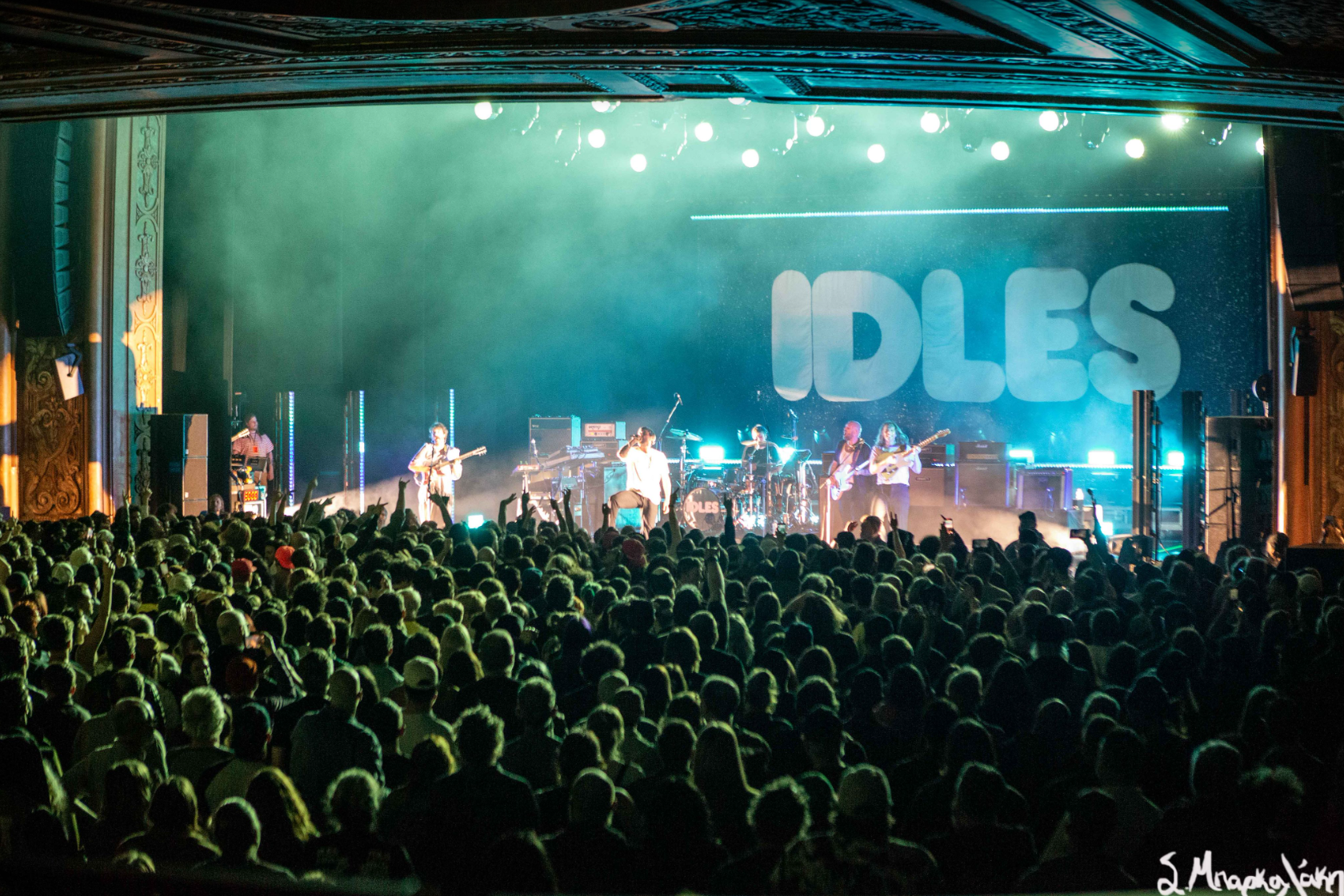 IDLES took the stage little after eight to everyone’s surprise of how early it was but this made sense given the show lasted more than two hours. Joe Talbot stood in the front wearing a white t-shirt with black pants with a bandanna and looked out in amazement. The band kicked off their set with “IDEA 01” and “Colossus,” which is one of my absolute favorites of theirs. As it went on, so did the intensity of Talbot’s voice and the band’s playing.