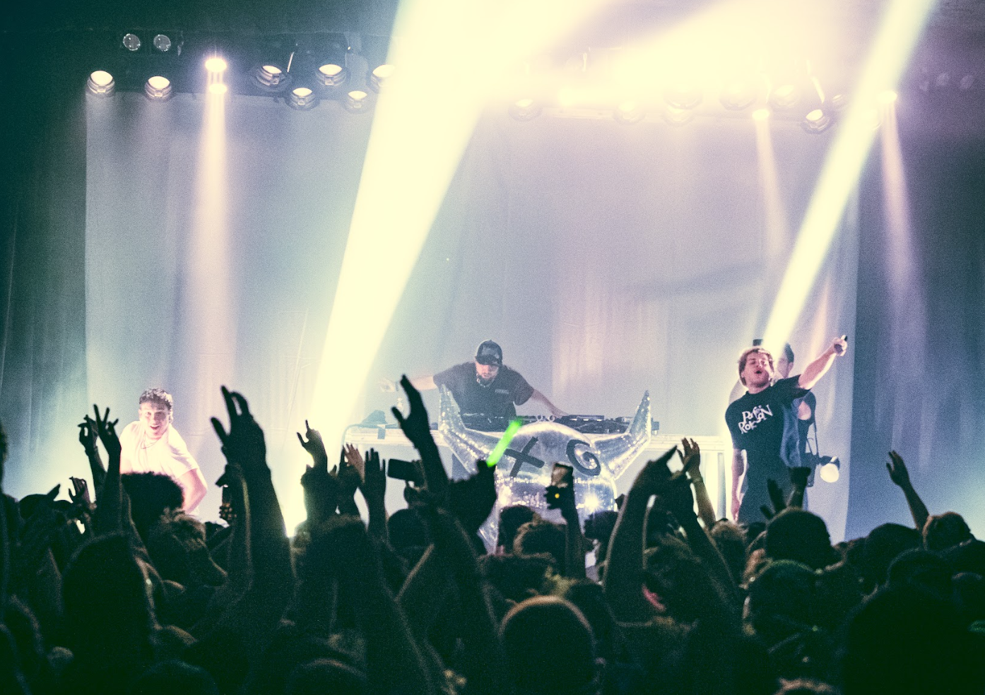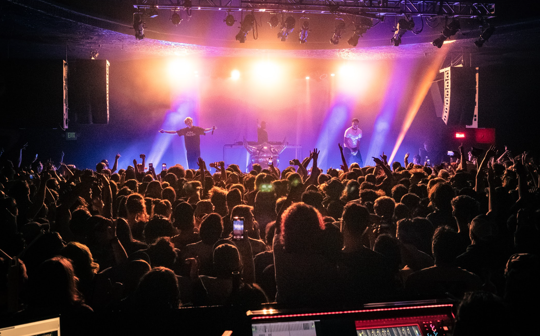 The crowd was so filled with energy from the night that there were two times in the pit, during “Hooligang” and “Give It To Me,” when the audience was bouncing up and down in unison so hard it felt as if the floorboards were going to give way. The dip was so significant that it caused me to fall and crack my camera monitor (worth it). The duo had almost no pauses for the night, playing most songs back-to-back and keeping the energy going.