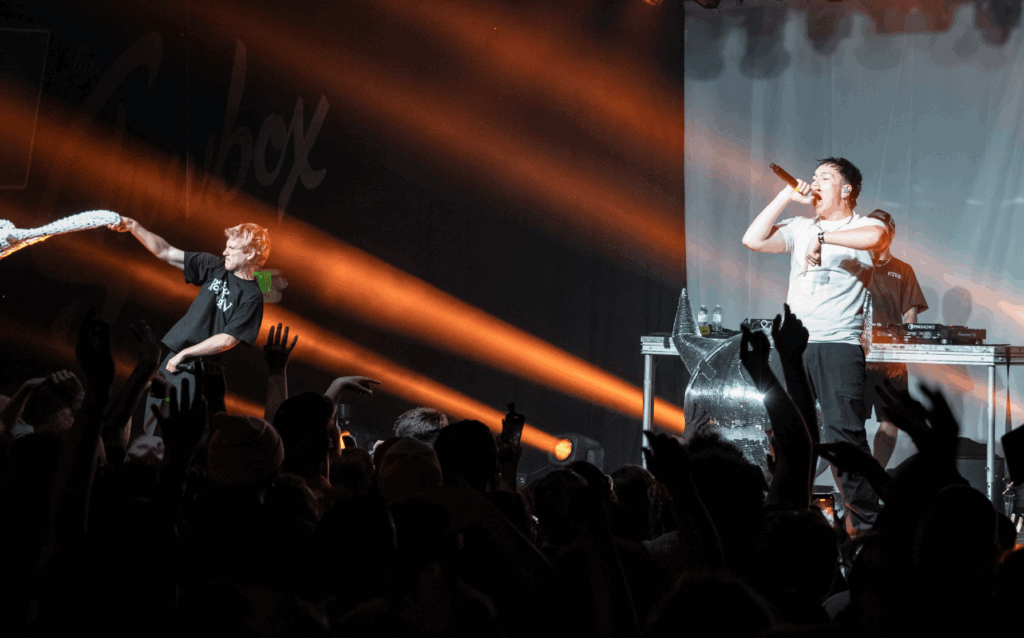 Joey Valence & Brae are a duo you may or may not be familiar with. If not, you’re certainly missing out. The punk rock duo emerged on the scene in 2021 and exploded into popularity in 2022 with their hit “Punk Tactics.” With this release, the duo cemented themselves as the next heads of rap-rock. Joey and Brae met in college and started producing songs together. Now, they’re on the world tour supporting their album, Hyperyouth, a chaotic mix of punk, rap, rock, and combining samples of classic 90’s hits. The record also features artists like JPEGMAFIA, Rebecca Black, and TiaCorine. The album tour came to The Showbox, selling out one of Seattle’s most iconic venues.