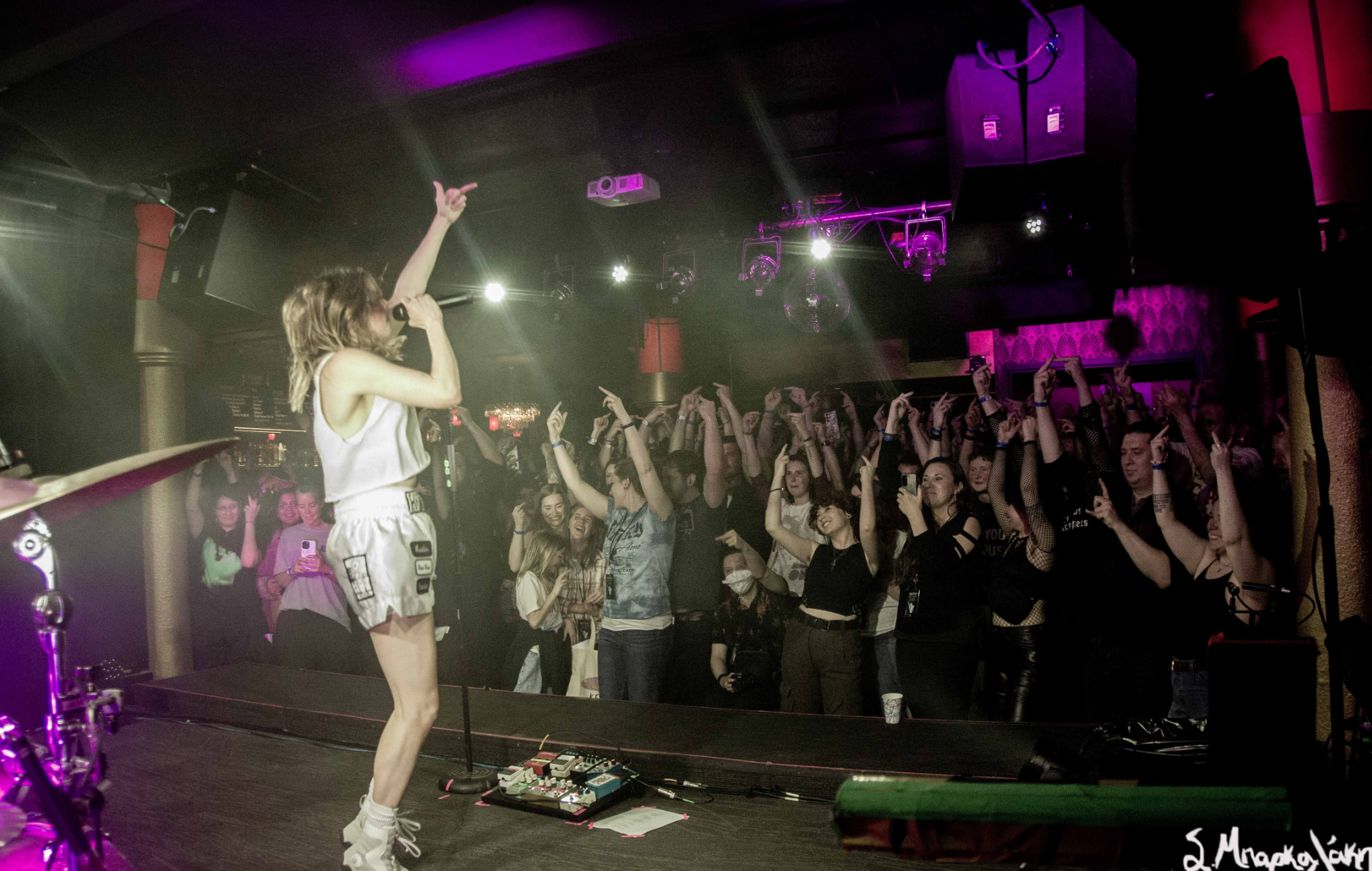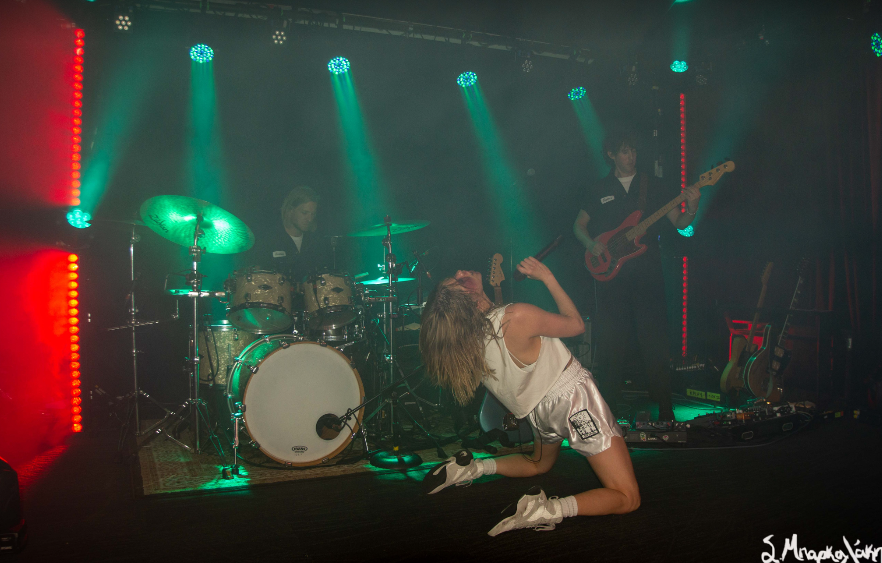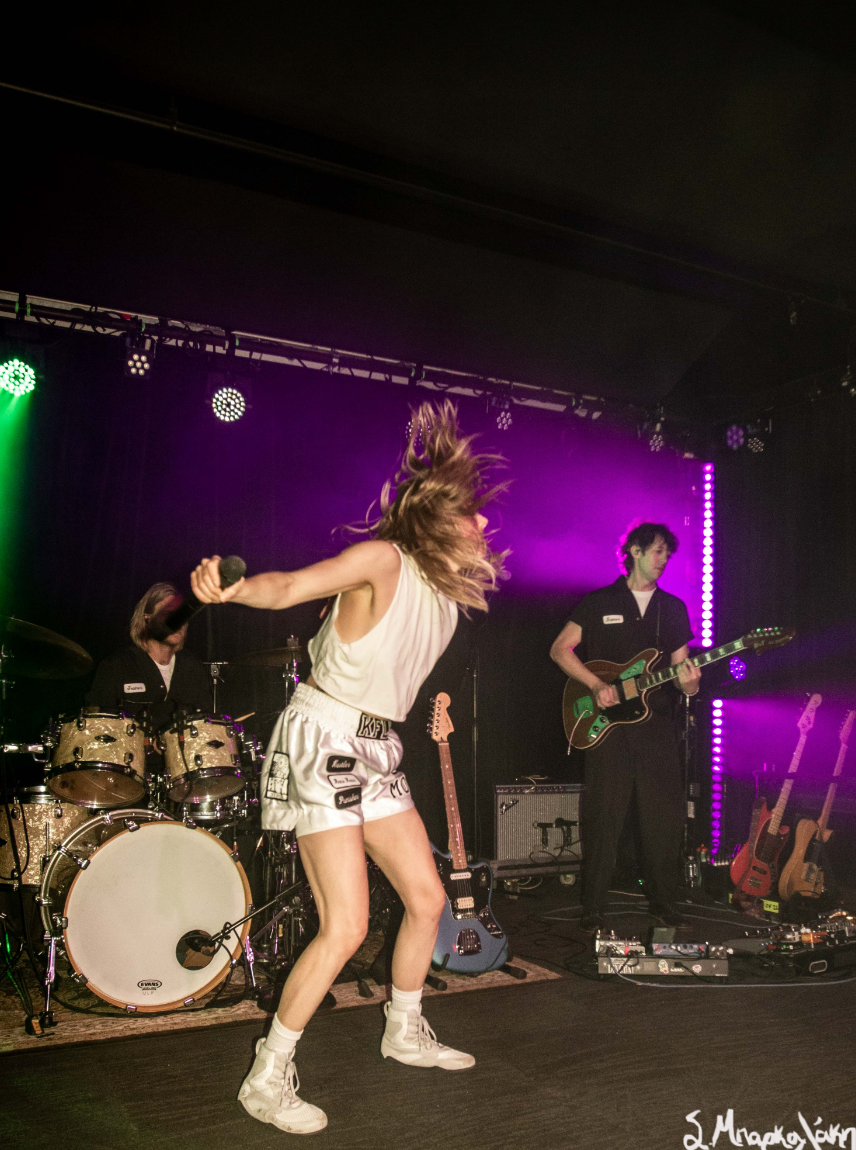 After a good opening set by Cam Kahin to a packed room it was time for K.Flay to take the stage. First her two touring members took their places and she followed dressed up in a boxer outfit which has been theme of the show. Wearing boxing shoes, boxing gloves, a boxing robe with the words The Punisher on the back, shorts that amplified Mono, and makeup of a bruised eye and broken nose, she was ready to defeat any obstacles that stood in her way.
