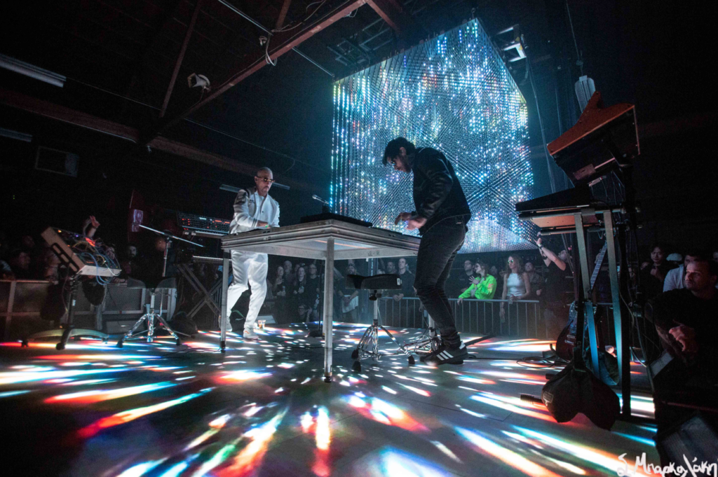 Kasablanca have always thrived in the space between anonymity and spectacle, a melodic‑techno duo whose analog‑driven sound and retro‑futuristic visuals have earned them a devoted global following. Known for their ongoing “Human Learning” narrative, collaborations with Lane 8 and Bob Moses, and a commitment to performing with real hardware rather than laptops, they’ve built a reputation for shows that feel more like cinematic experiences than traditional DJ sets. Their 2026 tour, Better Today Better Tomorrow, marks their most ambitious concept yet: a fully immersive 360° live experience that places the audience around their analog station, dissolving the barrier between performer and crowd. Seattle was the first cities to witness it.