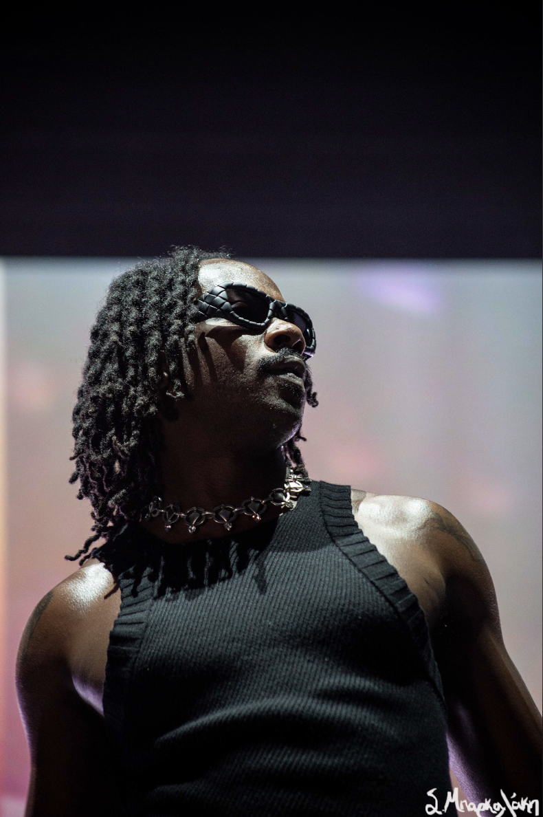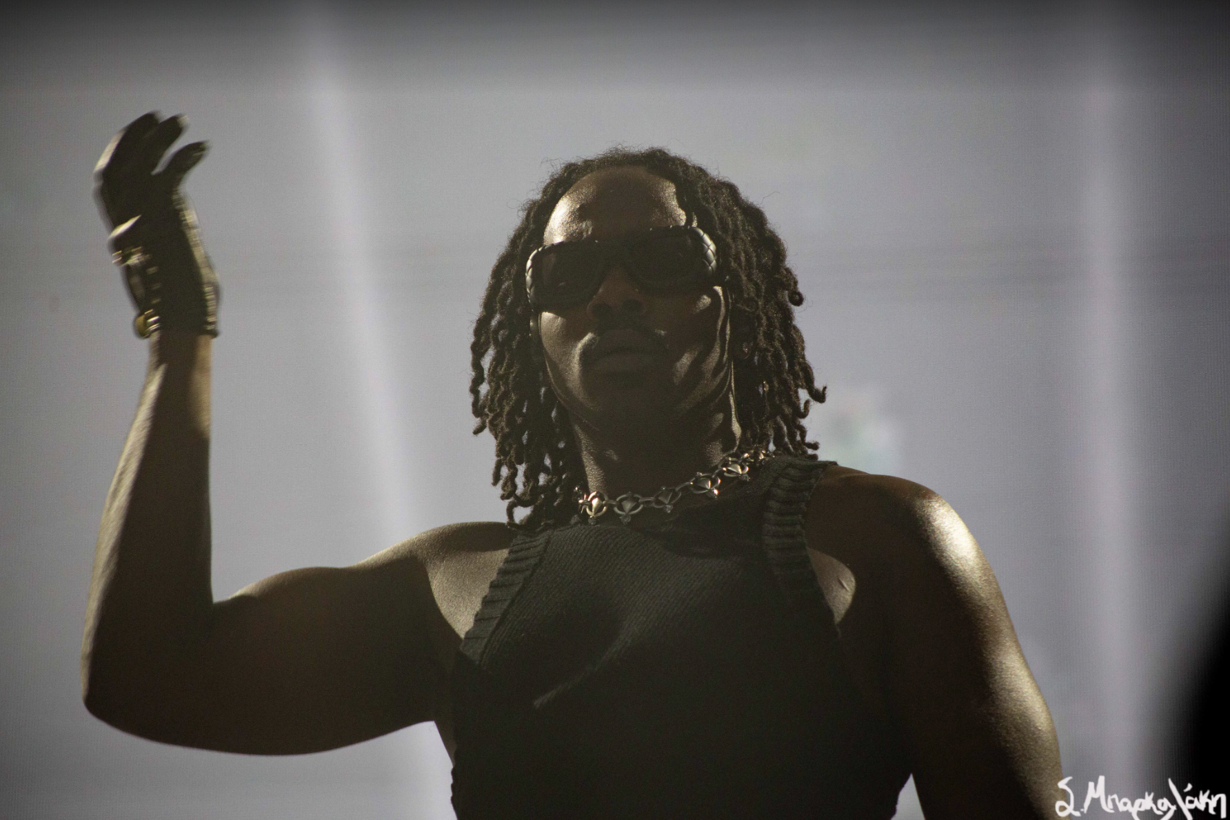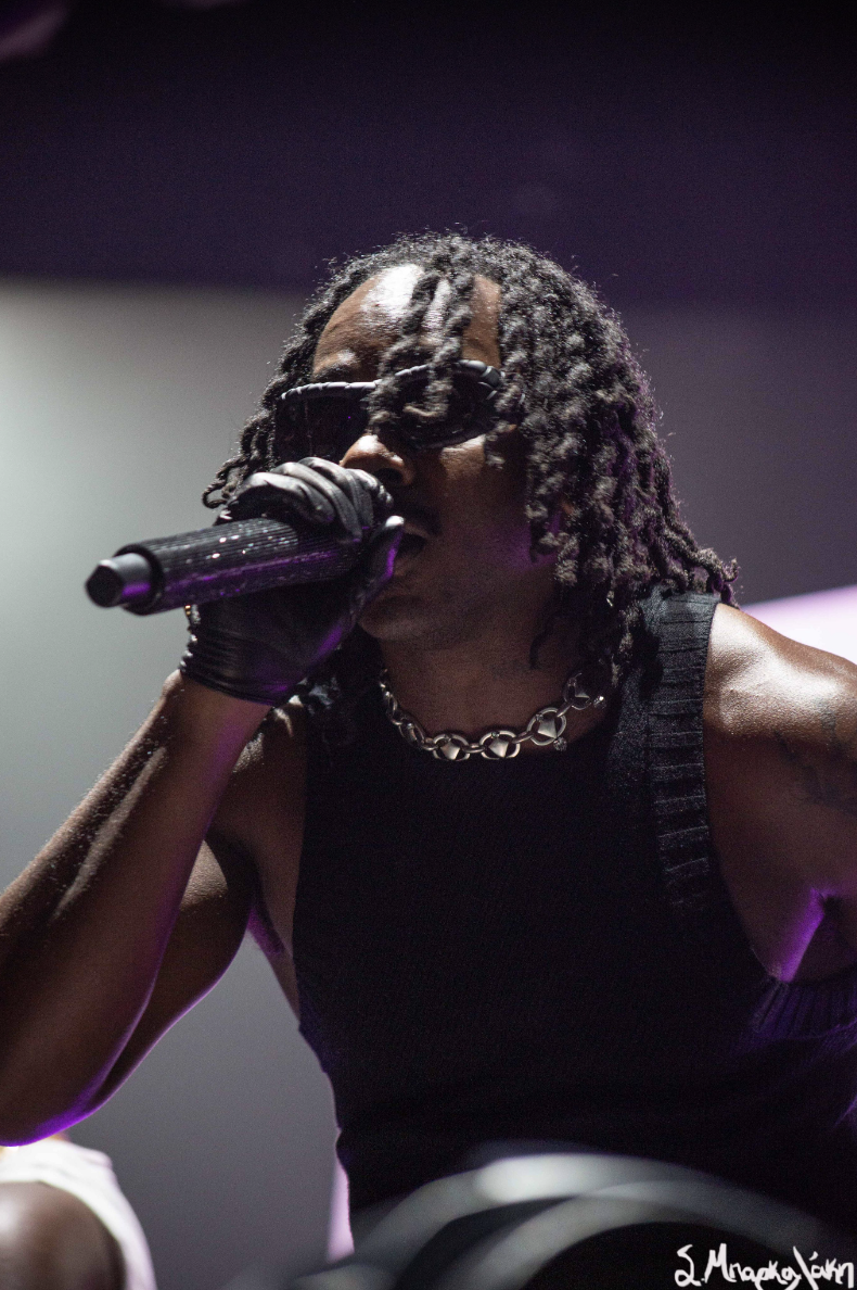 Next up was another artist we’ve really enjoyed over the last few years. Channel Tres has been climbing the ladder quickly but again no surprise considering his fun performances and energy he brings to the stage. Sheldon Young aka Channel Tres released his debut record, Head Rush, this year after many singles and EPs making the rounds. Wearing a black tank top and black shades he strutted across the floor swinging his braids around. He was accompanied by his four dancers a few times who flawlessly executed their choreography.