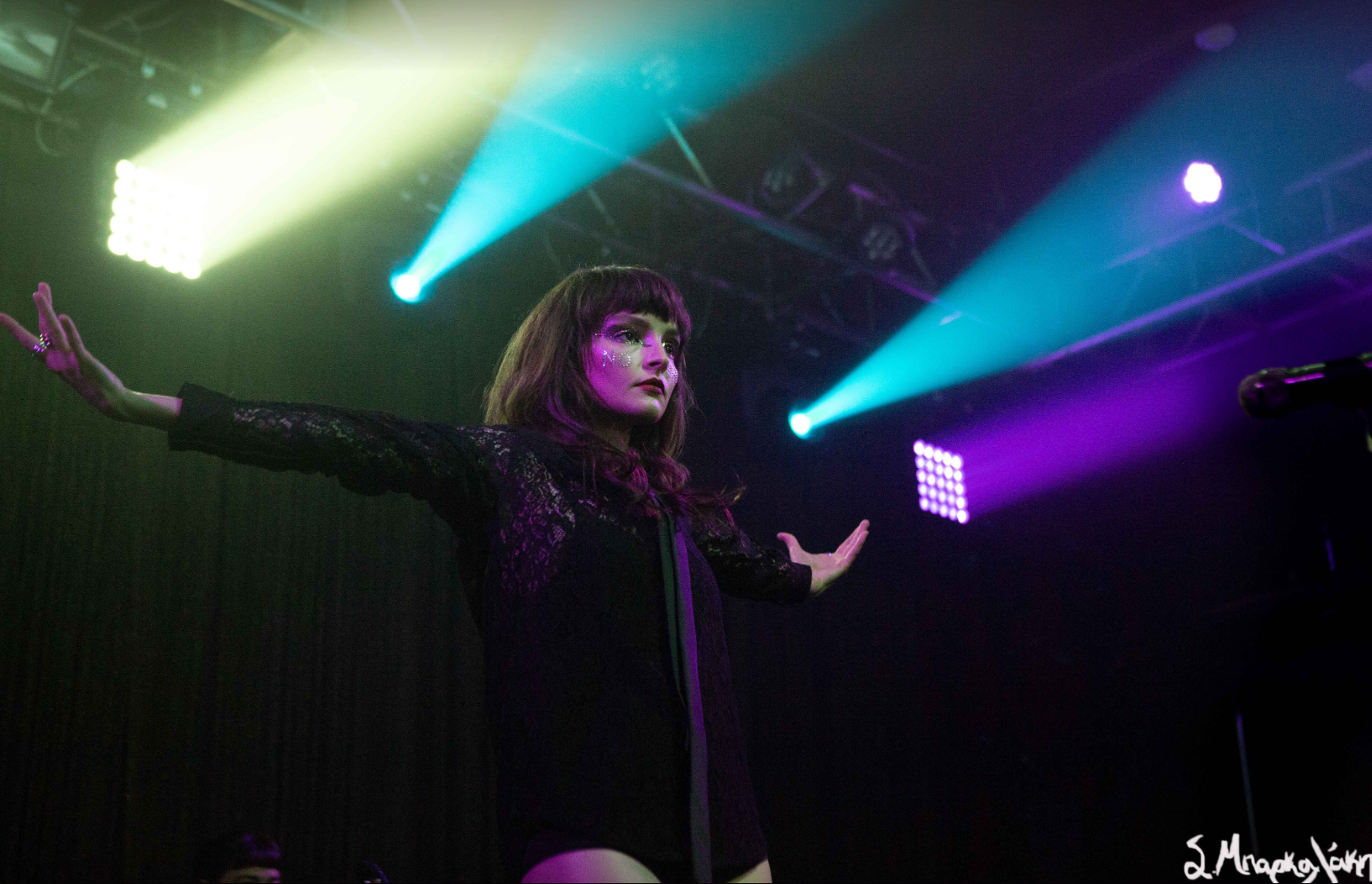 Fans gathered on the Seattle rainy night to show their love for the young Scottish star. Lauren took the stage wearing all black with the words ‘No Shame‘ written on each cheek in bedazzles and her signature eye make-up. She apologized for being a few minutes late as she was looking for her black tie to complete her outfit. A small riser was placed in the middle of the stage to help a very petite Mayberry be visible from a distance of Neumos in order for her fans to see her clearly. Accompanied by three female musicians, Lauren and her band came in and kicked off the night strong and ready to go showing the confidence only a weathered performer could display.