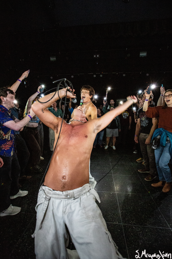 The venue was packed from early on there to also see openers Faux Real who have been building their fanbase with their fun performances. Brothers Elliott and Virgil Arndt founded the project in 2018, releasing genre-bending tracks, playing shows reminiscent of a Eurodance Iggy Pop, and bringing their one-of-a-kind sound globally, supporting acts like Duran Duran, Paramore, and Wet Leg. We’ve been fans since we caught their set at this year’s SXSW. Known amongst punks and poptimists alike for years, they’re finally releasing their highly anticipated debut album Faux Ever this fall via the legendary indie label City Slang on Friday, October 11.