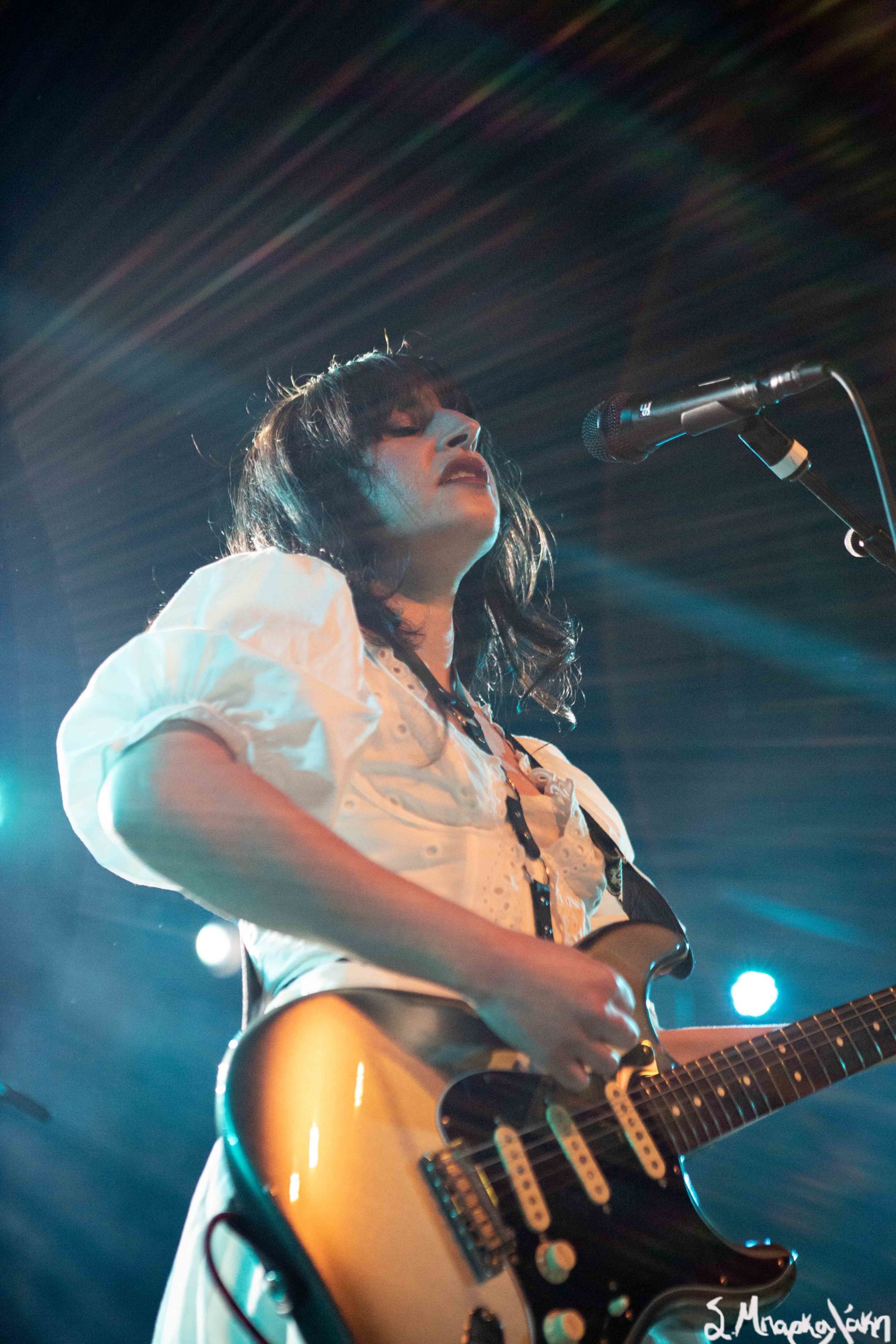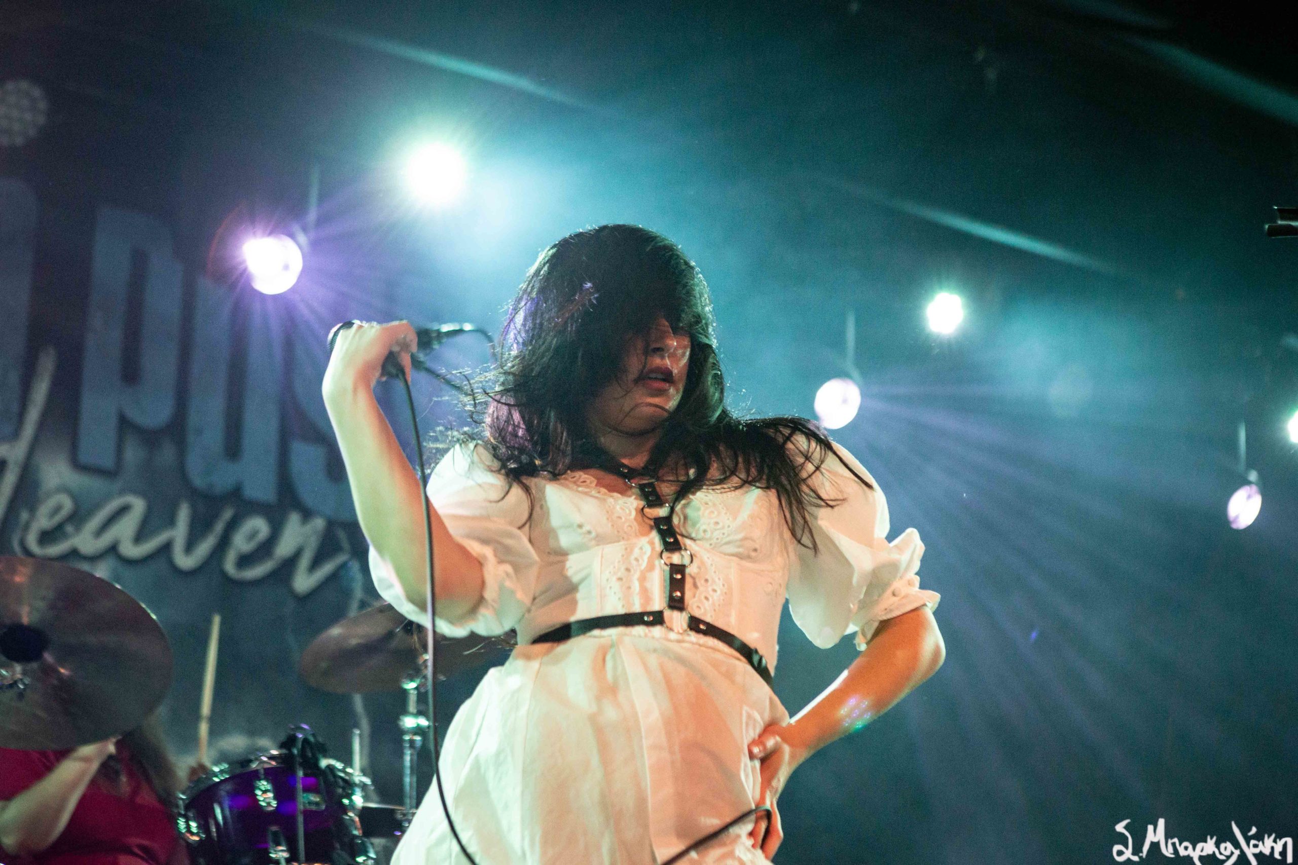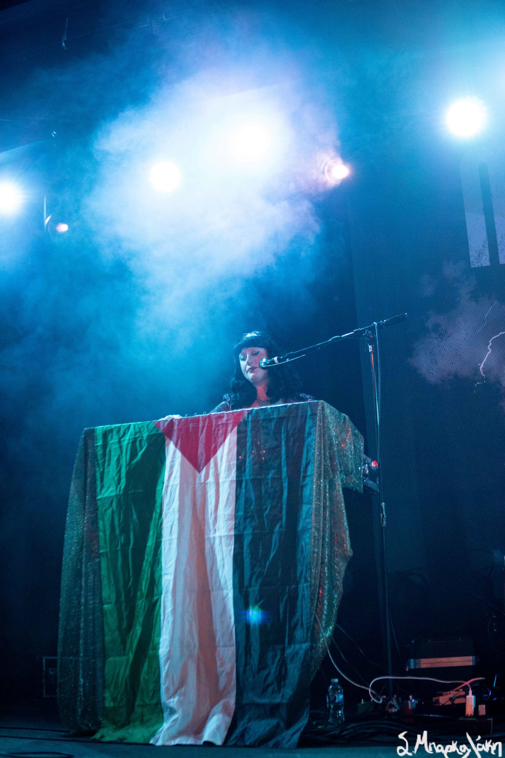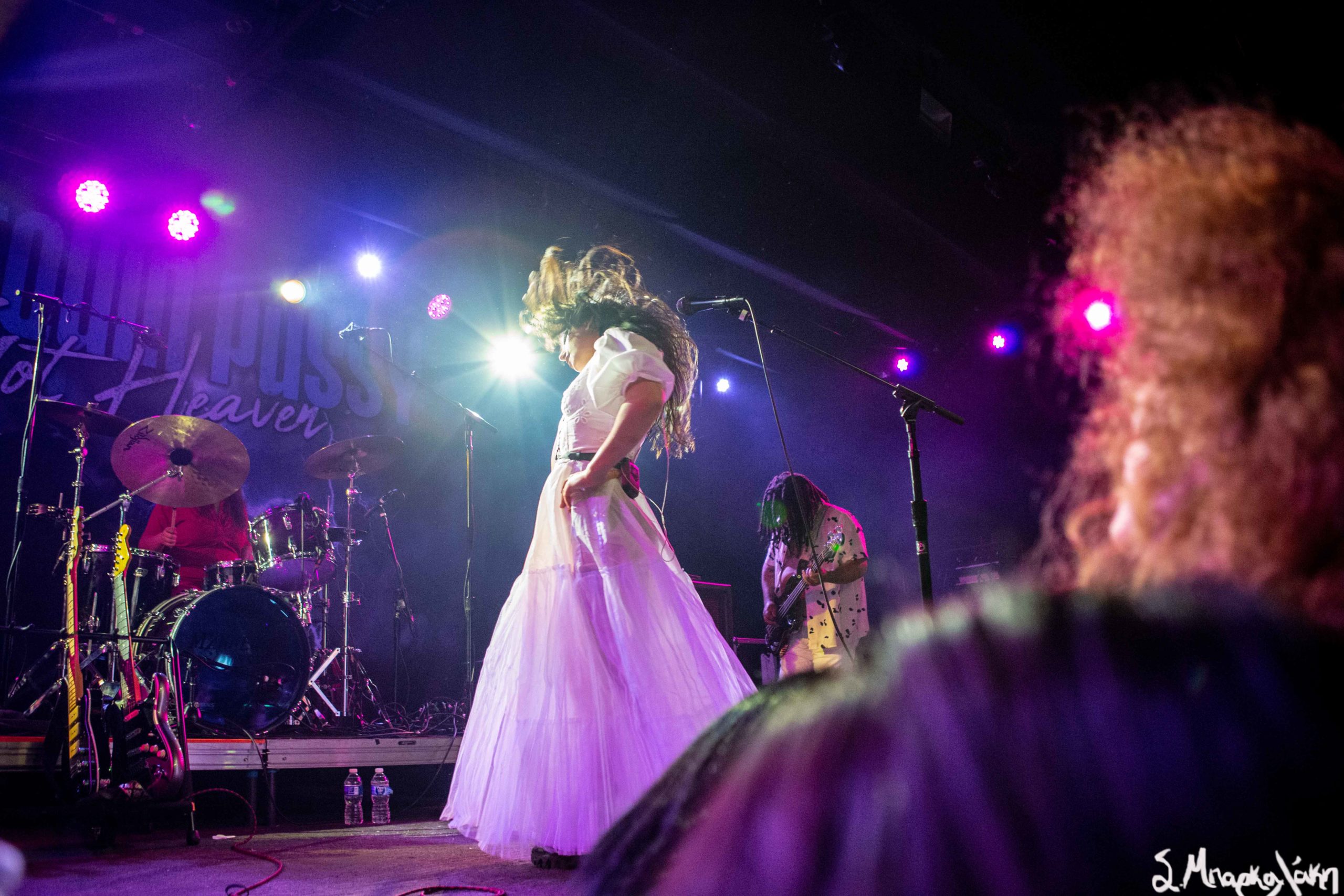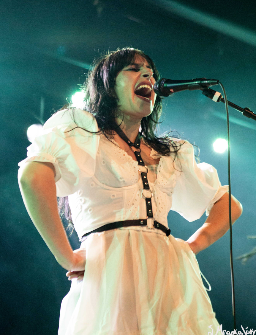 Mannequin Pussy took the floor a little after nine and their hungry fans focused their eyes on the stage while the music started. Missy Dabice stepped on the floor wearing a white dress and dark lipstick while we also noticed a Palestinian flag in front of the keyboard table. The band kicked off with “I Don’t Know You,” “Sometimes,” and “Nothing Like.”