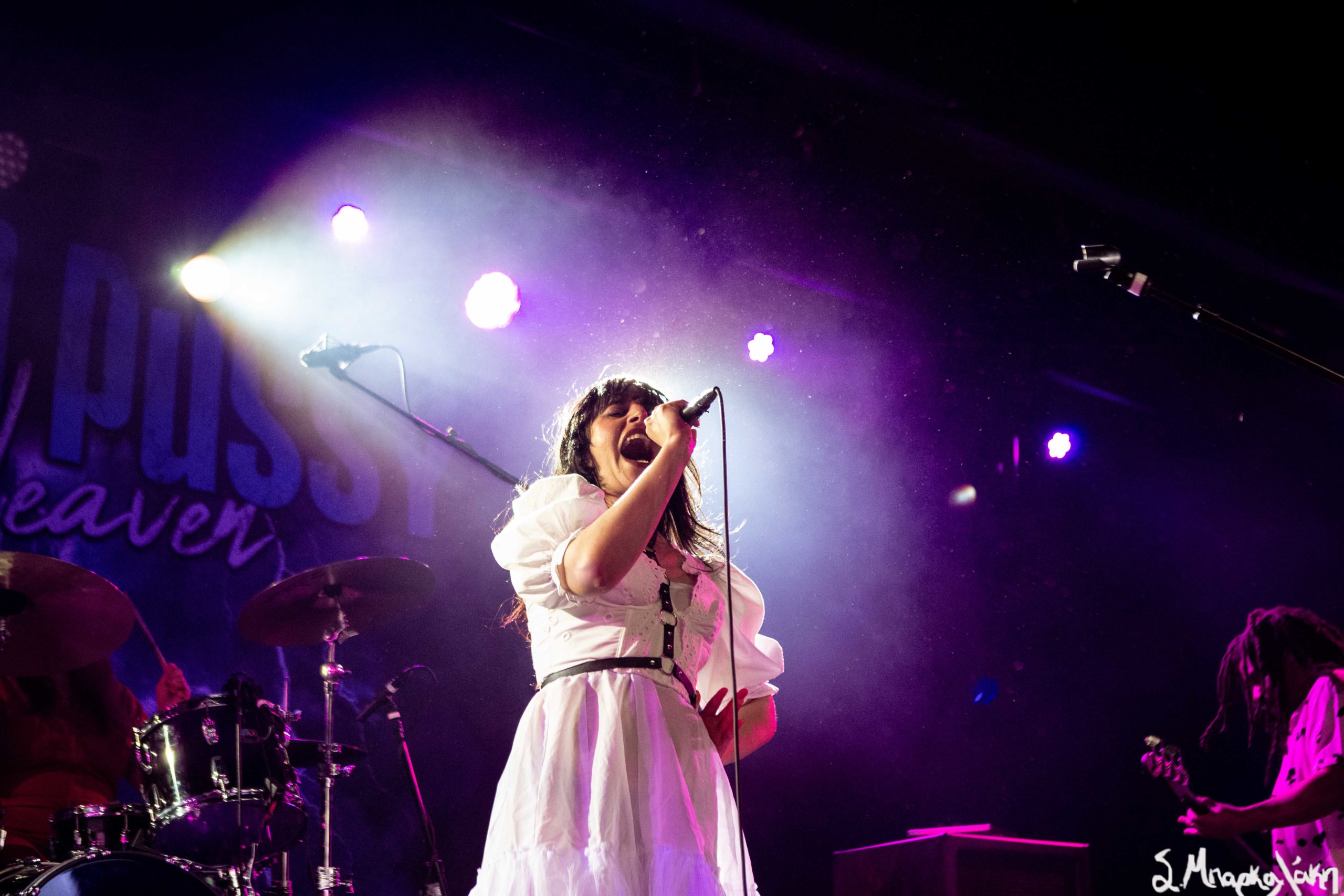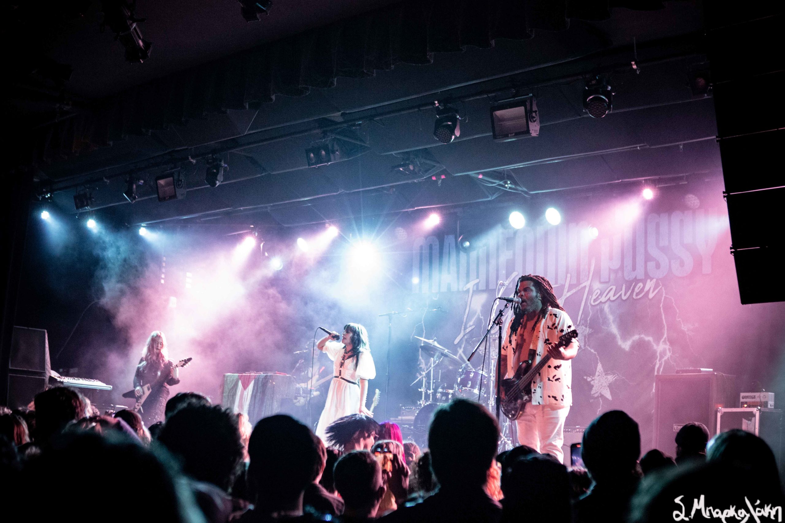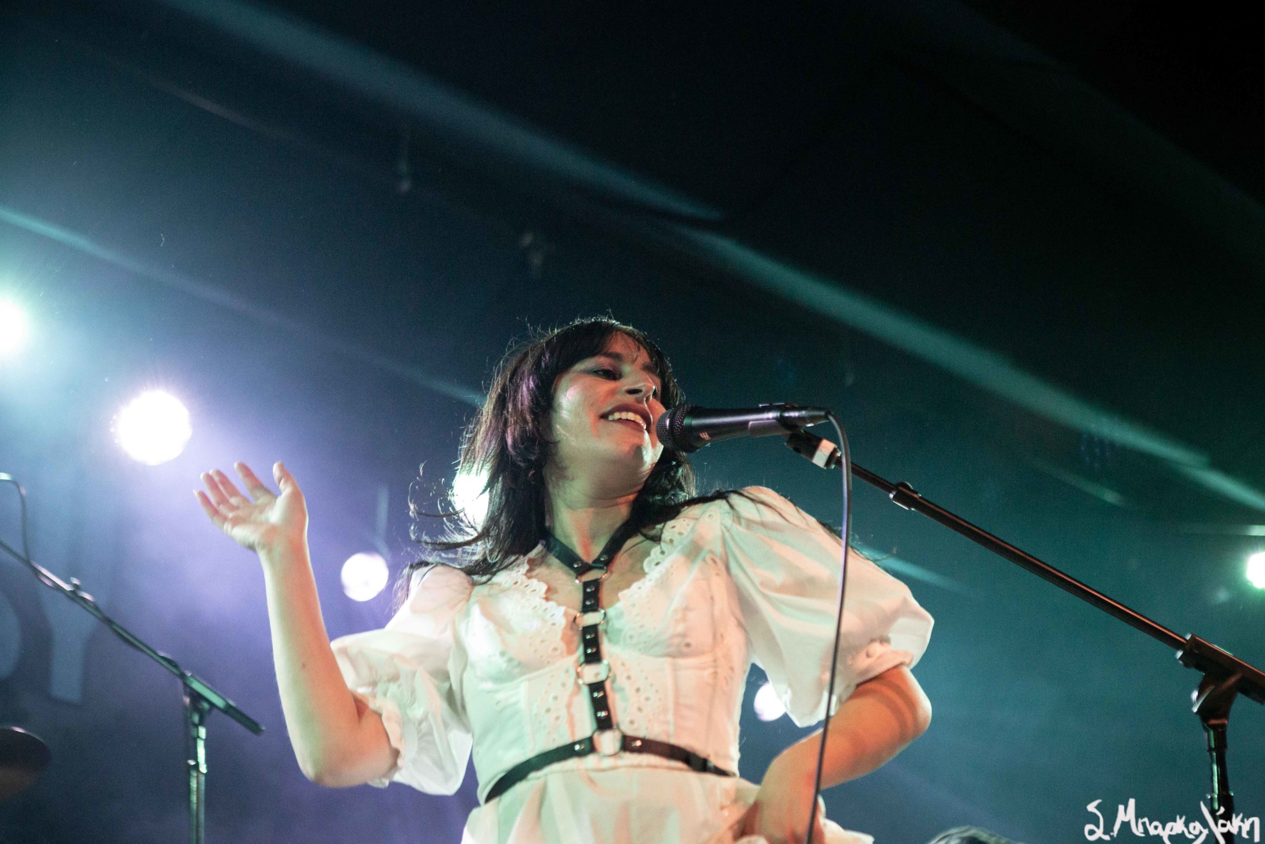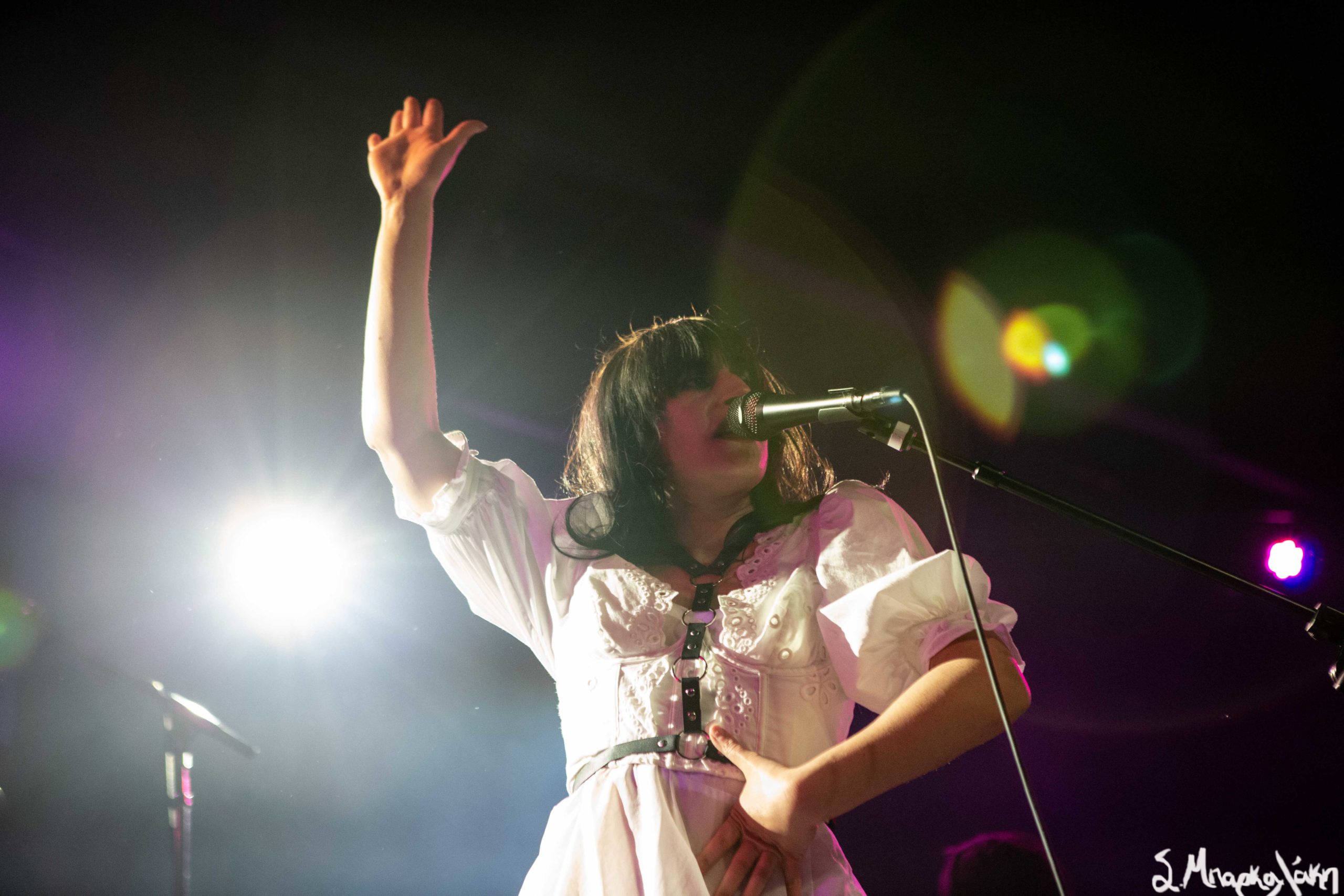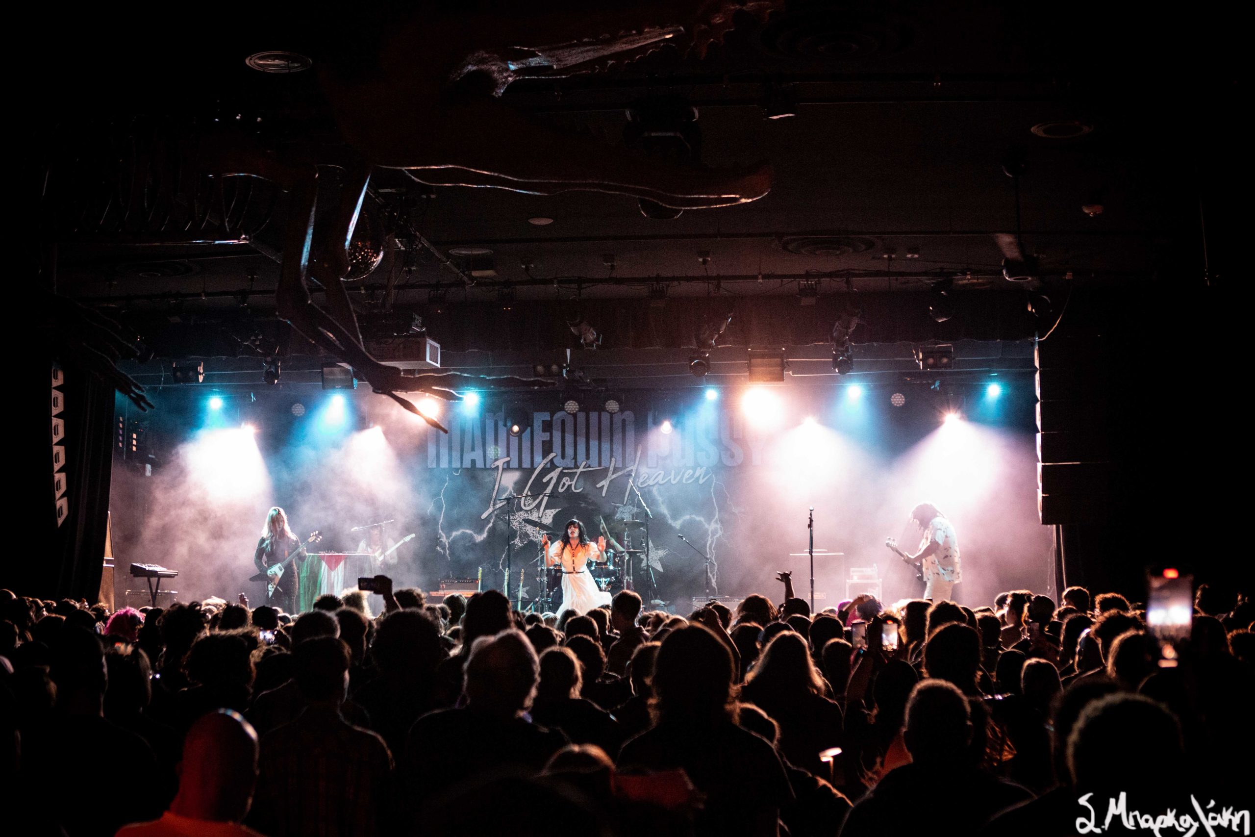 Mannequin Pussy took the floor a little after nine and their hungry fans focused their eyes on the stage while the music started. Missy Dabice stepped on the floor wearing a white dress and dark lipstick while we also noticed a Palestinian flag in front of the keyboard table. The band kicked off with “I Don’t Know You,” “Sometimes,” and “Nothing Like.”