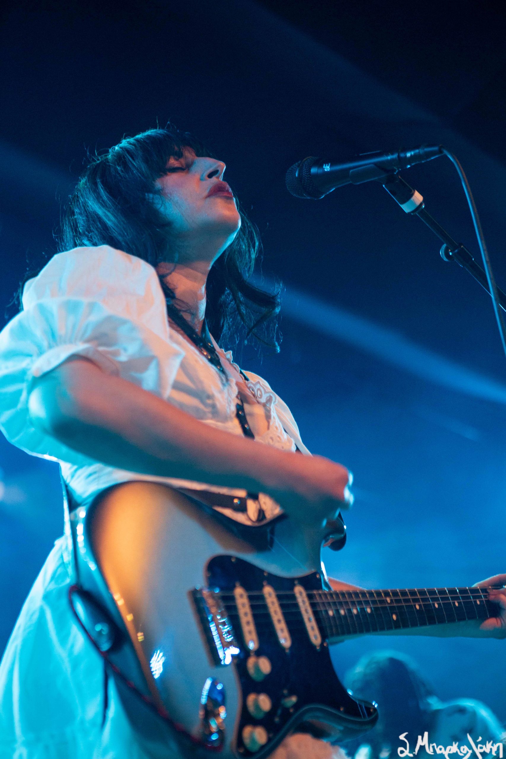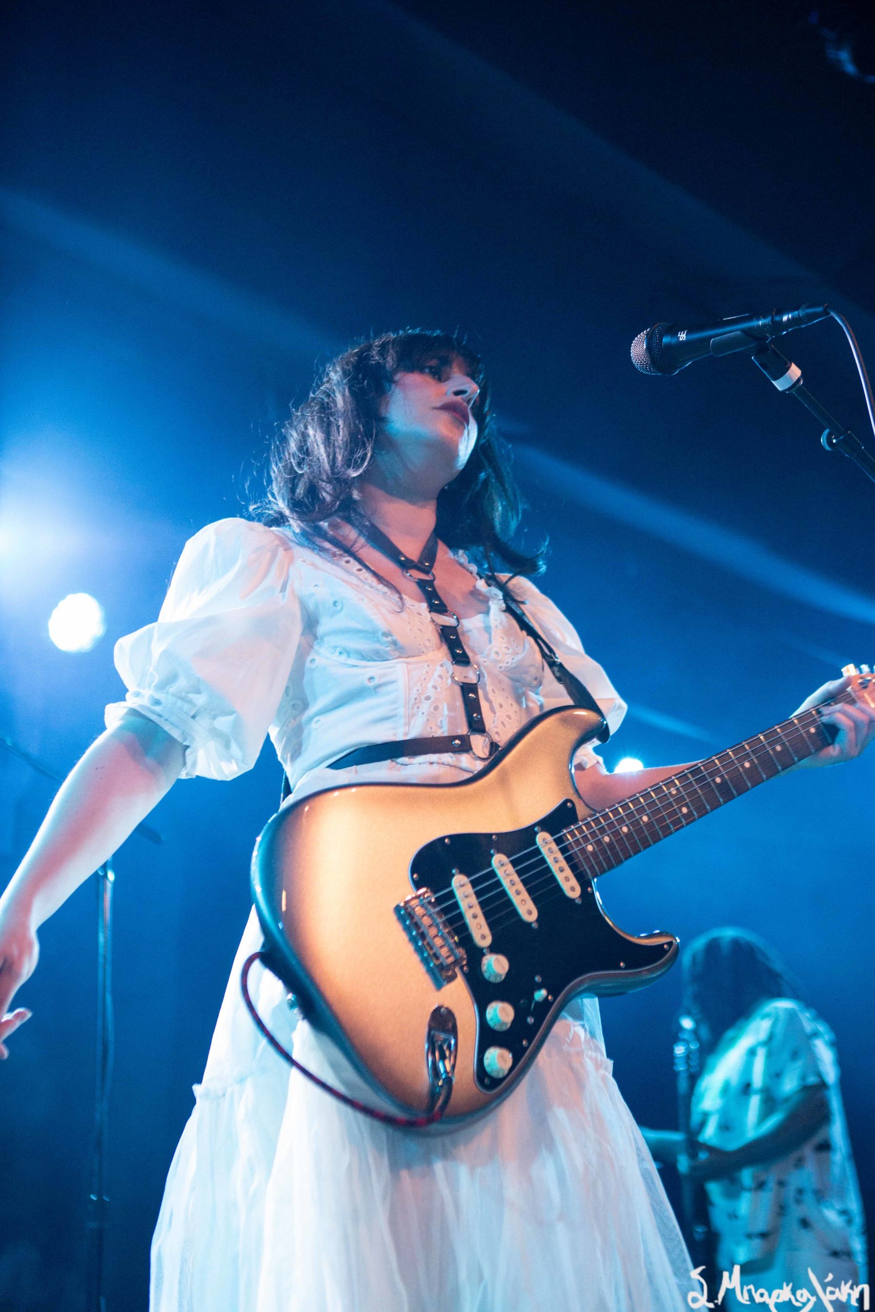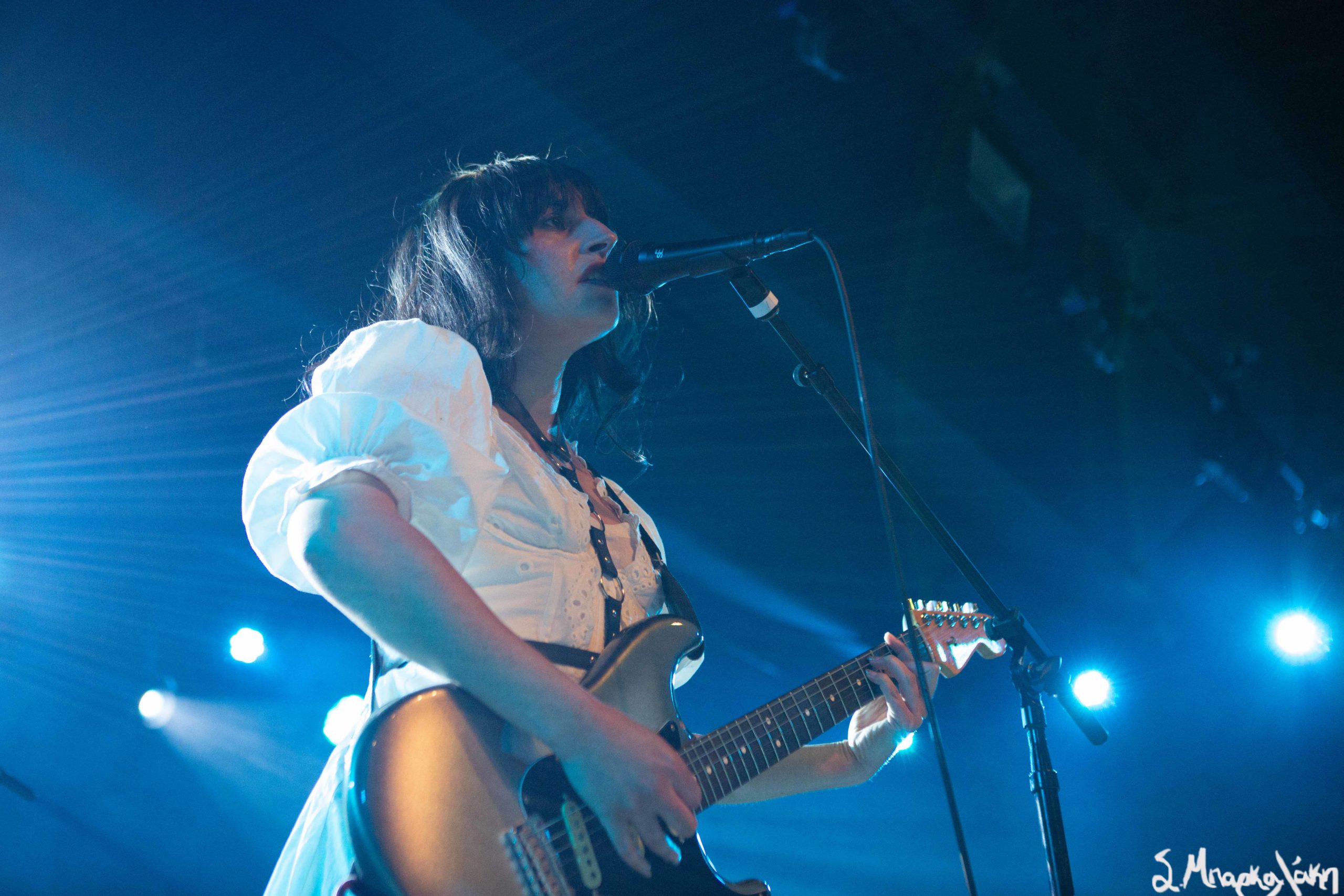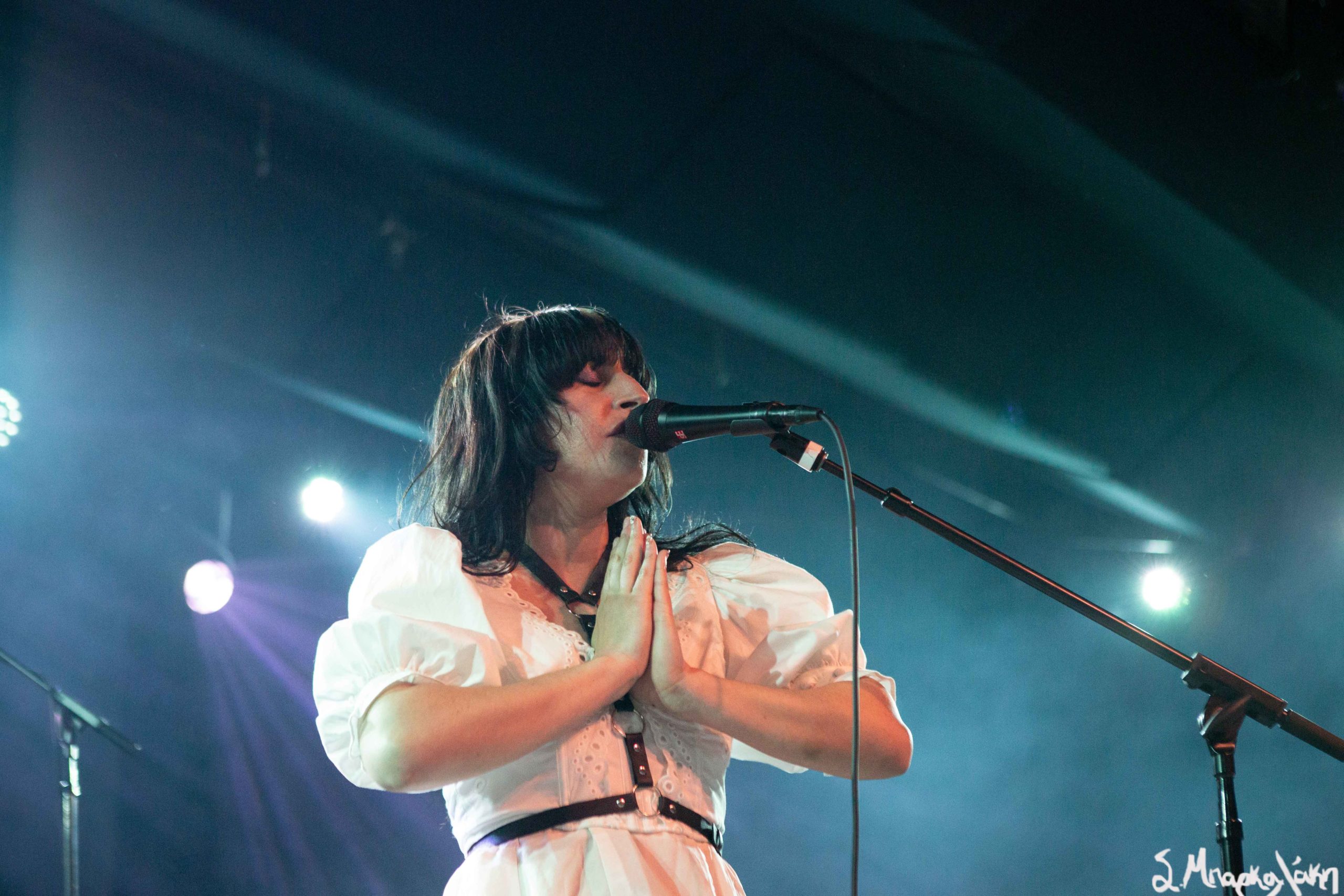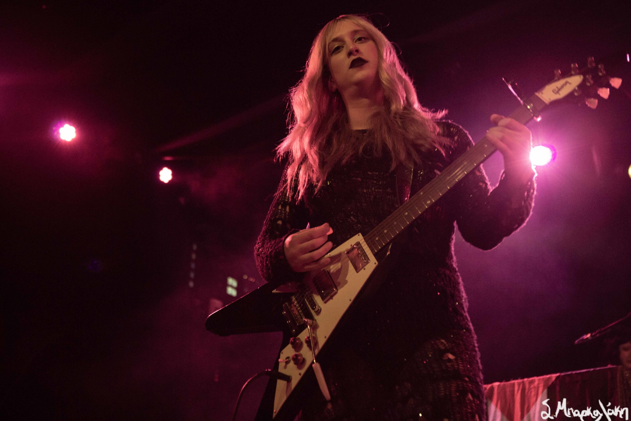 Mannequin Pussy took the floor a little after nine and their hungry fans focused their eyes on the stage while the music started. Missy Dabice stepped on the floor wearing a white dress and dark lipstick while we also noticed a Palestinian flag in front of the keyboard table. The band kicked off with “I Don’t Know You,” “Sometimes,” and “Nothing Like.”