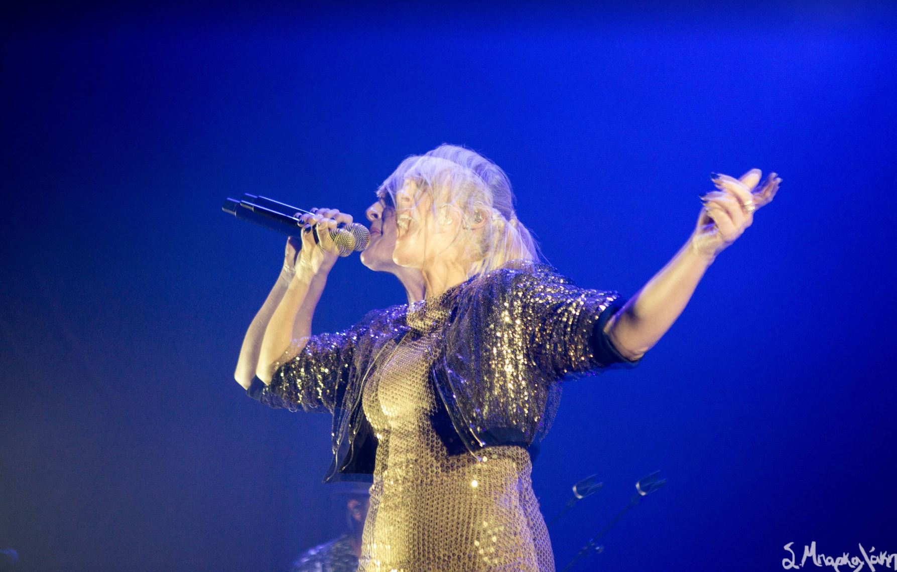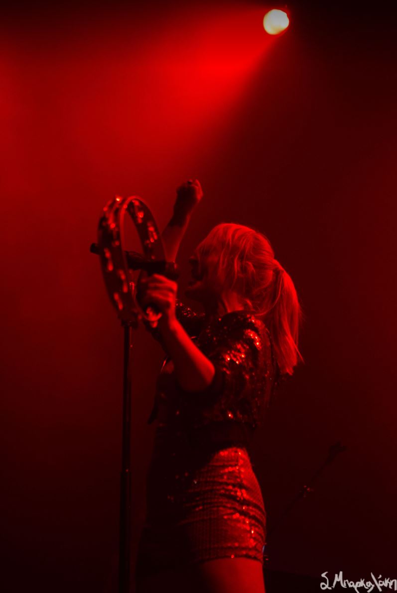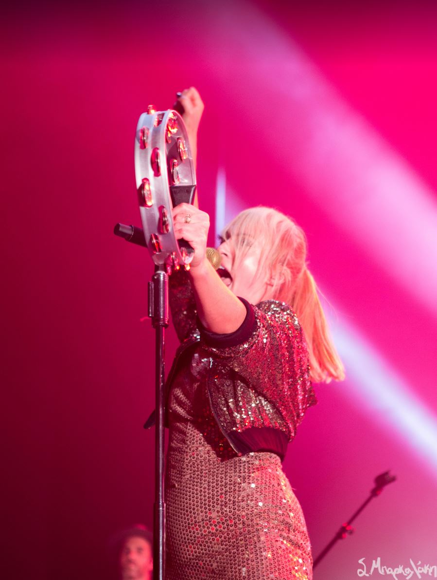 It was time for the main act to take the stage and wasting no time they kicked off with “Doomscroller,” loud and intensely. This song could easily be three, but its unique assembly makes it even more enjoyable live. Haines stood in the middle projecting confidence and pure power leaving no doubt that we were going to be under her spell for the next couple of hours. And of course, that’s exactly what happened. As the songs changed and the lights danced along to the music accompanying them, we also followed along letting the rhythm control us.