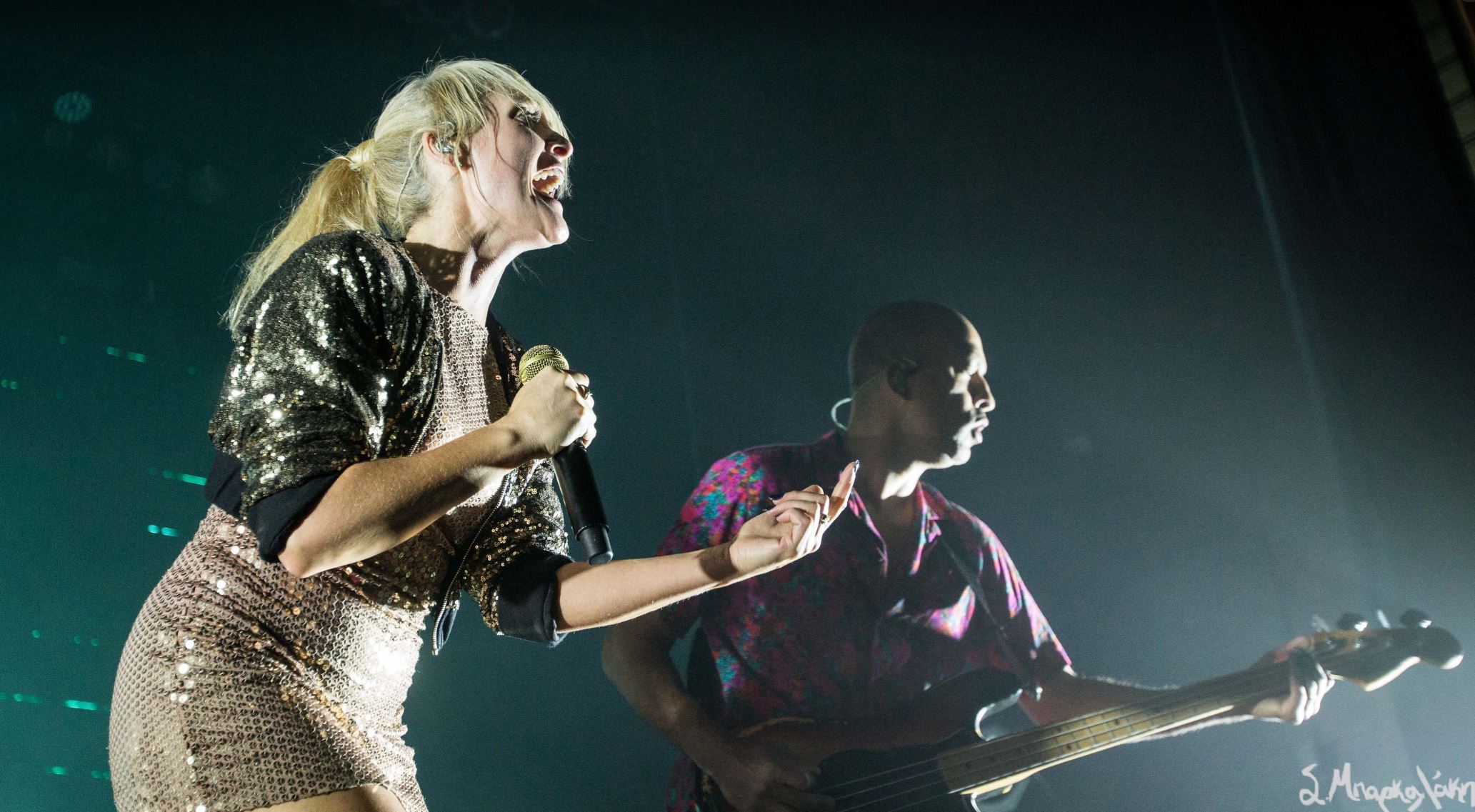 About halfway through their set Haines and Shaw stepped into the middle together with an acoustic guitar and performed “Twilight Galaxy,” and “Combat Baby,” in a very intimate way. Singing to their very excited fans in the first front rows smiling at the good time everyone was having. After that the beat picked up with “Cascades,” as the room became a large dance floor paired with bright strobe lights.