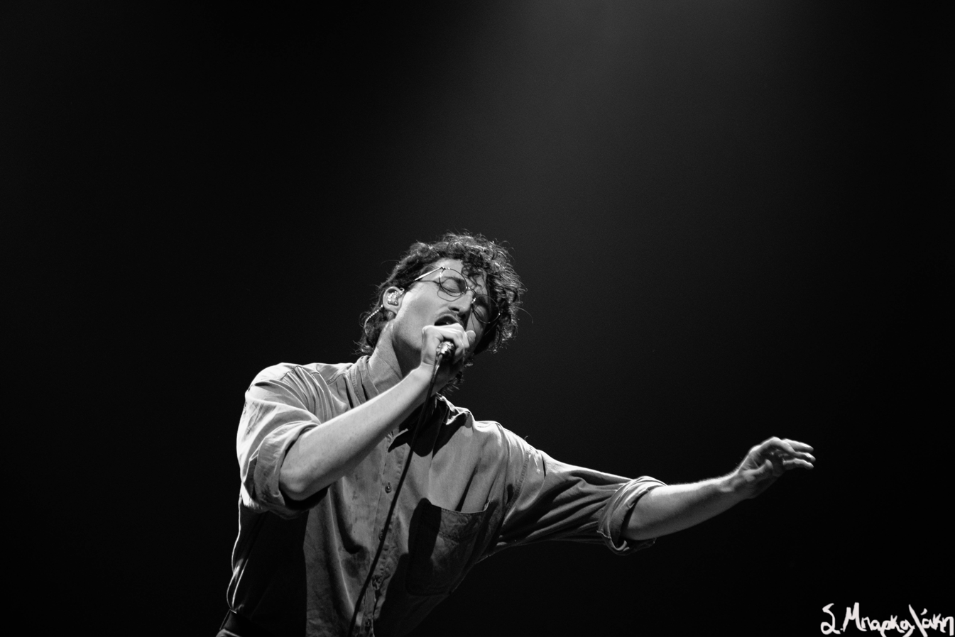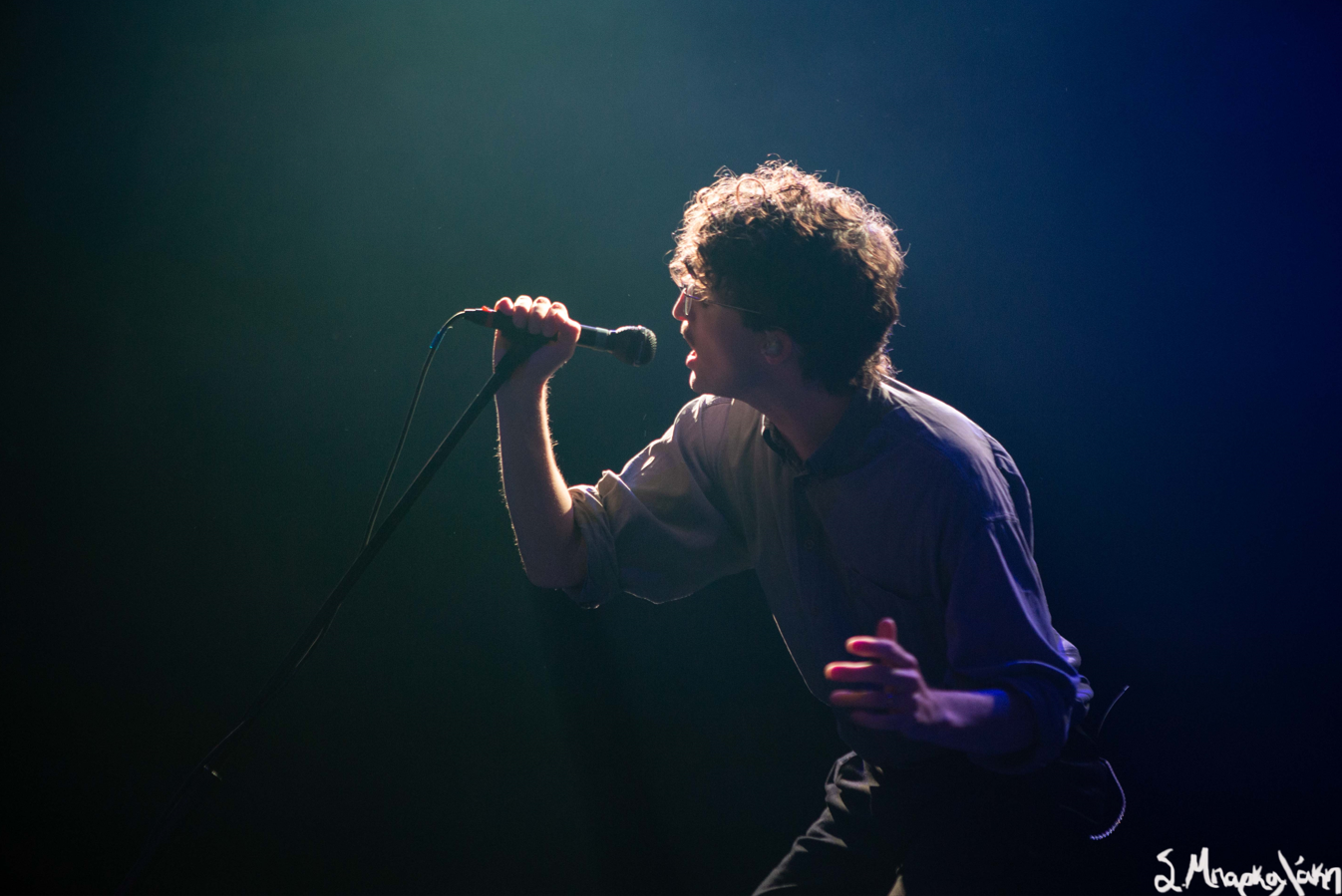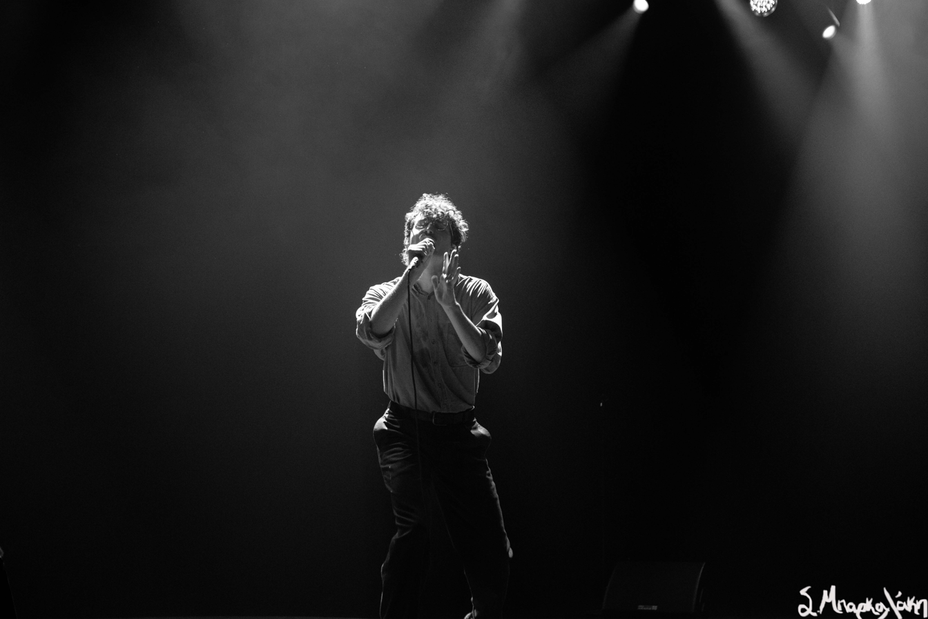 The music feels like we’ve woken up to the new sound of the 80s gathering together to dance our worries off. We’re led by Devaney slowly appearing through the dancing lights as he moves around and suddenly you can see his shape take form in a harmonious movement drawing your gaze in. I have never seen someone dance so elegantly with the microphone stand before. Every step, every reach, every bend was a beautiful expression of emotion.
