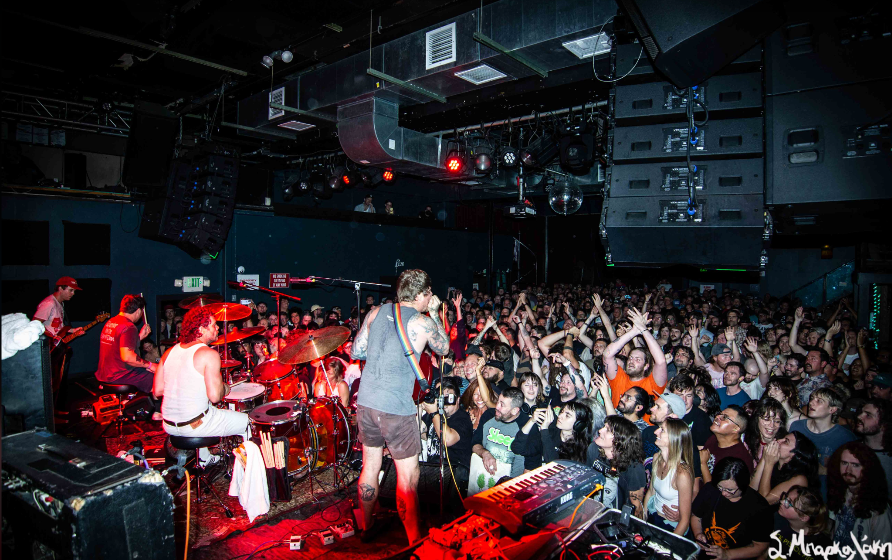 Below the stage, a current of attendees squirmed and flailed about like electrons heated on high. I lost myself the majority of the show to my impulses. Immediately feeling called front and center to trash and bob my head off its axis. Despite being able to sell out larger venues, they make habit of dividing their stop in Seattle into two nights. Assuming to keep the chaos uncapped and stage diving encouraged. A contradiction to traditional garage rock and its reputation for a lack of musical technicality, the OSEES continue to model anything but. Known to experiment with their music fearlessly, they bend and fuse unorthodox combinations in a manner that comes off unserious yet exemplary at its core. Dropping EPs annually like no one’s business, I can’t help but wonder where Dwyer finds the energy to keep creatively evolving at such a threatening pace.