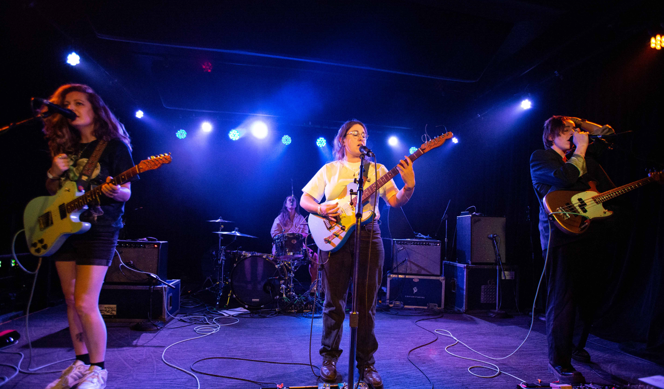 One of our favorite Irish bands was back in Seattle performing at Madame Lou‘s. Pillow Queens formed in 2016 and consists of co-lead vocalists Pamela Connolly and Sarah Corcoran (who both swap between playing rhythm guitar and bass), lead guitarist/backing vocalist Cathy McGuinness and drummer/backing vocalist Rachel Lyons. Since their debut, In Waiting was released in 2020 the band has been praised for their lyrical content and vulnerability in their songs. They are currently on tour supporting their third studio album, Name Your Sorrow.