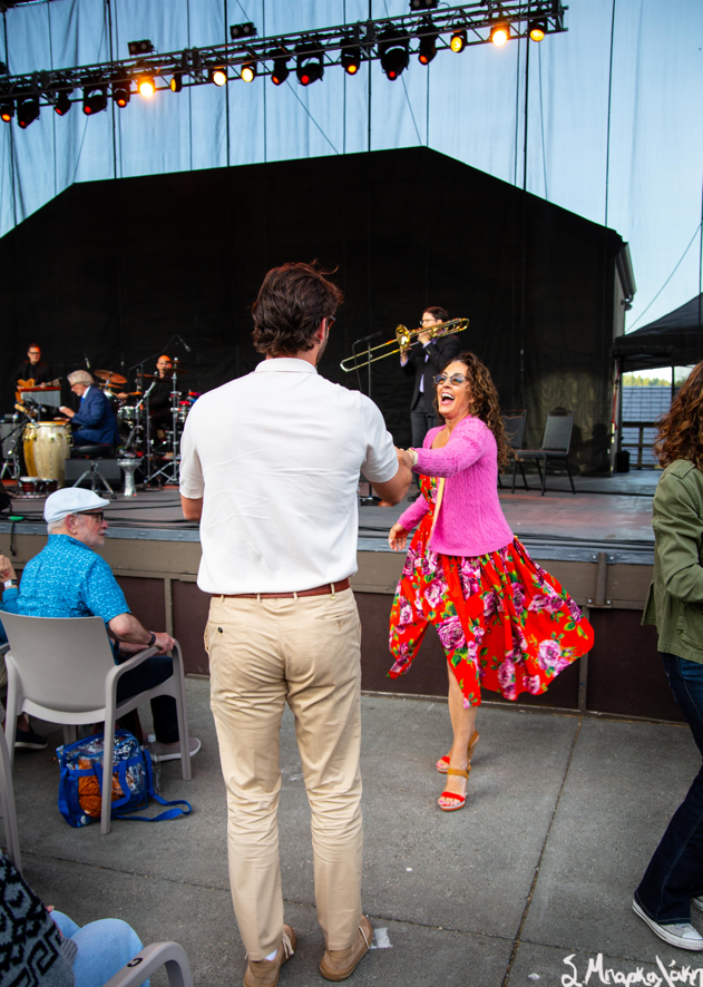 China Forbes was shining bright wearing a breathtaking coral dress perfect for the warm summer night. Along with performing many songs flawlessly her personality gave warmth and joy throughout the evening. Portland’s “little orchestra,” shared a little fun with the audience as they had a dance party picking a lucky winner who received a 30-year anniversary signed poster.