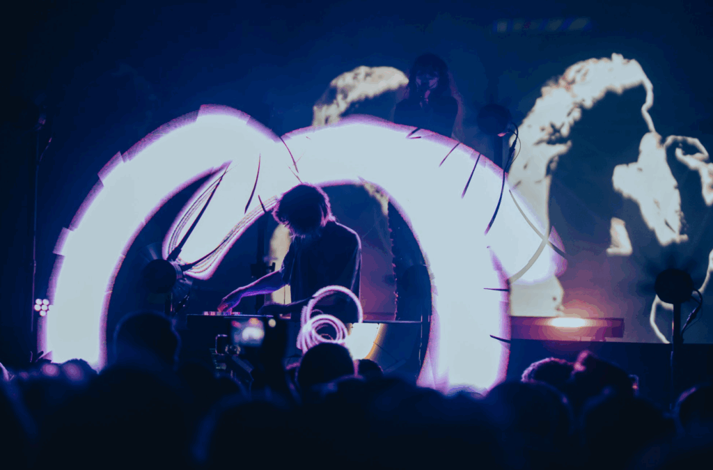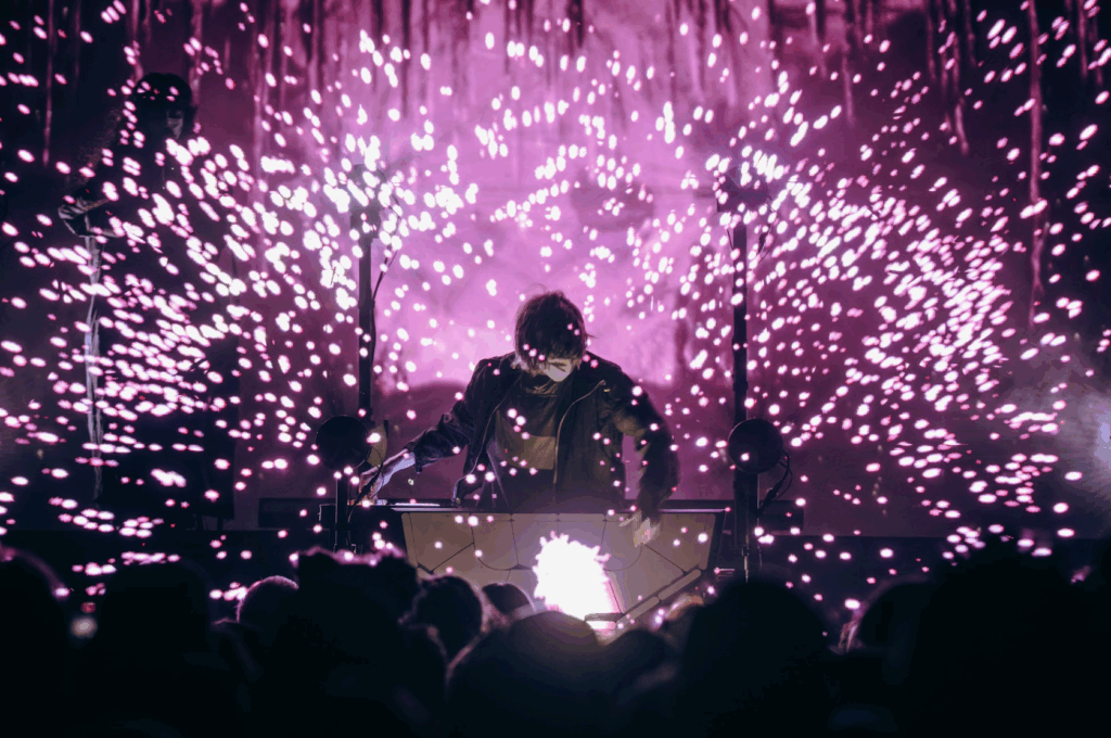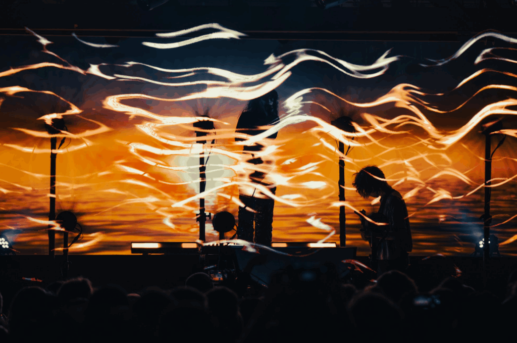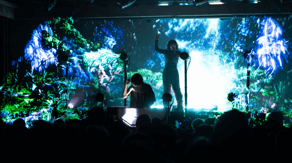 Roddick himself had a large drum pad tilted towards the audience that he would strike with his hands, and streams of lights would emanate from those struck pads. These fans would later visualize environments like crystal fields, a beautiful forest, and even talking faces that really felt like they reached out into the audiences. This setup really made it feel like the two were tucked into this virtual world on stage as the visuals created these still environments or expanded particles in every direction. While most of the show focused on their newest self-titled album, we were treated to a few classics like “Push Pull” from “Another Eternity” and “pink lightning” from WOMB.