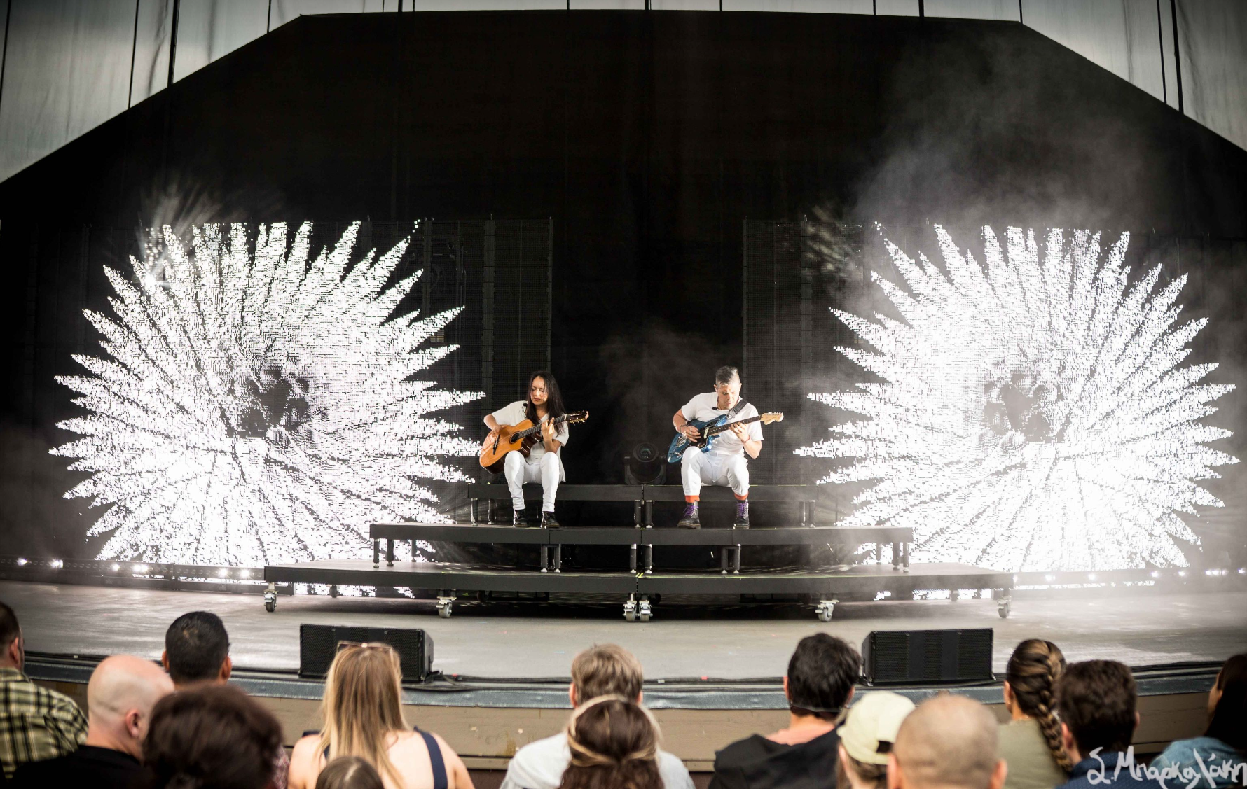 We headed to Chateau Ste Michelle in Woodinville to enjoy some music on this beautiful summer evening. The talented Rodrigo y Gabriela were back in town supporting their latest album, In Between Thoughts… A New World. The magical guitarists Rodrigo Sánchez and Gabriela Quintero who met each other as teenagers in Mexico City have charmed the world with their sound for decades. The duo who found their sound and success after moving to Dublin, Ireland in the late 90s continue to create music that captivates and inspires.