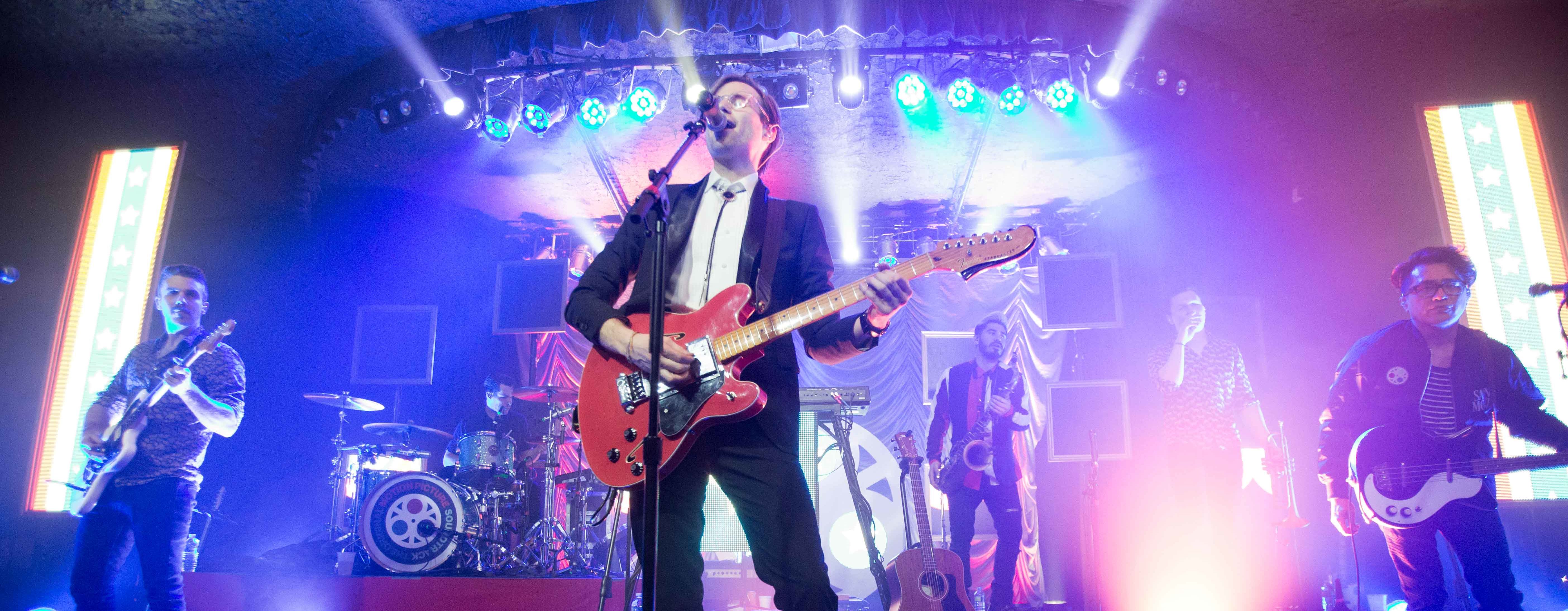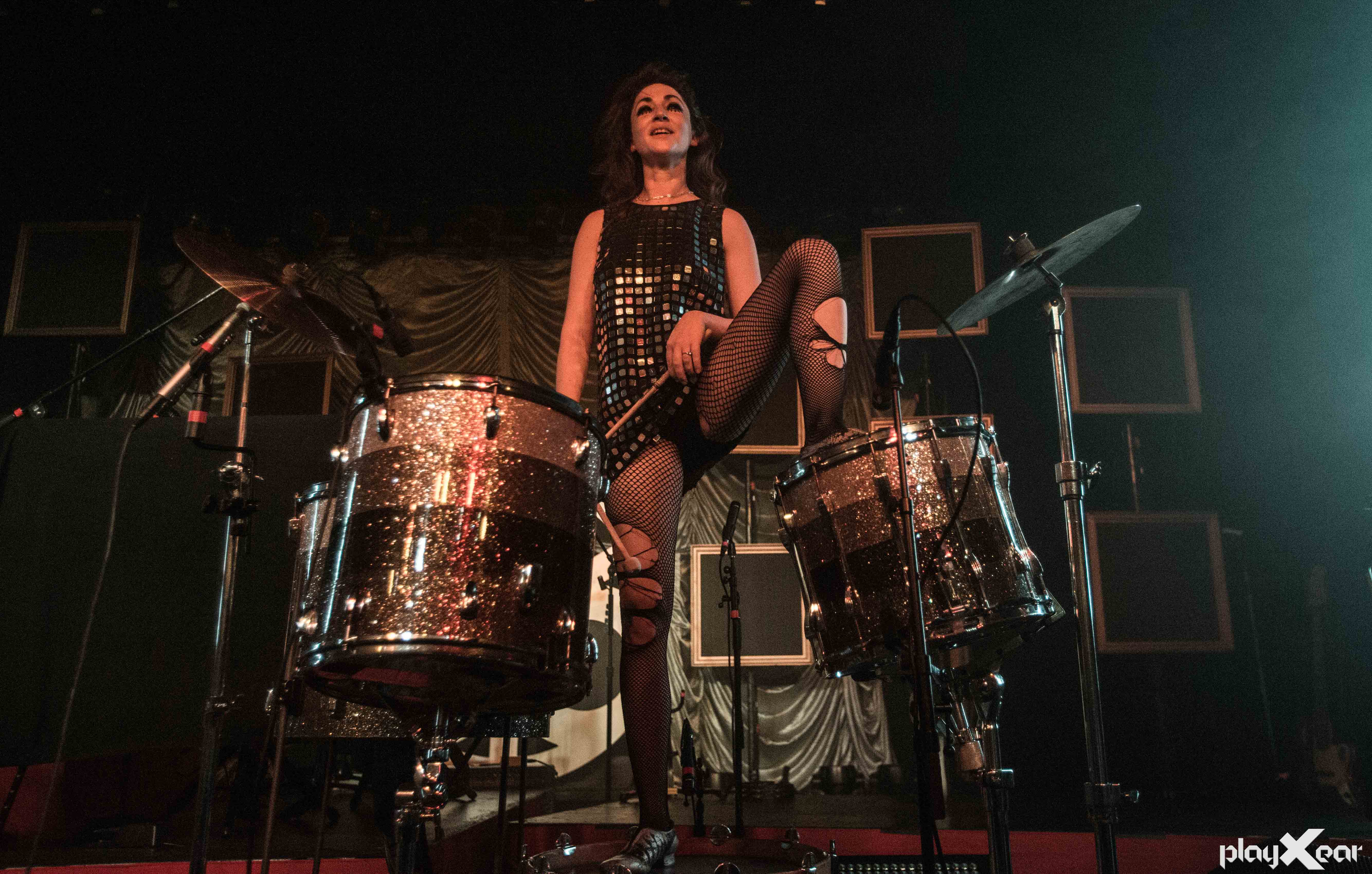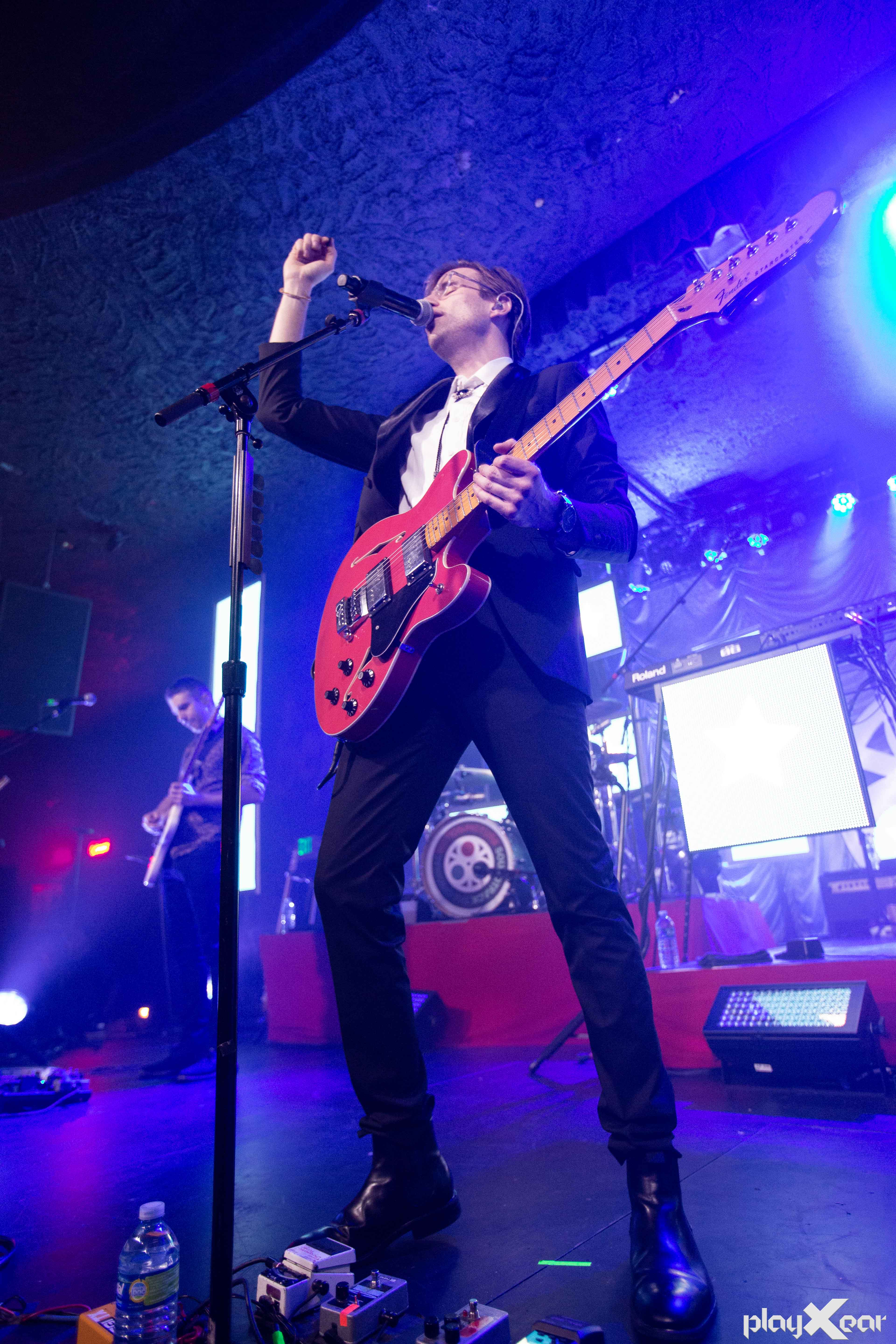 After the quick set change it was time for the main act to take the floor. The background had the old film take logo as it appears on the cover of their latest EP. Much of this night would be based around film and integrating that into their live performance. The band took the stage with astonishing energy ready to put on a great show starting with “Cold Cold Man,” and “For Elise.”