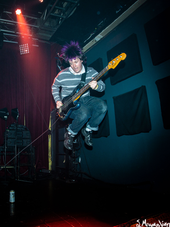 During tube screamy wah and thundering bass forward “Six-Pack,” drums wind up into calls for battle sending bassist Josh Finerty skidding across stage in roadrunner fashion, jumping into the air as symbols crash down. The possession sends him into front flips on stage as he plays.