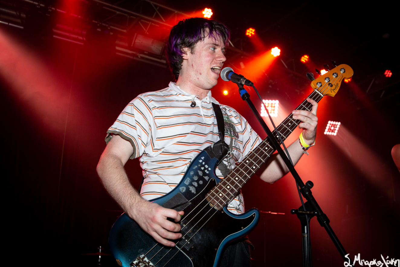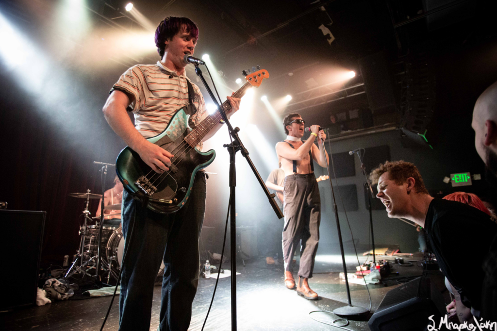 The connection between the five piece is unobjectionable. Guitarist Sean Coyle-Smith talks to us after the show, confirming the bond they have: how friendship with Charlie Steen stems back all the way to elementary school, how the name shame came about from drummer Charlie Forbes’ father, Lennon who then also become the cover of their Drunk Tank Pink and the fully collaborative nature of their creative process. He mentions that they write together, agreeing on what they all like before it makes it to the album, “The hardest part of song writing is finding stuff people are into.” He tells us Cutthroat differs from past albums by being “simpler, faster” but he remains partial to their record Drunk Tank Pink due to his fondness for his writing on “Snow Day.” He describes “Adderall” as an ode to his girlfriend and details his love for Seattle, afterwards hitting a hot dog stand for a Seattle dog.