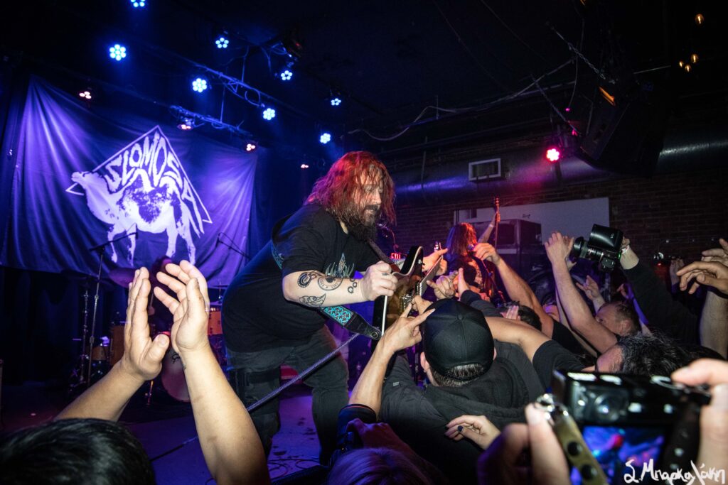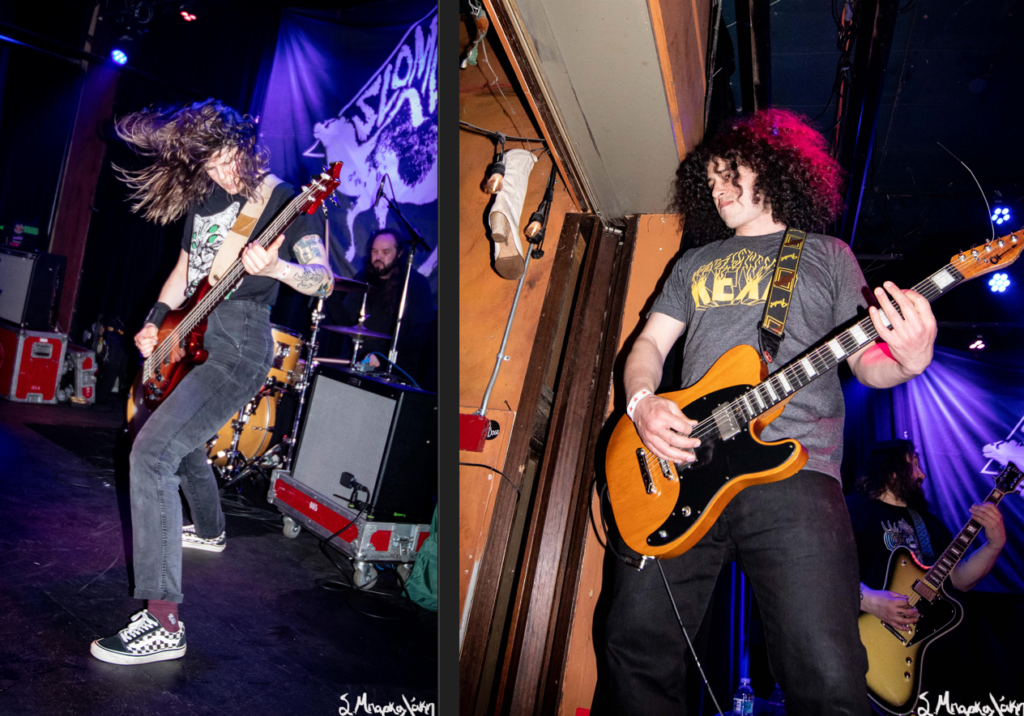 The four-piece took the stage, and immediately their bellowing sound filled the Tractor, and I wonder why they hadn’t upgraded venues. While there are many similarities, the elemental differences Slomosa creates with Norwegian Tundra imagery I find to be assuaging as a PNW native. As they began “Red Thundra,” it sounds like ascending a rolling storm. Moody bass chugging forward courtesy of Marie Moe, she sings the opening lines calmly as the song builds. Beautiful melodies transmute into spine-chilling doom-heavy riffs that drag eerily through the depths. Rhythm guitar cuts through and fuzzes out at the ends, giving a sense of fogginess.
