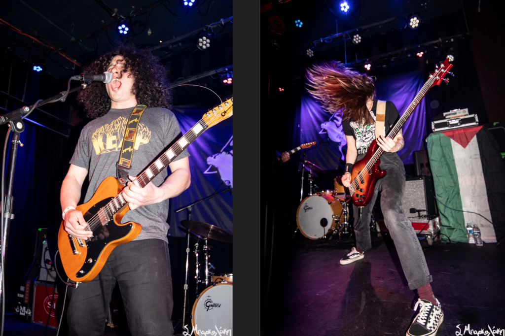 On stage, they rip through Chrome Hearts, Adrian Morris‘s fingers scattering