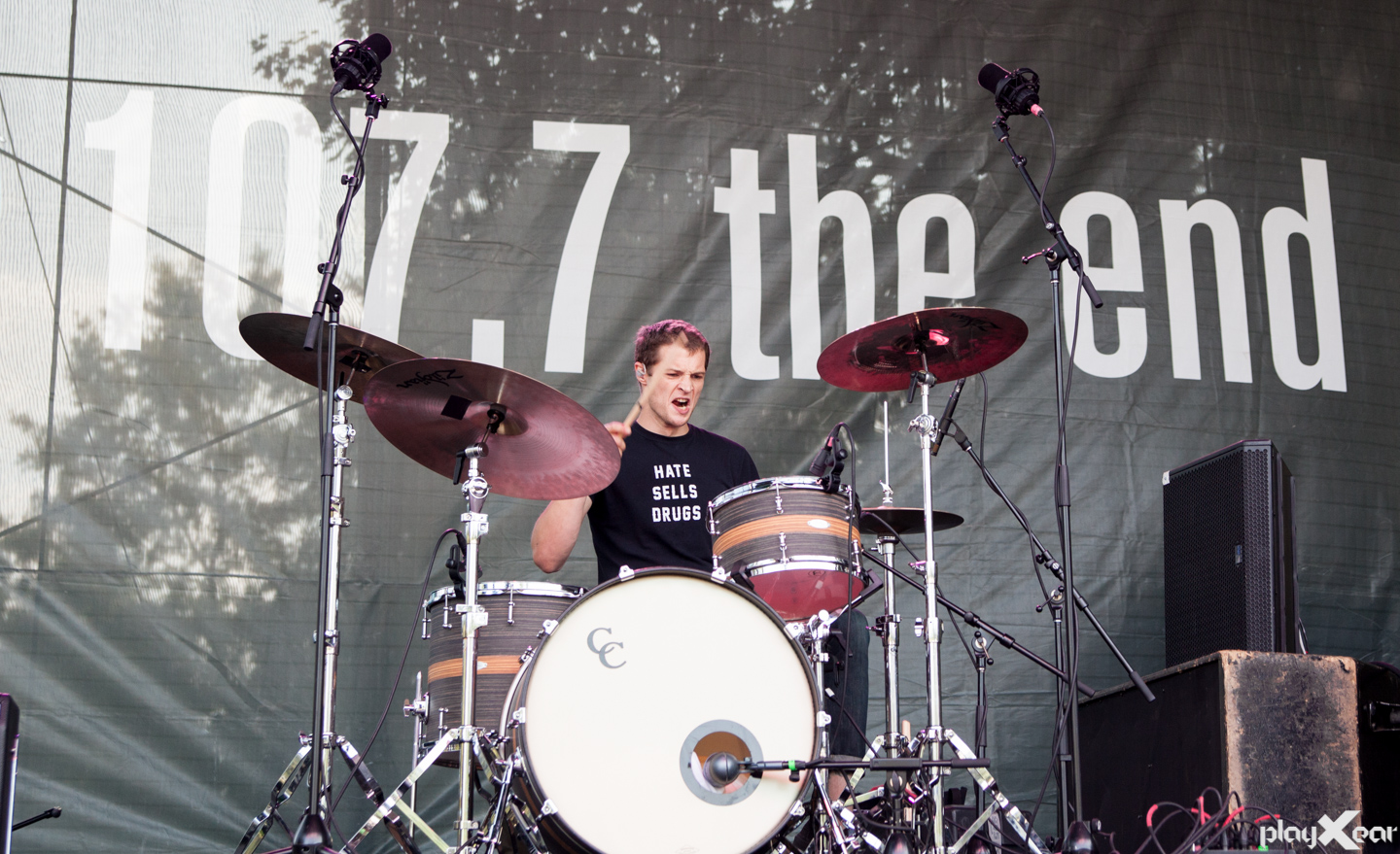 The Scandinavian band New Politics were up next and much to our surprise it was an incredible set. Front man David Boyd mixed his performance with killer dance moves and even showed us he can breakdance. Guitarist Søren Hansen intensively rocked out and even got major air when he threw his guitar up above him. Drummer Luis Vecchio pounded behind his kit which displayed the band’s logo. We didn’t know what to expect from these guys live but they were worth every second they were on stage. Their new record is due out in October make sure you check them out!