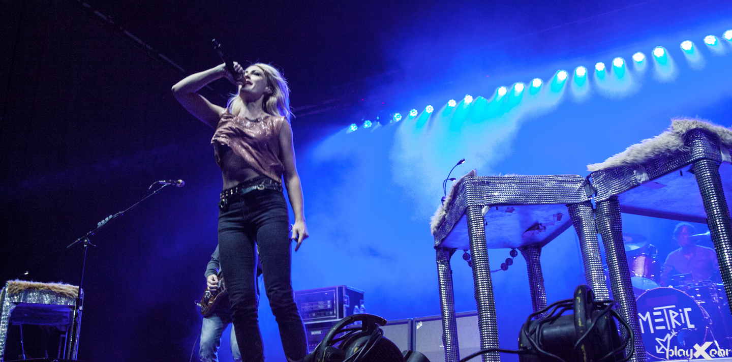 Night one ended with Metric who had its breakthrough with 2009’s record Fantasies with mega hit “Help I’m Alive.” The lights illuminating their stage were very impressive and Emily Haines’ energy was impeccable. Smoke, shadows, sparkly decorated keyboards, and even a silky green cover over her which acted as a dancing cape took over the stage. The band has a way of pulling people into their music and suddenly everyone is singing along. “Is it ever gonna be enough?” was repeatedly emphasized along with “Am I breathing under water?” in two of our favorite tunes. We’re especially happy to see The End support this band and keeping them in their event bills, they always do an exceptional job performing. We even got a taste that they have the weather gods on their side as right at ten the first drops of rain started, not disturbing a second of our wonderful night.