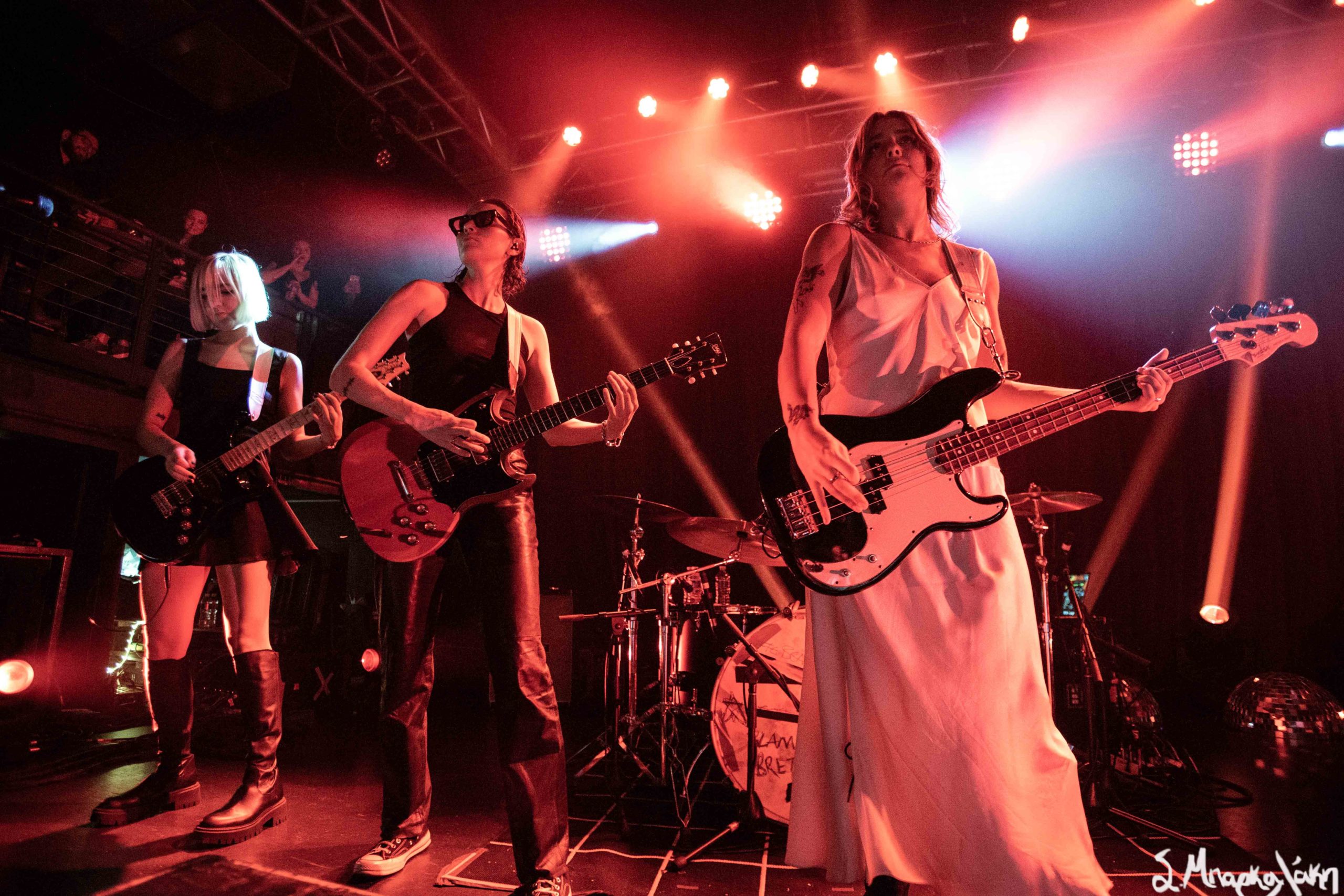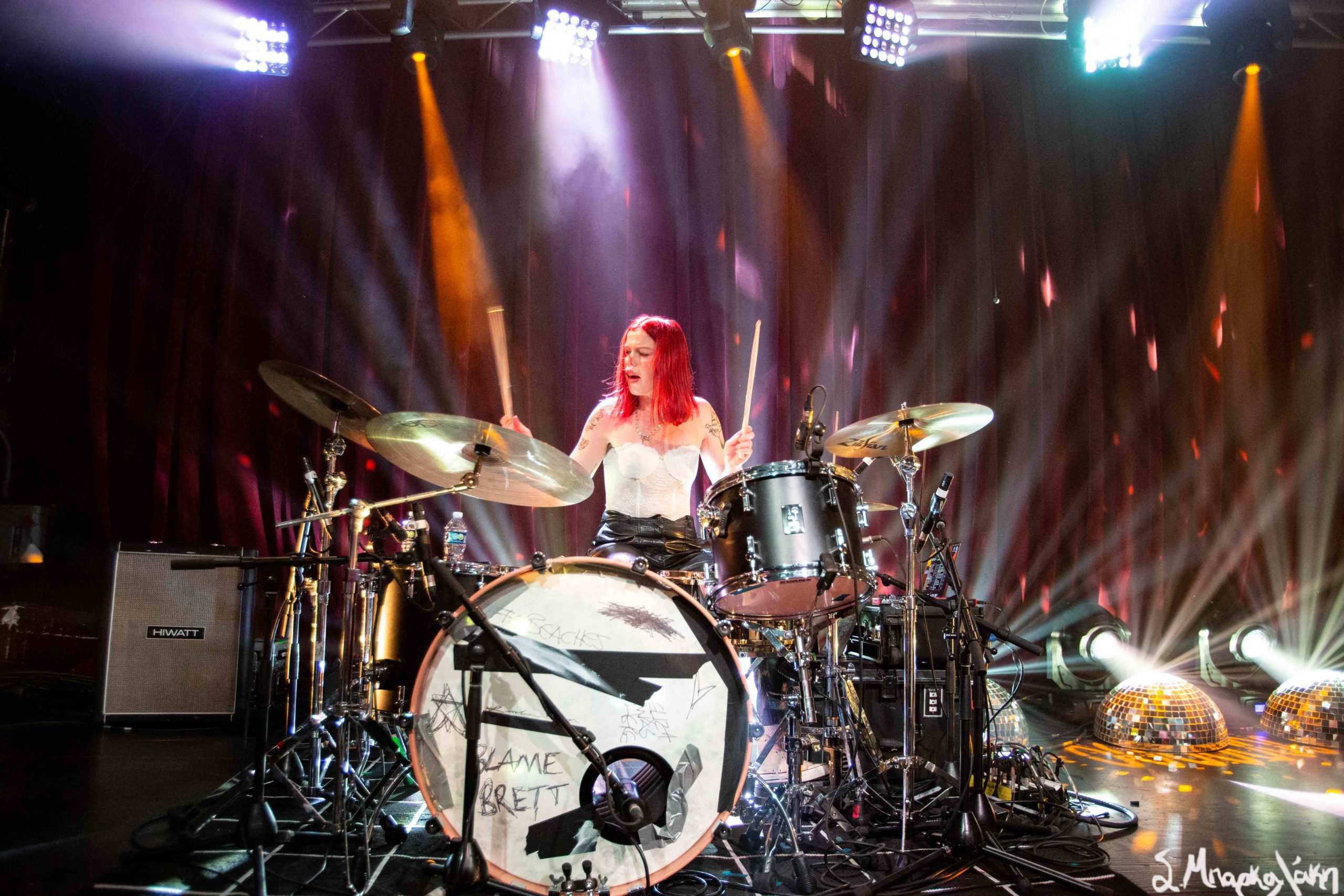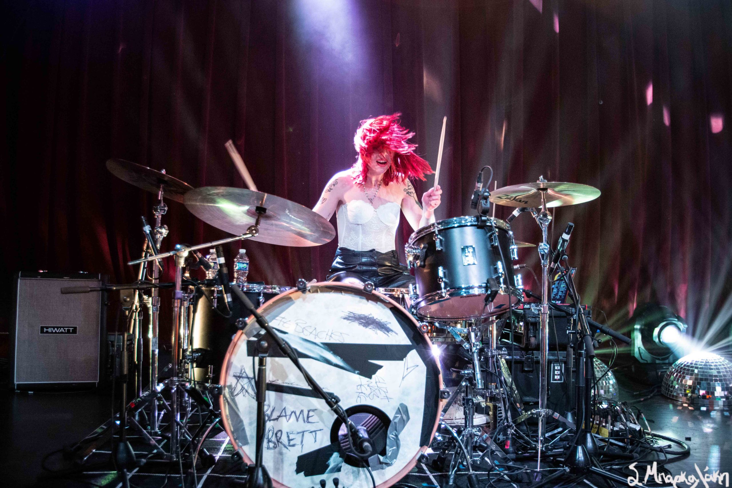 It was time for the Beaches to take the stage and in the distance next to the merch stand we could see a neon sign illuminated with the words Blame My Ex in support of their second album and tour. This record was co-produced by the talented Gus Van Go and Lowell and we can’t stop listening to it. The catchy single “Blame Brett,” was based on lead singer Jordan Miller‘s breakup and it’s such a clever way to promote and market an album. Tell me you’re going to listen to that song and not keep singing the words, ‘Blame my ex, blame my ex, blame my ex!”