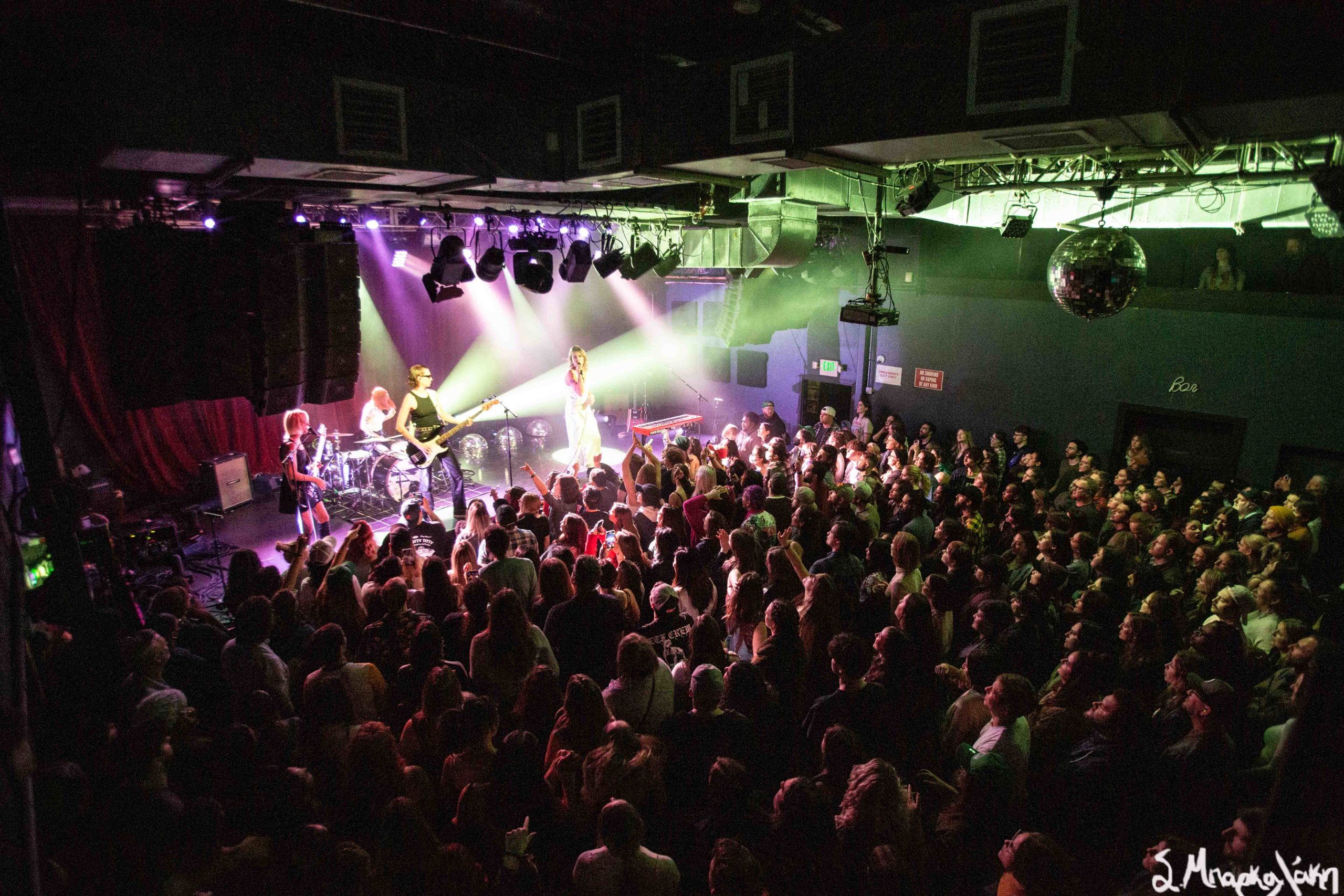 The energy was high as the band took the room and spun us up like the Tasmanian Devil. You could just tell they were having a great time doing what they love and fresh ready to tour. First songs were, “T-Shirt,” “Me & Me,” and “Grow Up Tomorrow,” as fans showed their adoration by singing along. The band was in great spirits with Earl constantly joking around and telling stories to the fans as they attentively listened. Jordan took the opportunity during a break to ask the crowd what beer people enjoy in the city, and everyone replied Rainier. She said cheers to all and continued with “Shower Beer.”