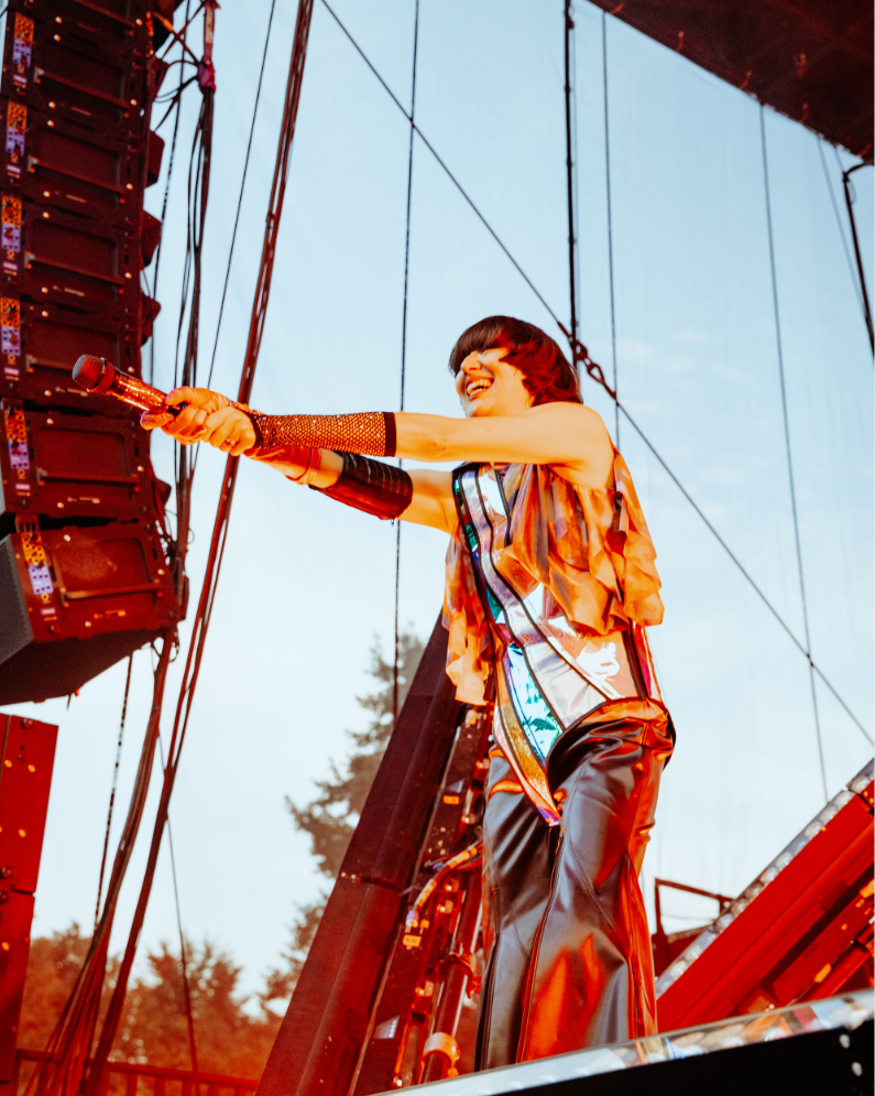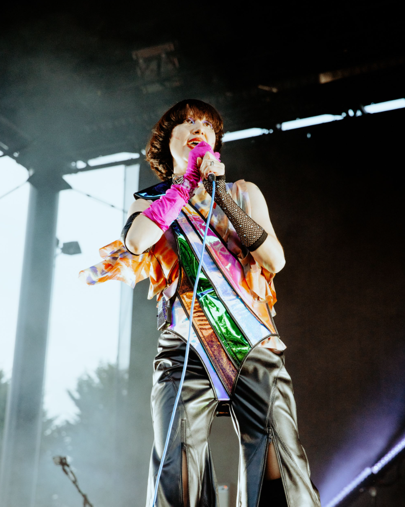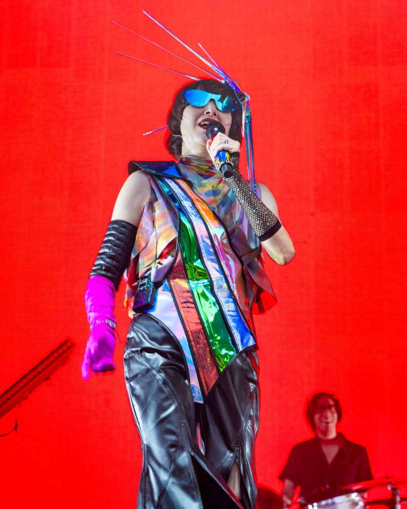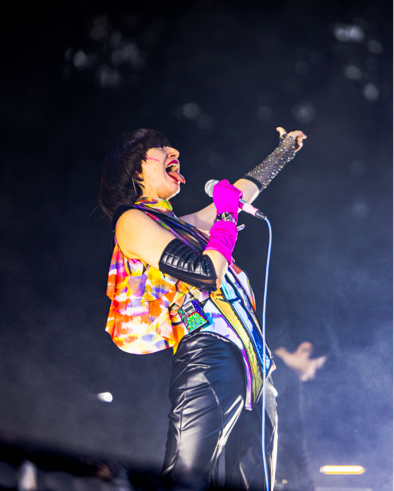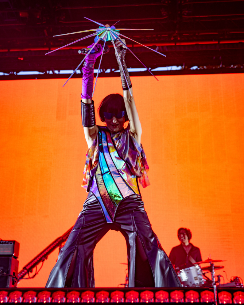 Then it was time for the Yeah Yeah Yeahs to take the stage. One of many wonderful moments of the show was when they played their first single off of Cool It Down, titled “Spitting off the Edge of the World.” In prior tour dates, the band toured with different openers but concluded the last five shows with Perfume Genius, a guest vocalist on the album’s single. This was a particularly special treat for fans knowing we would inevitably witness the song live with both artists. As the lights dimmed and the band took the stage, the song’s grand opening synth notes reverberated throughout the park and we were graced with a second appearance from Perfume Genius singing alongside Karen O, epic only begins to describe it—love a good collab.
