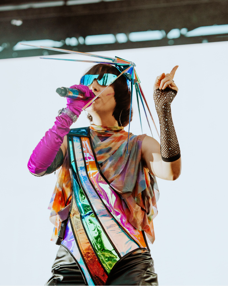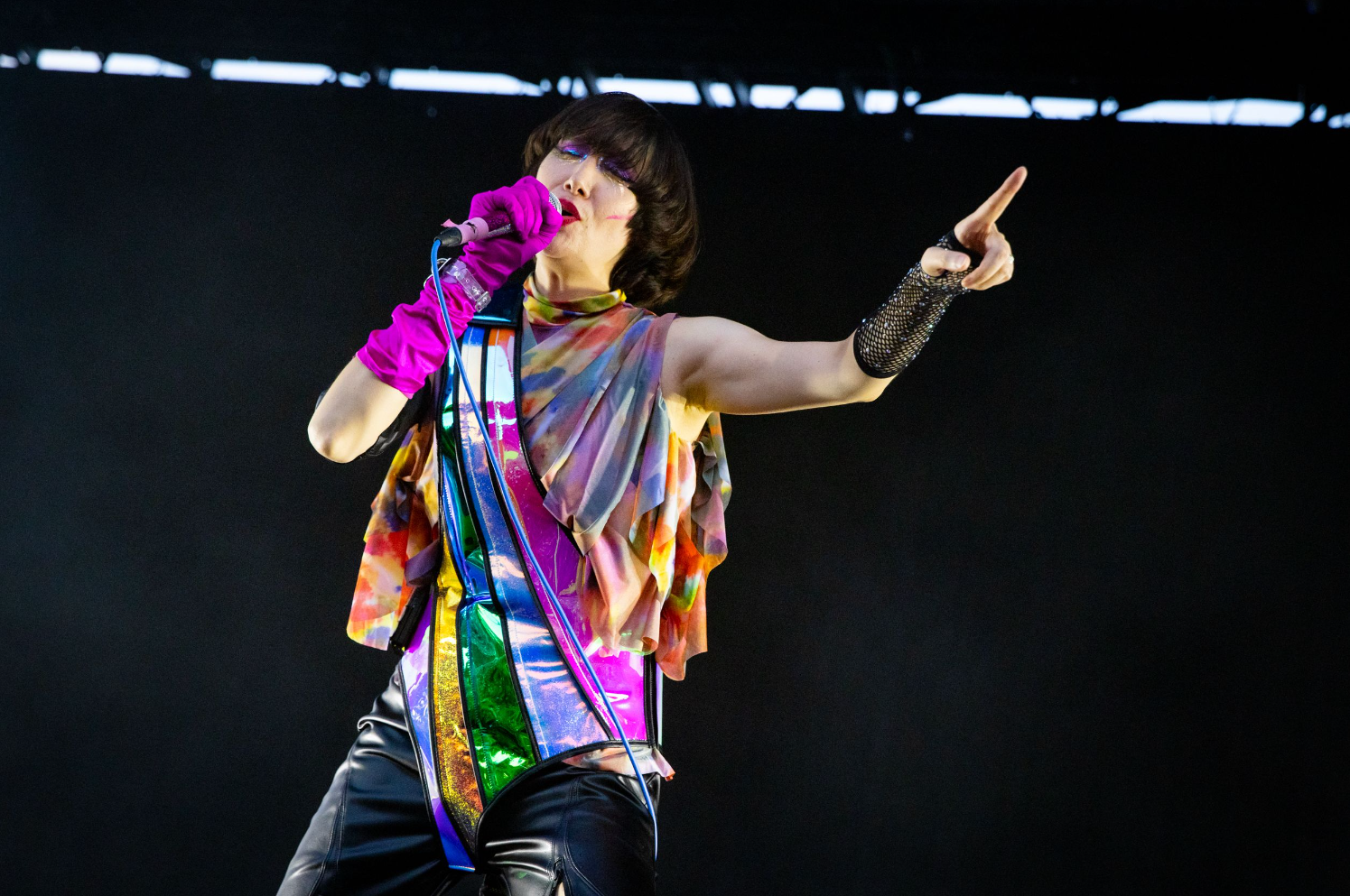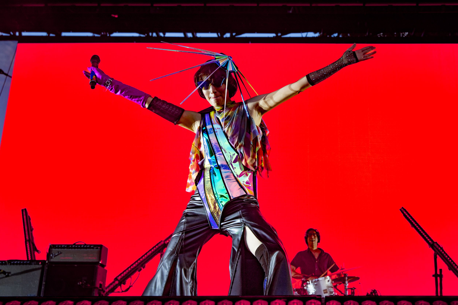 Then it was time for the Yeah Yeah Yeahs to take the stage. One of many wonderful moments of the show was when they played their first single off of Cool It Down, titled “Spitting off the Edge of the World.” In prior tour dates, the band toured with different openers but concluded the last five shows with Perfume Genius, a guest vocalist on the album’s single. This was a particularly special treat for fans knowing we would inevitably witness the song live with both artists. As the lights dimmed and the band took the stage, the song’s grand opening synth notes reverberated throughout the park and we were graced with a second appearance from Perfume Genius singing alongside Karen O, epic only begins to describe it—love a good collab.