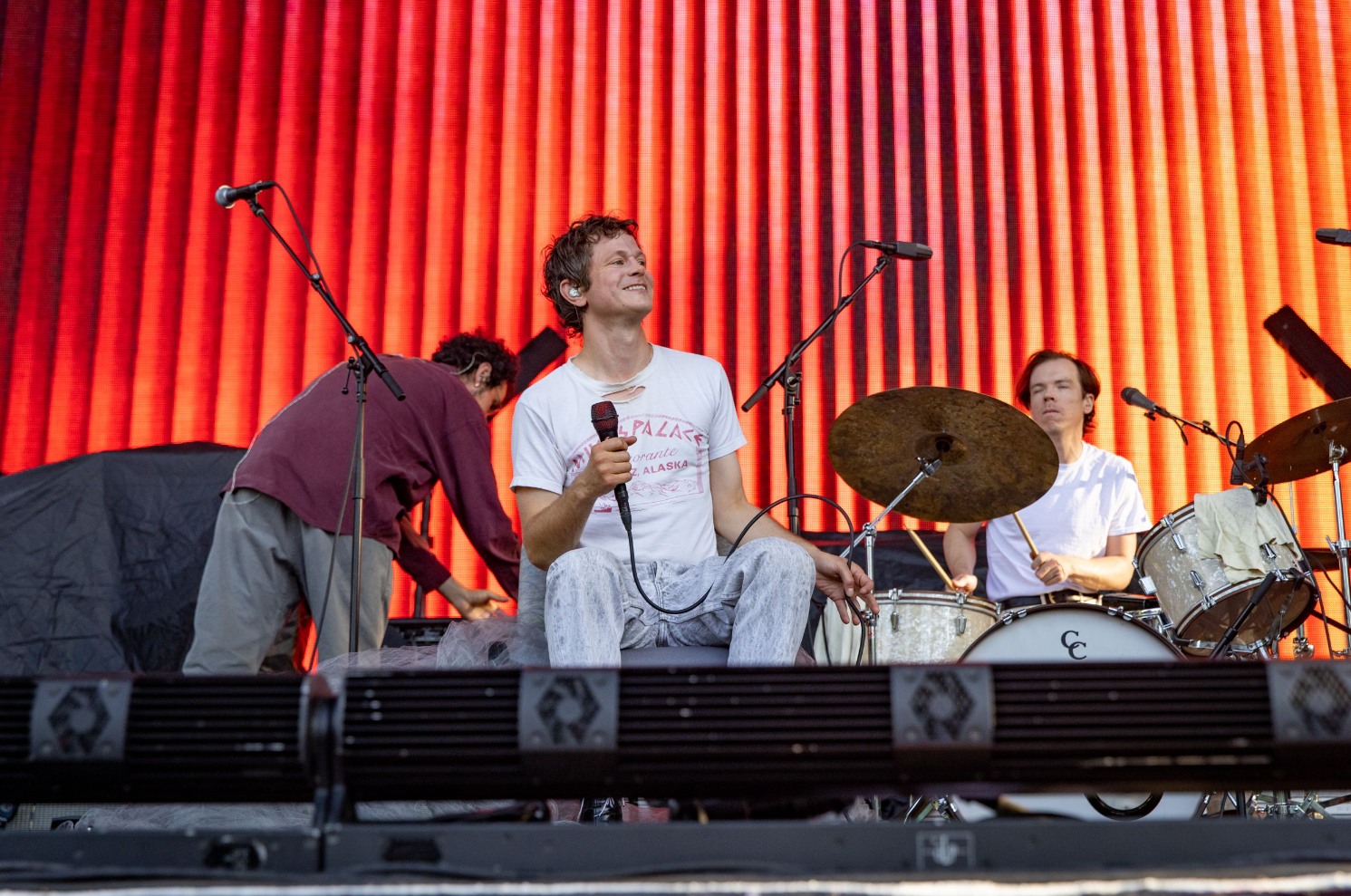 The show started off with Perfume Genius, who grew up in Seattle. He dazzled and charmed the audience; many were thrilled to see him on the bill. His latest record, Ugly Season, is a beautiful disaster of songs carefully crafted into a masterpiece. By the end of his set, he had wrapped himself with stage props, pulled up a chair to sit and sing, stubbornly pulled on his microphone cord until there was nothing left, and randomly knocked over his band’s microphone stands. It’s always a show and a marvelous live and we always recommend catching him perform.