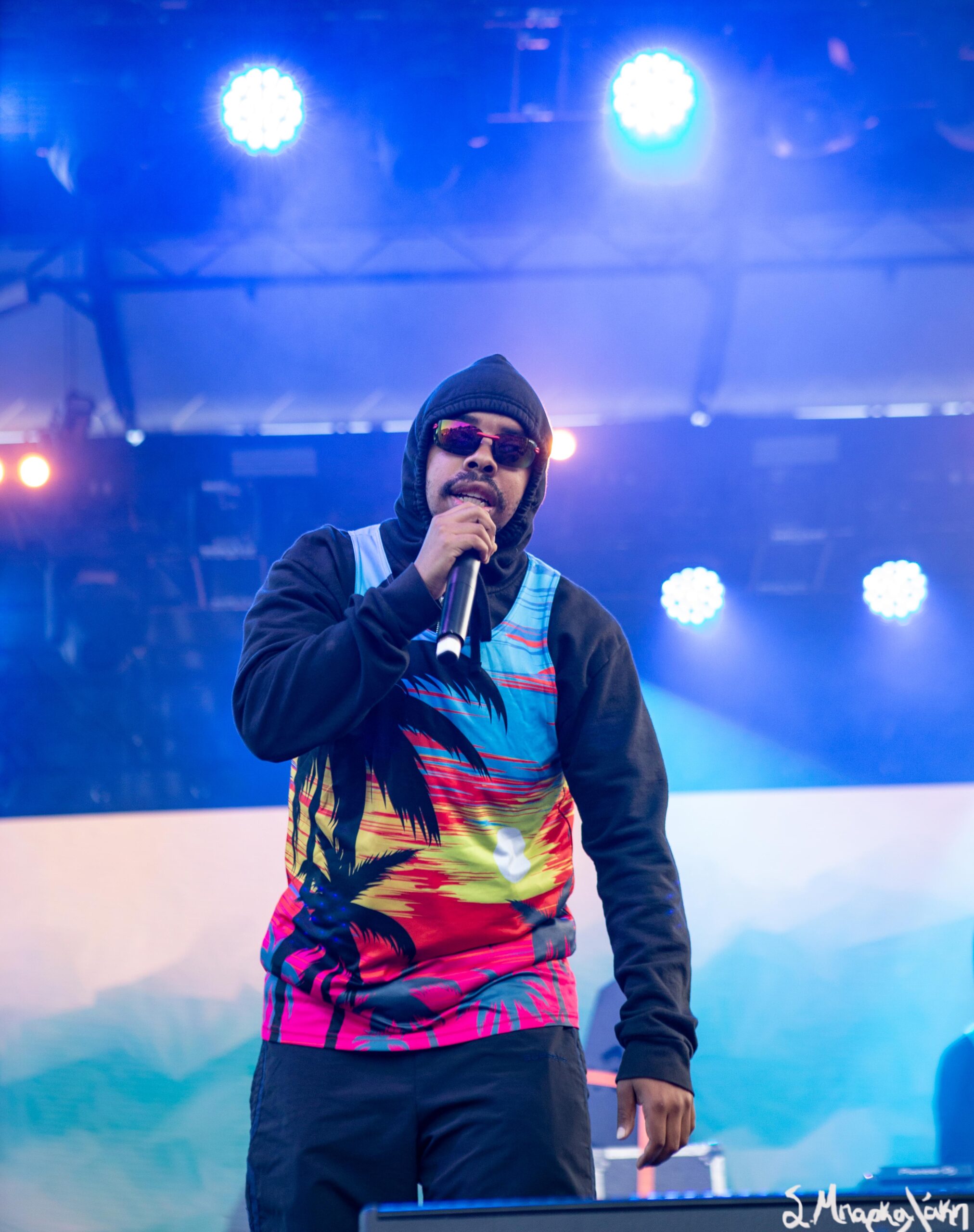 The second day of the festival brought more concertgoers to Remlinger Farms on Saturday spending a great day in the sun enjoying the event. This is great outing because along with the music, people have the choice to walk around and go to all the rides that are free and get that feeling of the farm enjoying all the space has to offer. We really did enjoy riding the train and chatting with the conductor and doing things we likely wouldn’t take the time to do on a given day. We found an arcade also and the main store which had so many things to buy and visited the Yonder stage that had events throughout the weekend. Music today included amazing new finds Ratboys, Militarie Gun, and Vacations, along with the already favorites Arlo Parks, Killer Mike, and Ethel Cain. Tonight’s headliners was Toro Y Moi bringing his chill vibe to the farm making people relax a bit more. His latest record Hole Erth is due out soon and we were thrilled to hear some new songs sprinkled with our older favorites.