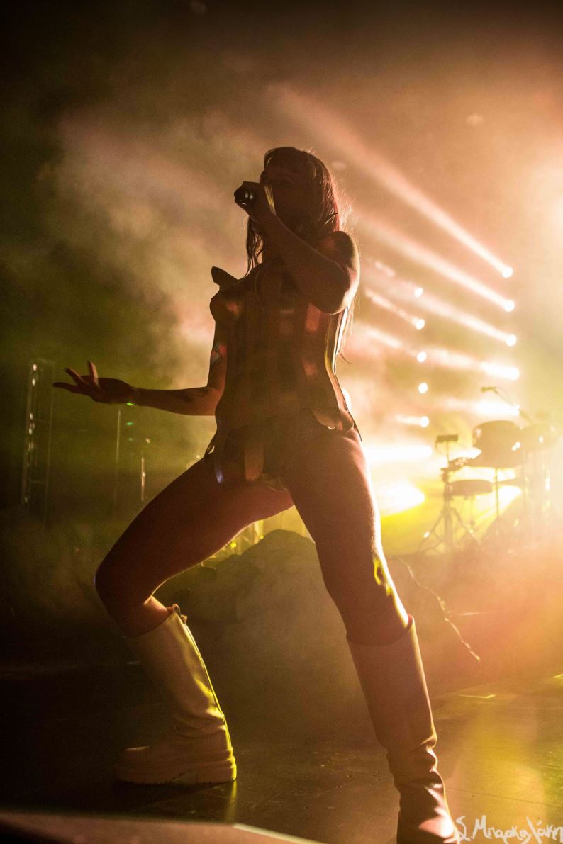 It was time for the performance to start and as Tove Lo appeared from the side of the stage in an outfit that resembled wonder woman. She comfortably stepped to the front of the room, ready to command her army. Her golden ribboned corset top had another detail easily missed from a distance; fake nipples attached. I feel like only Tove could pull this off so well and do it looking so great. She danced her way into “Pineapple Slice,” “Attention Whore,” and hit “Cool Girl,” as people screamed in adoration.