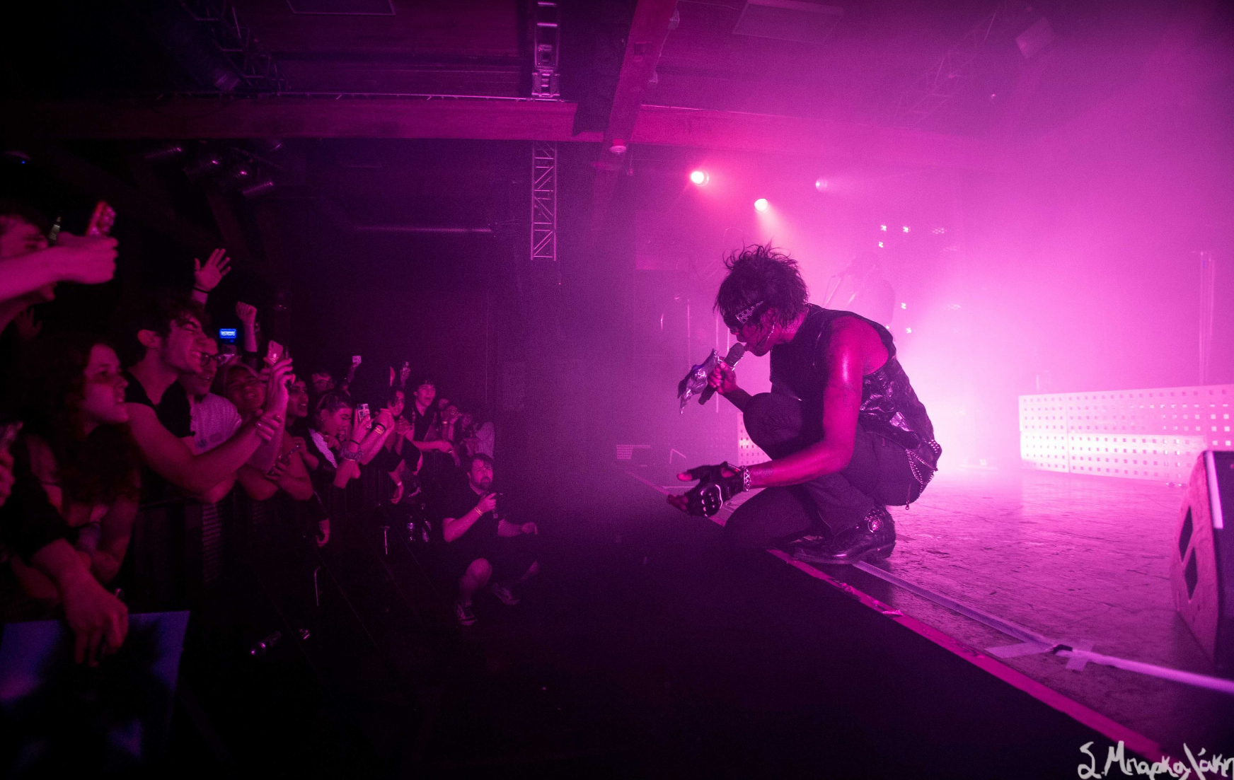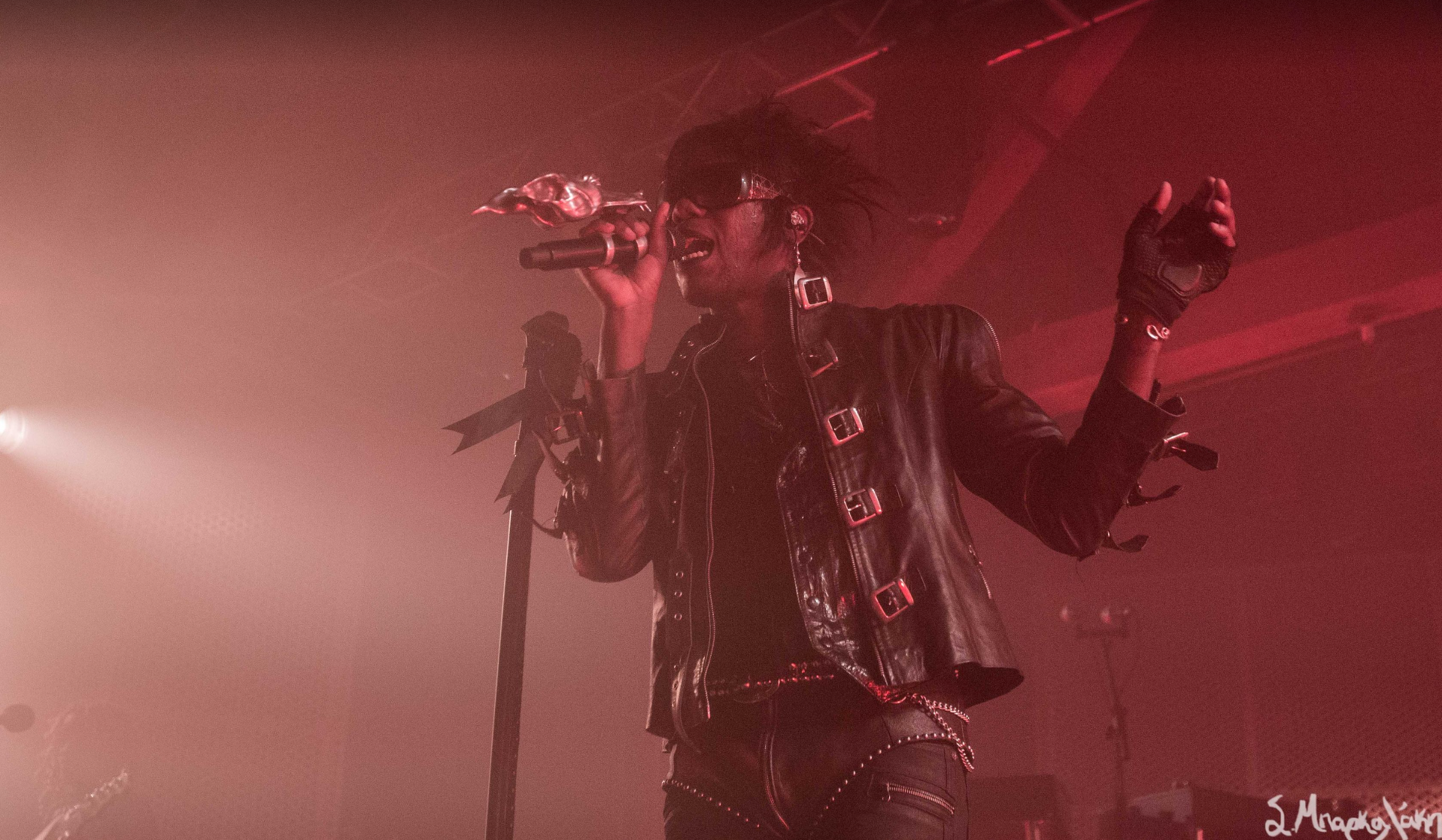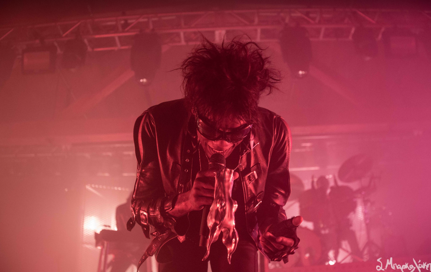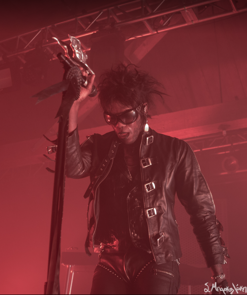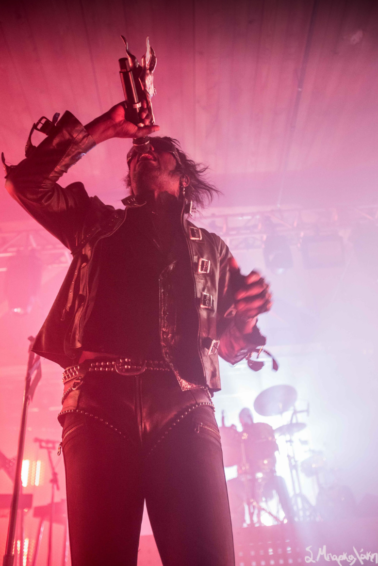 They kicked off with “God Is a Circle,” which they played twice as the sound was off the first. Then “Echolalia,” “In Spite of War,” and “Jackie.” The crowd went crazy right away singing along to every word and dancing their legs off. Tumor was wearing all black clothes with sunglasses, the back of their leather jacket reading, ‘Eat My F*ck.’ The very interesting I noticed was that their mic was decked out with a metal piece that looked like a dragon. New fad for artists?